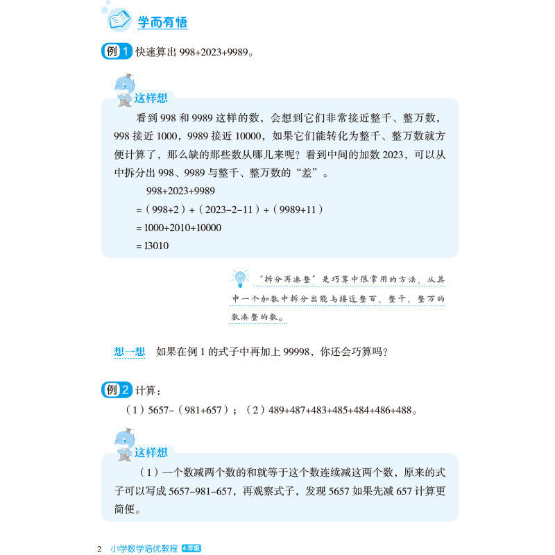 3.“这样想”栏目是重点和特点,详细阐述解题思路,训练学生逐步养成数学推理能力与逻辑思维能力;