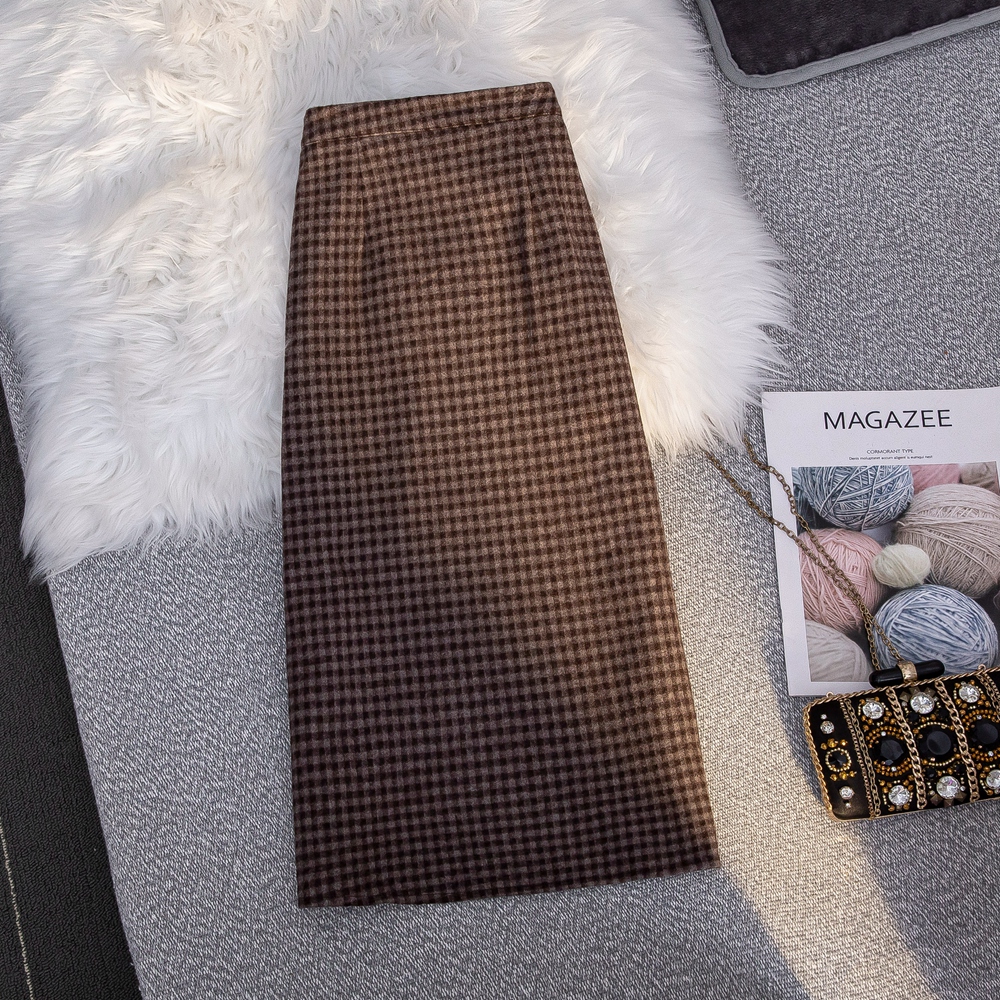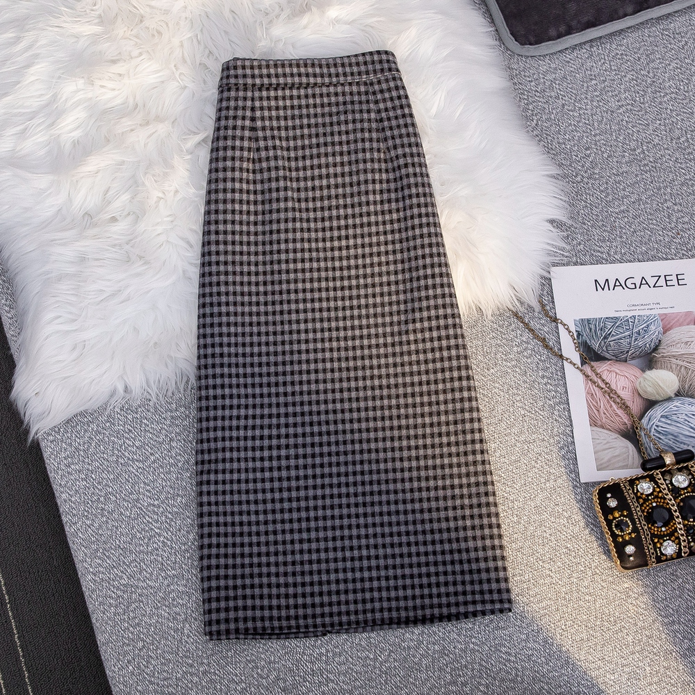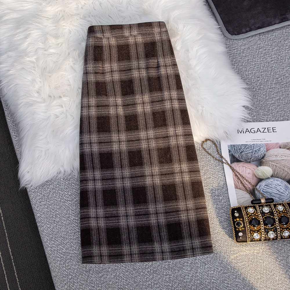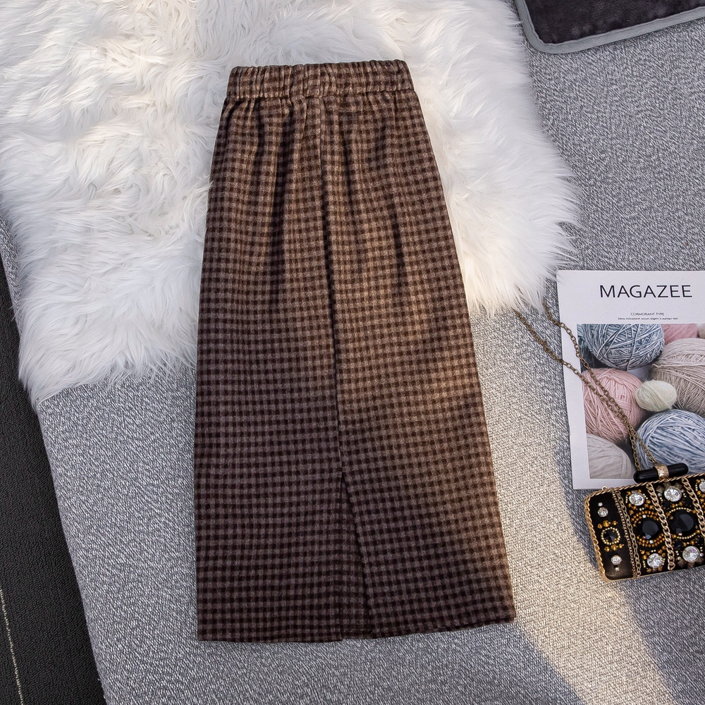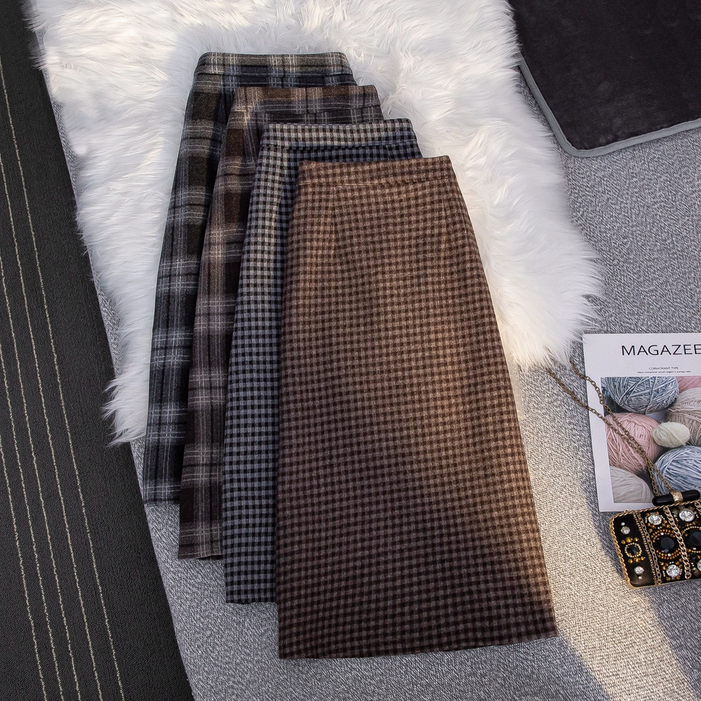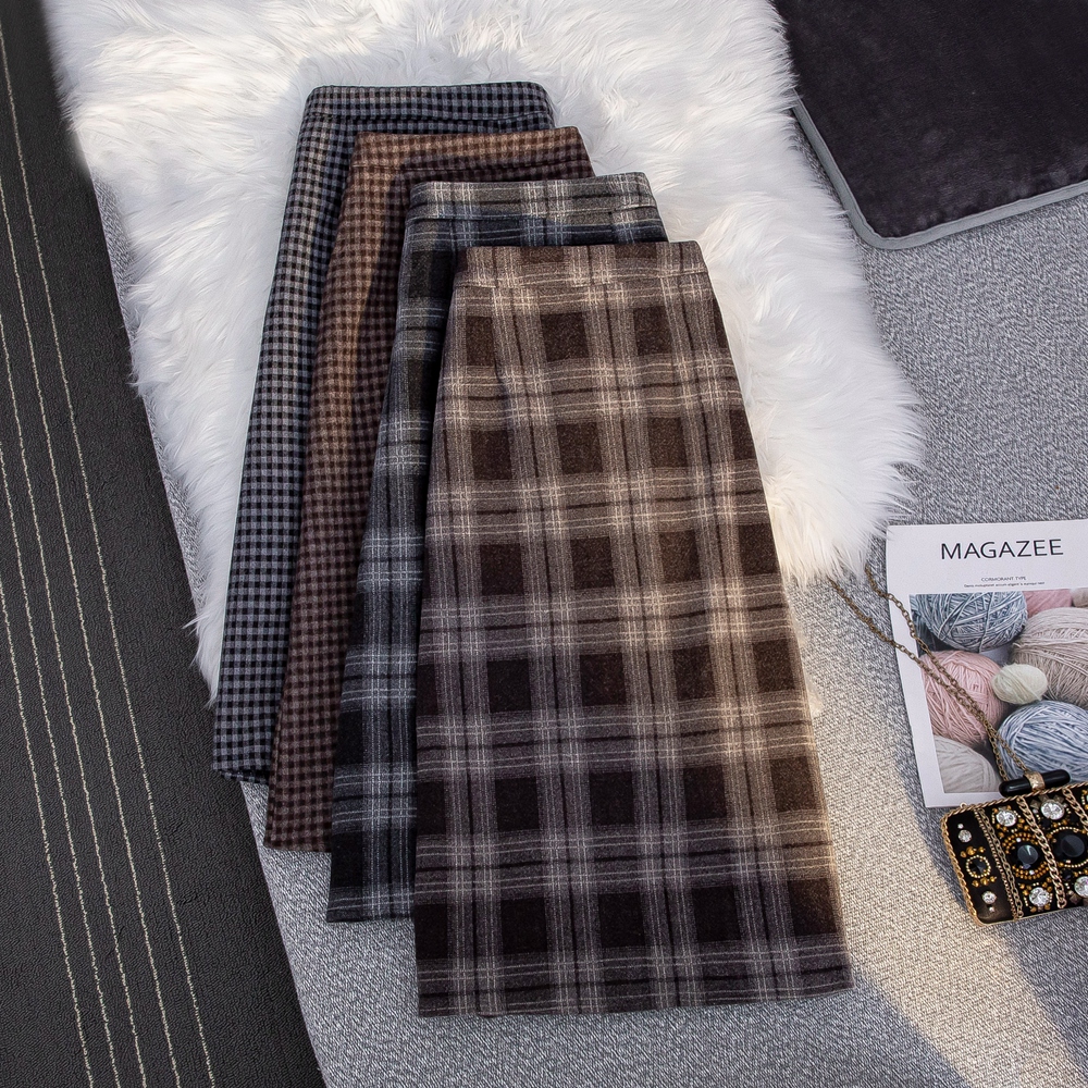 MZ11977 毛呢格子半身裙女中长款a字秋冬2022年新款加厚松紧高腰显瘦长裙