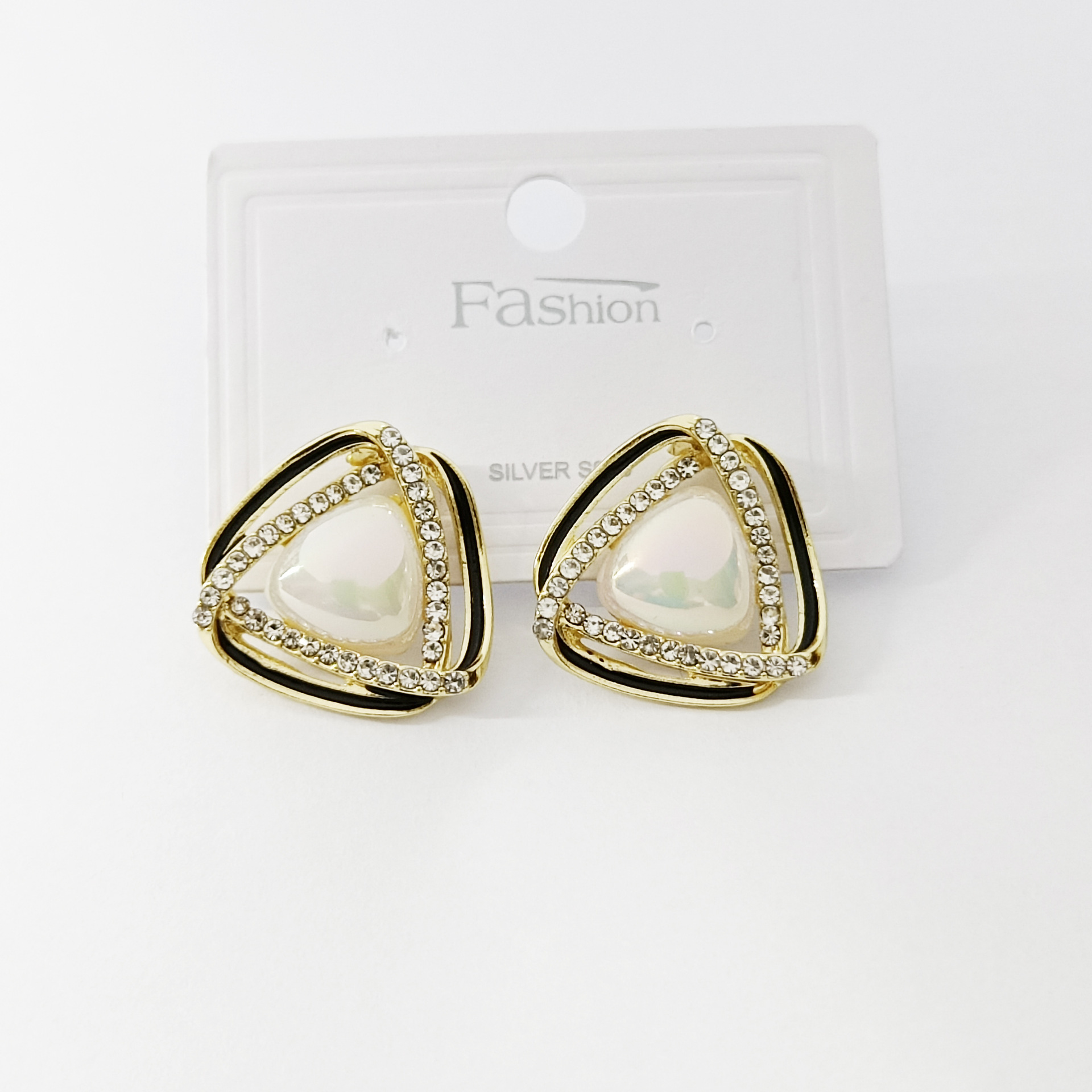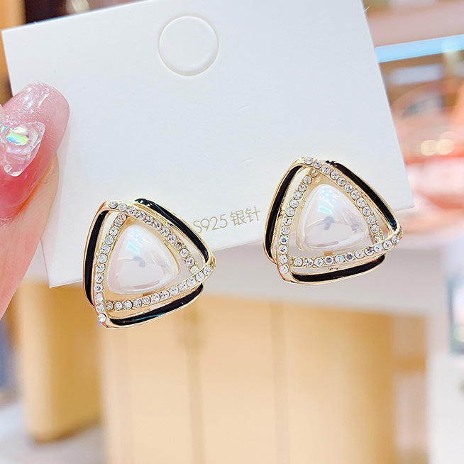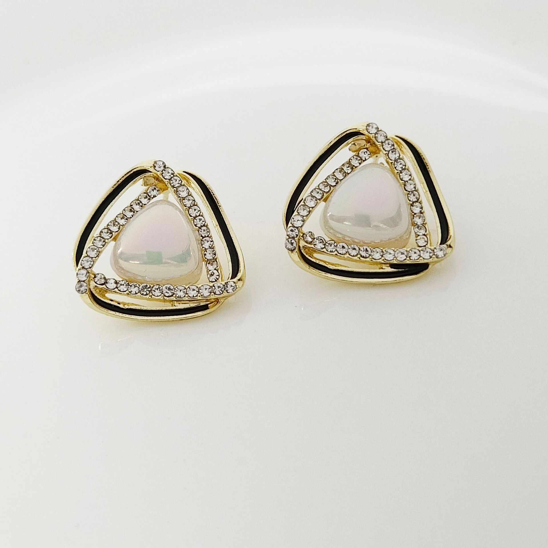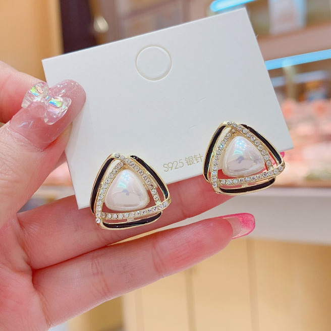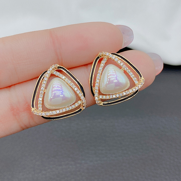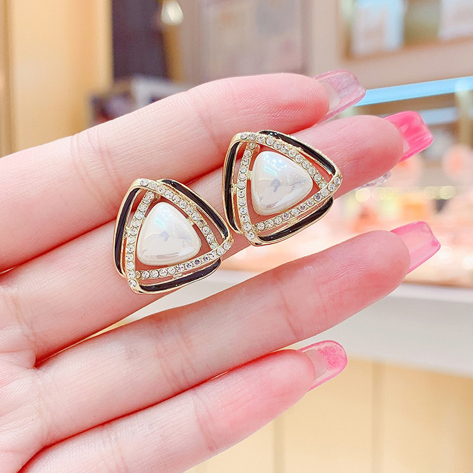 JU-A3176新款潮小香风耳饰几何耳环韩国气质炫彩珍珠滴油双三角形耳钉