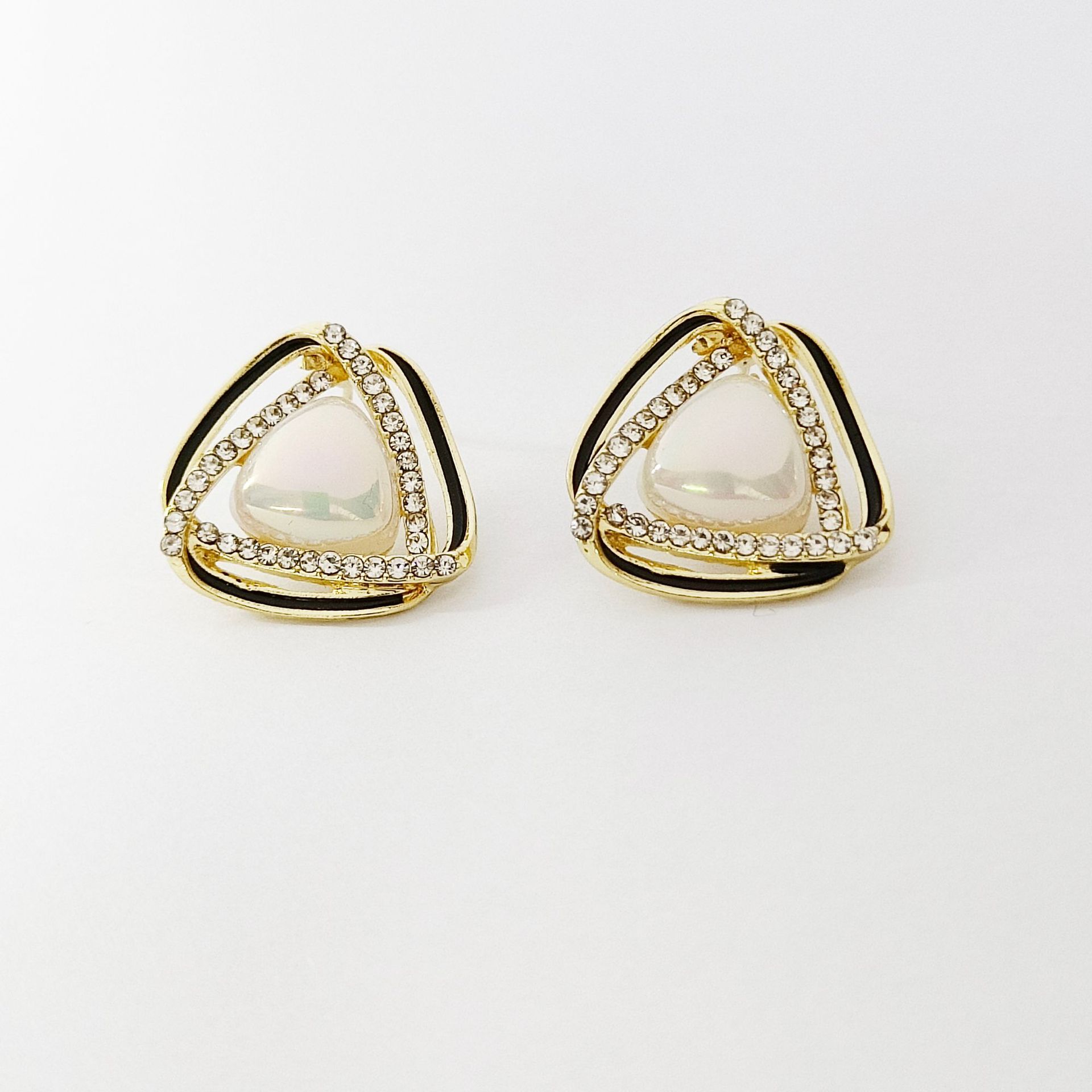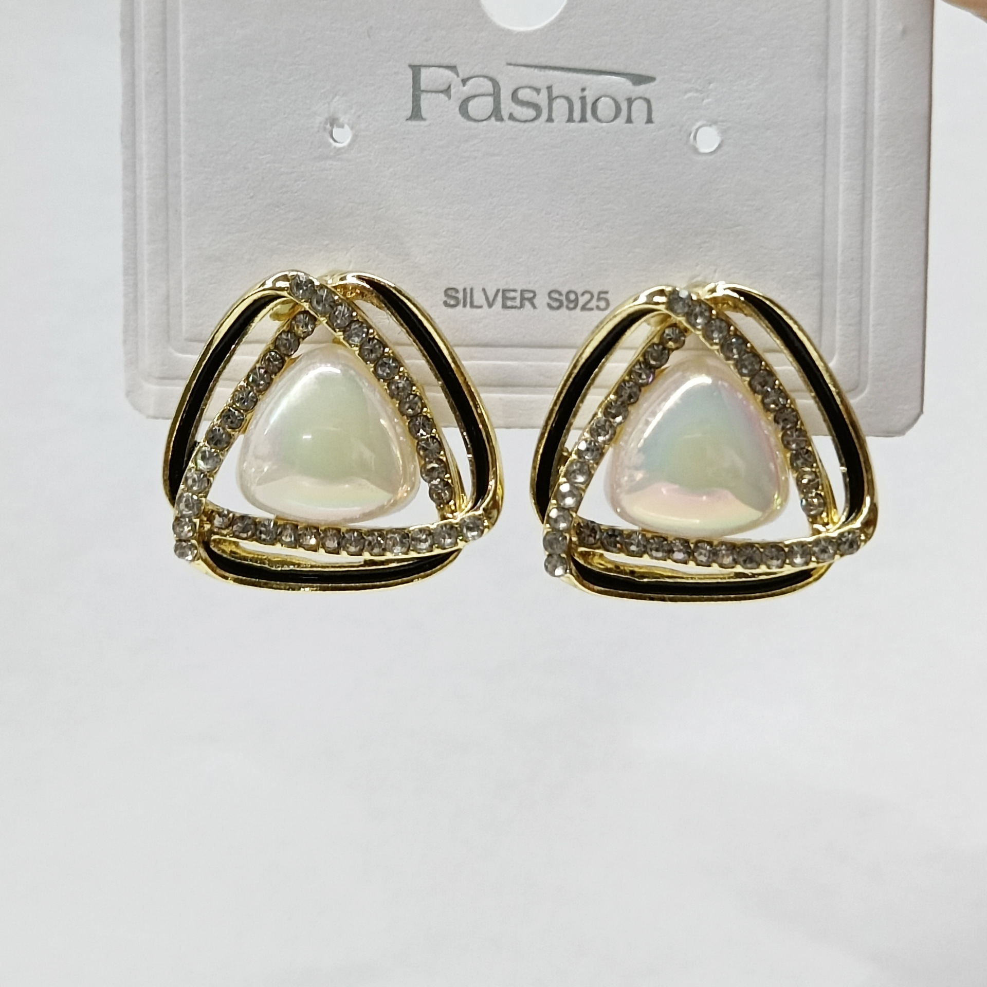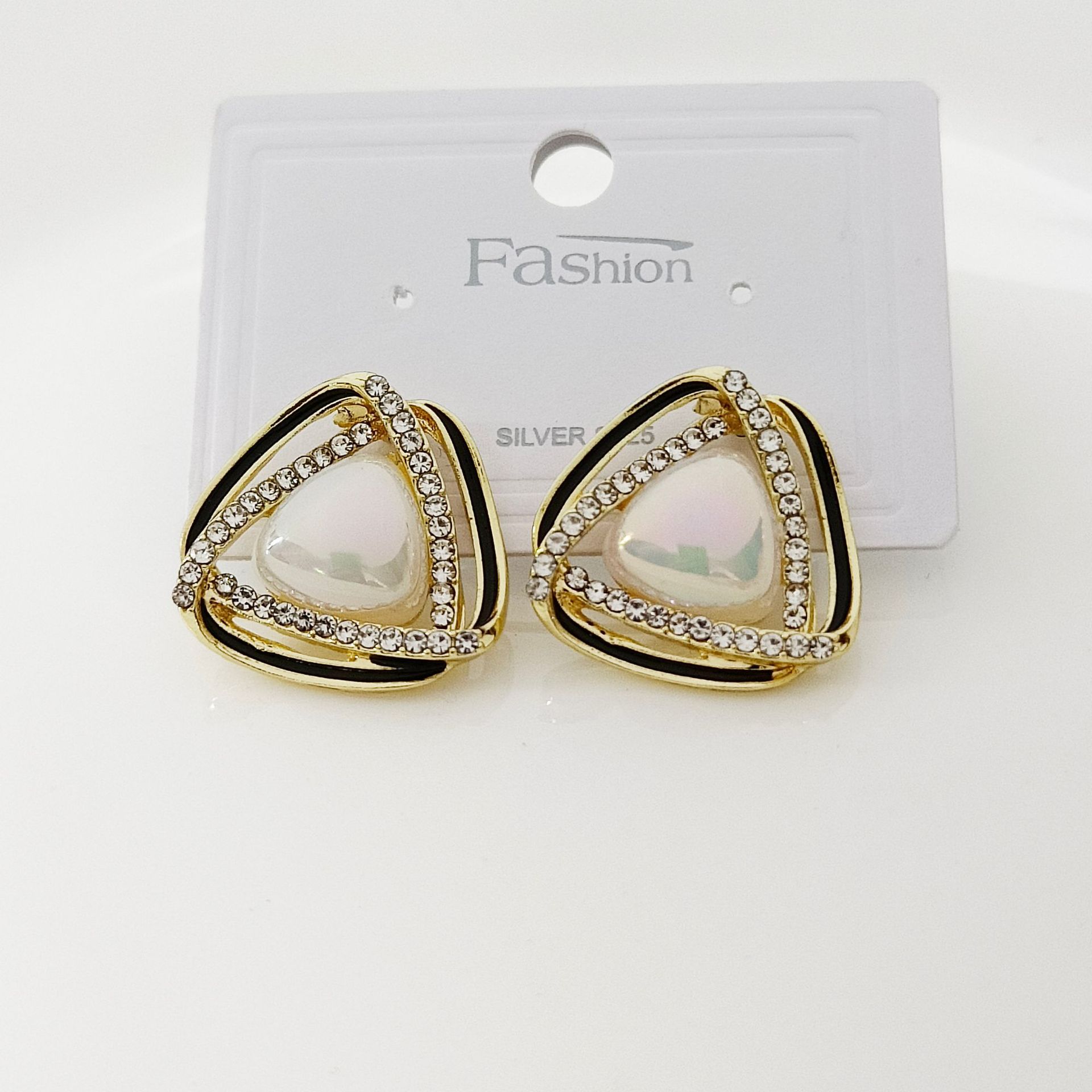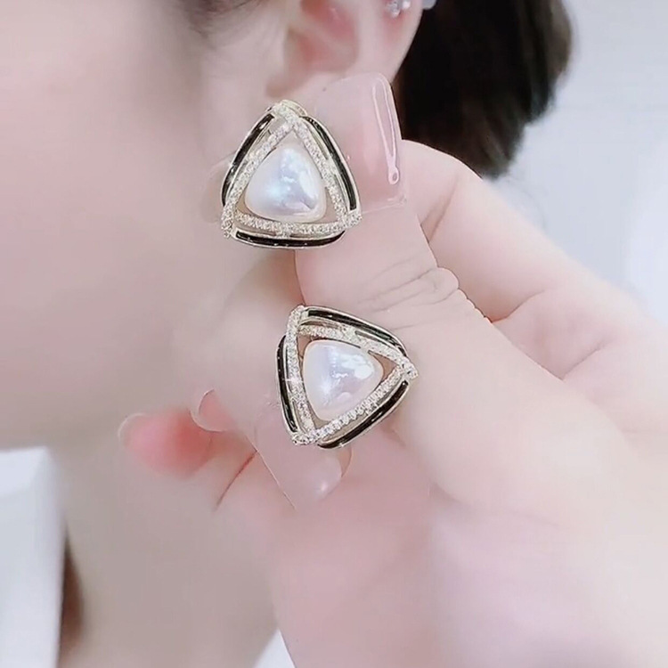 JU-A3176新款潮小香风耳饰几何耳环韩国气质炫彩珍珠滴油双三角形耳钉