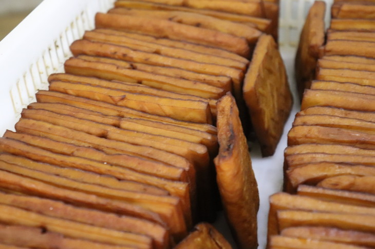 生产方式:有机大豆及纯净水打磨成豆浆,盐卤点浆、压制等制成豆干后,再经过调味而成。加工过程不使用消泡剂、防腐剂等。