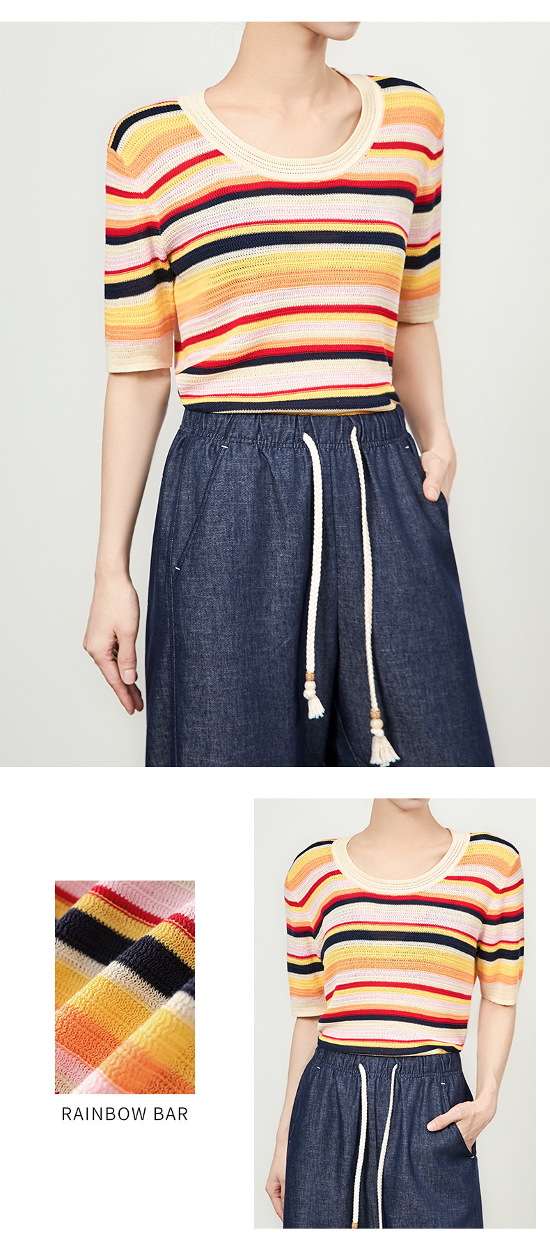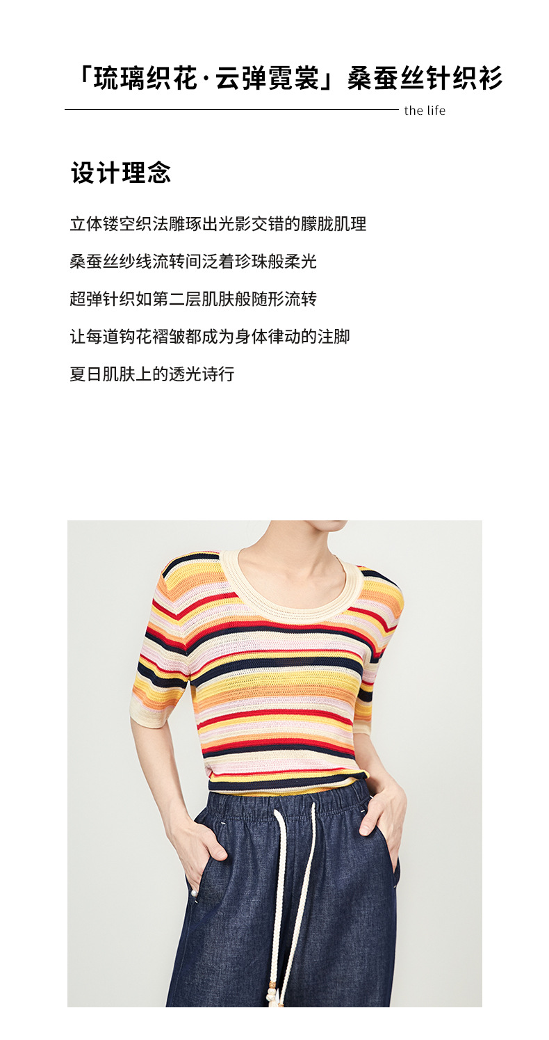 「高货wl」全新升级【铂金会员201/天猫269/差价68】(51140)洛诗琳立体镂空织花上衣2025夏季新款定染纱线针织短袖女