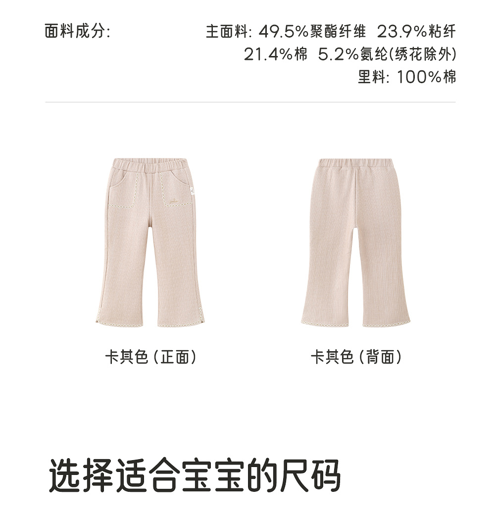 【商场同款】英氏儿童裤子秋冬休闲百搭女童长裤新款时尚卡其裤子