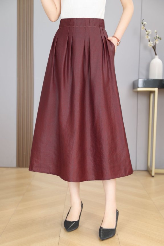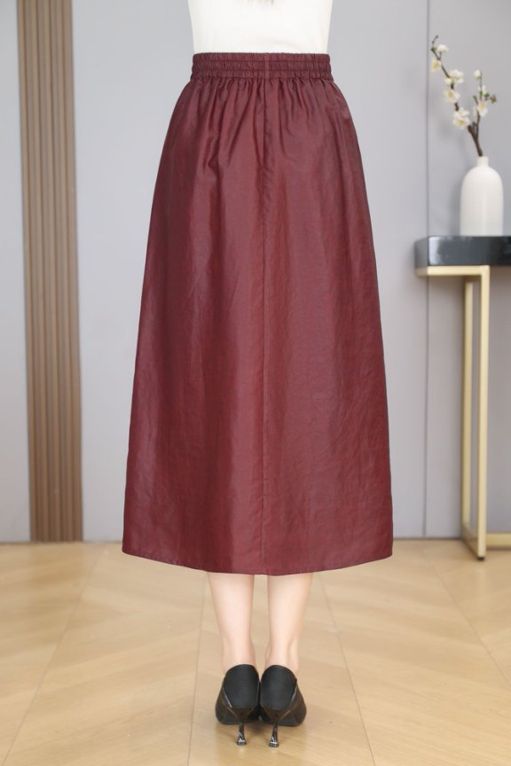 丁摩 真丝老料香云纱款100%桑蚕丝高腰通勤洋气优雅半身裙2516