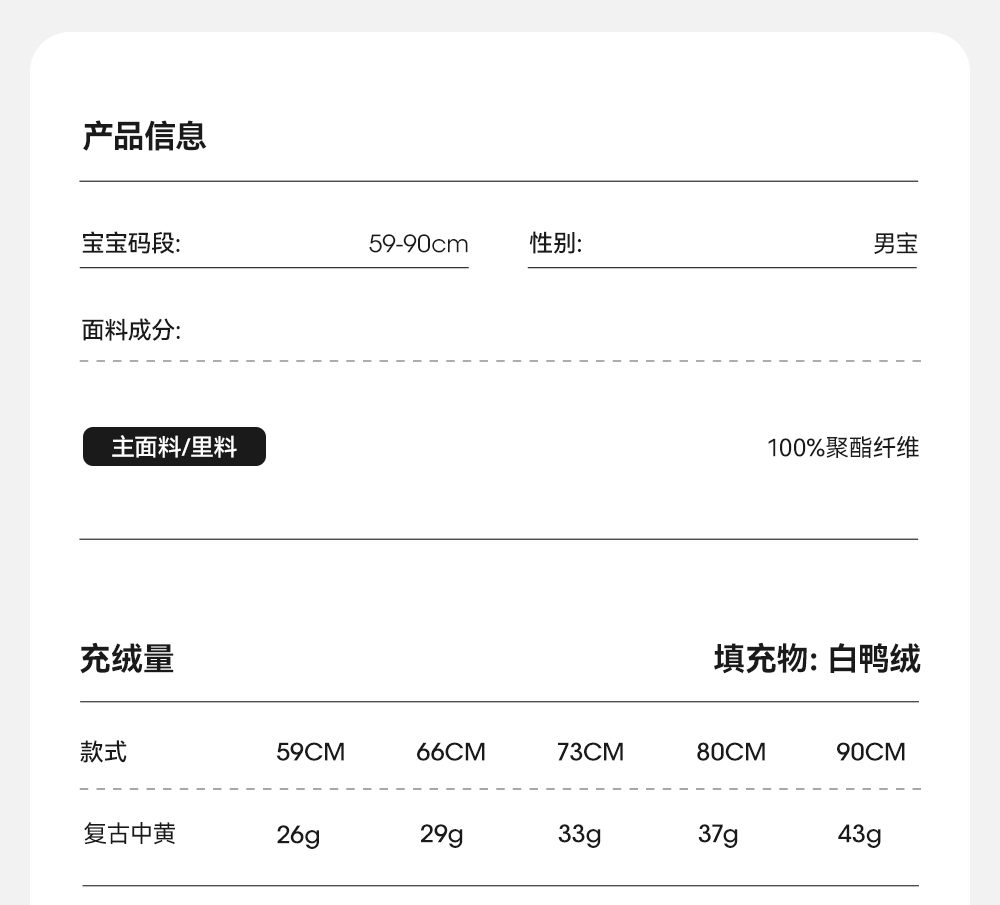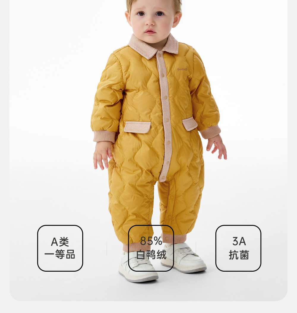 【商场同款】英氏婴儿衣服秋冬白鸭绒连体羽绒服保暖连体衣超韧绒