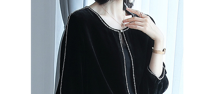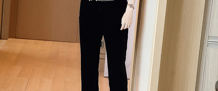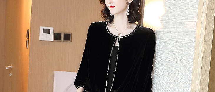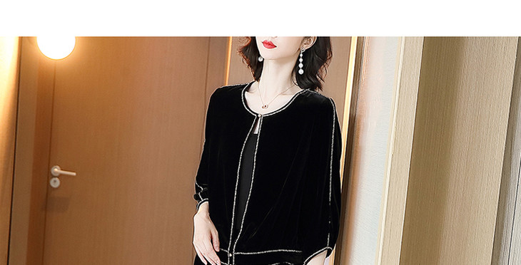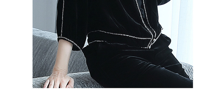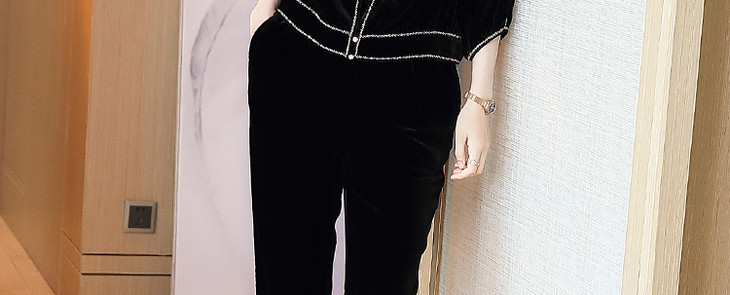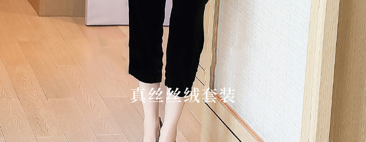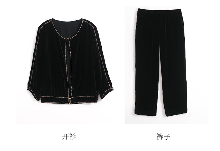 丁摩 真丝丝绒套装女两件套钉珠圆领桑蚕丝开衫休闲九分裤20-216DL699