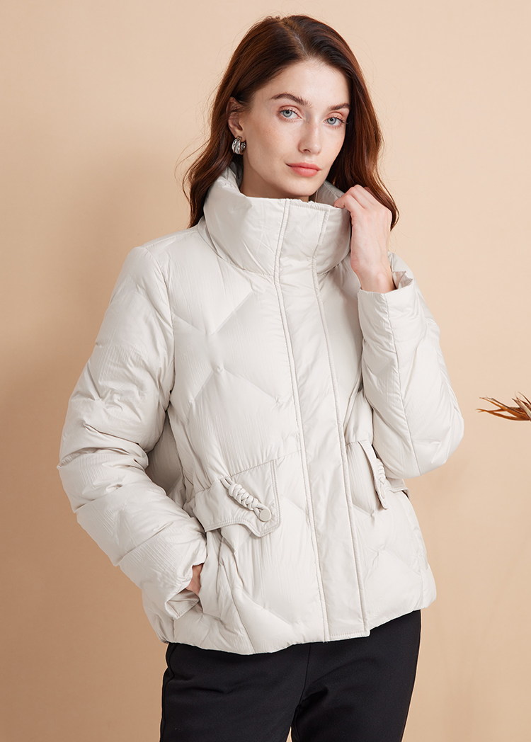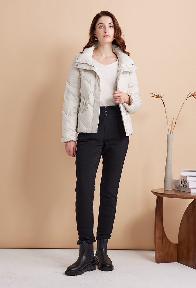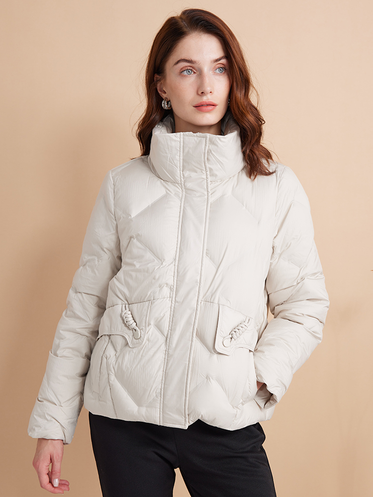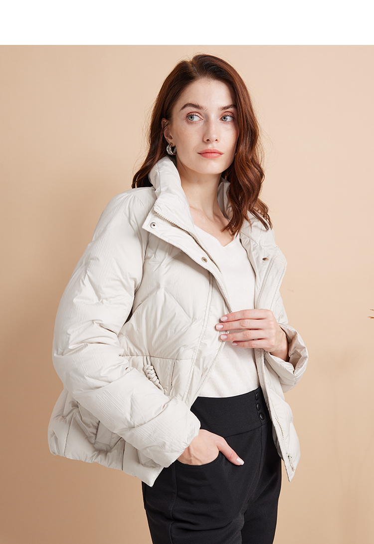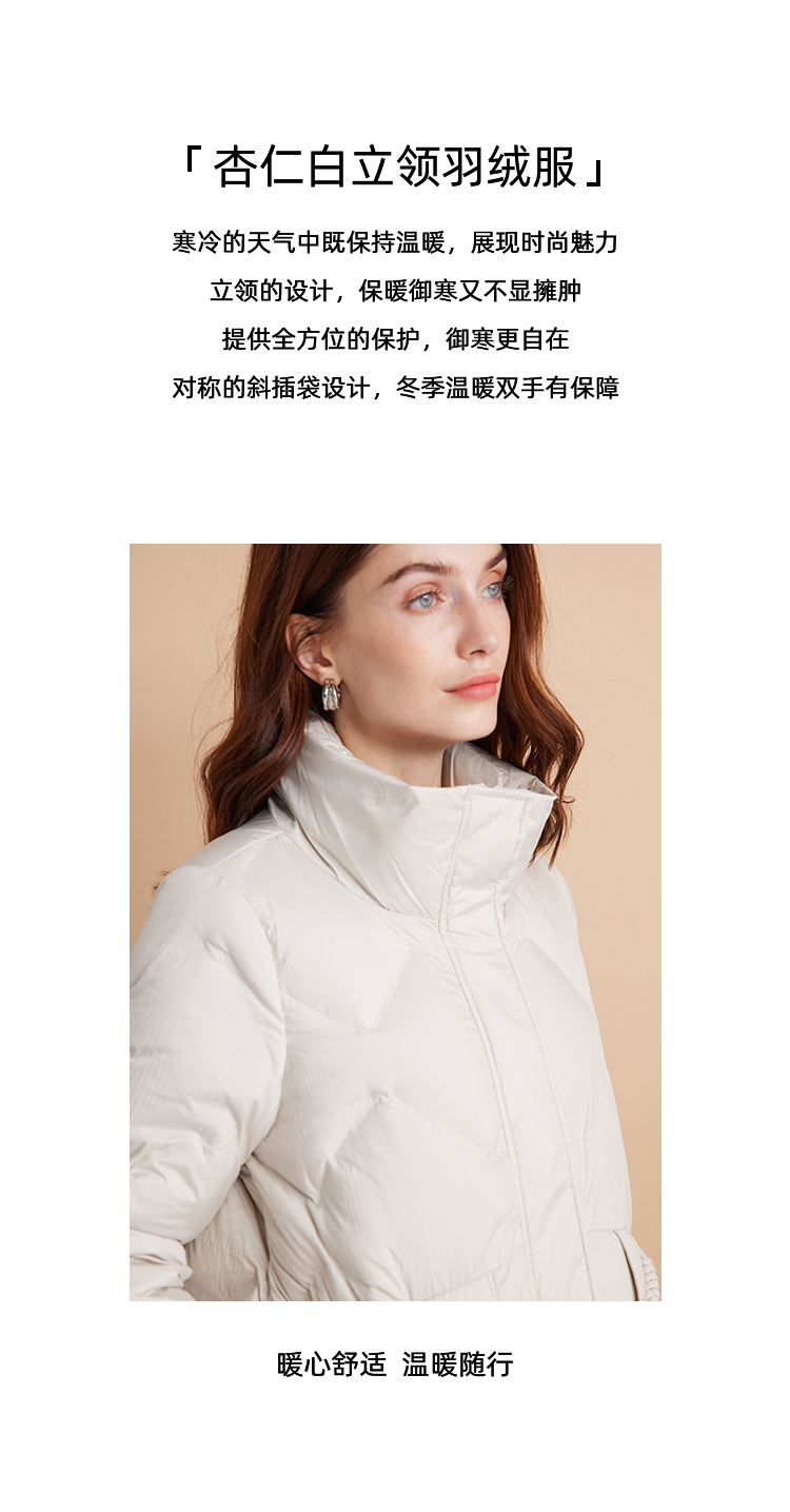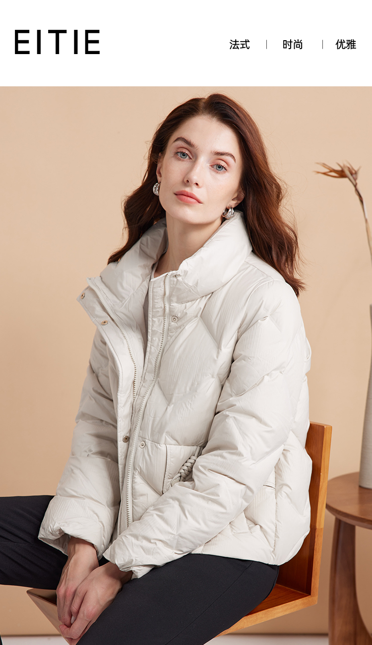 EITIE爱特爱立领防风保暖时尚纯色百搭显瘦短款羽绒服冬新款D2411407