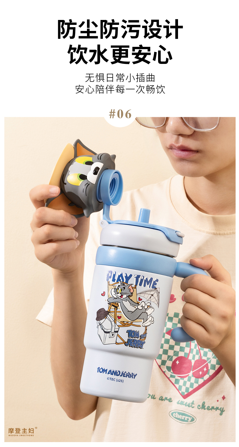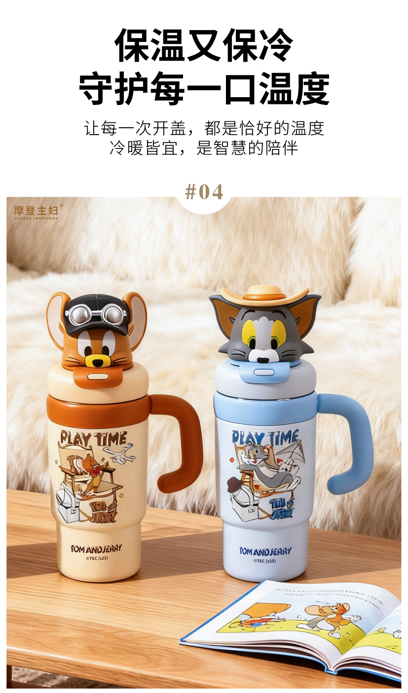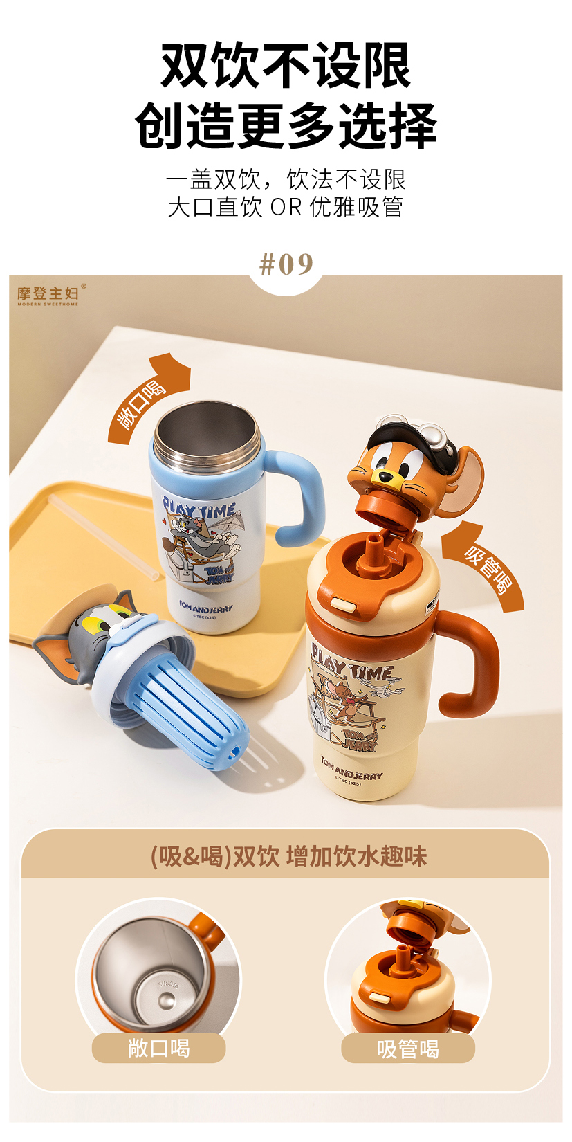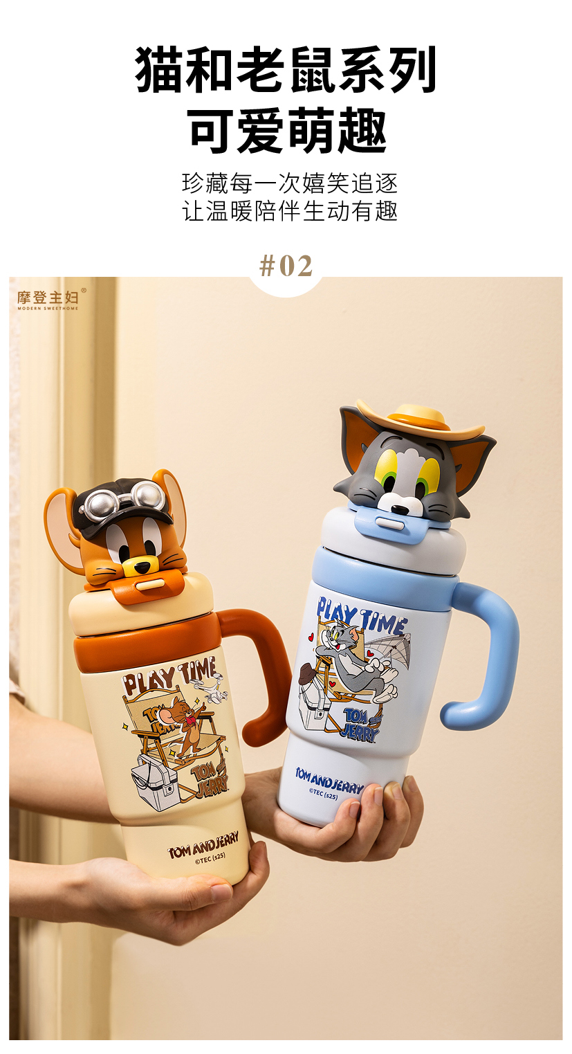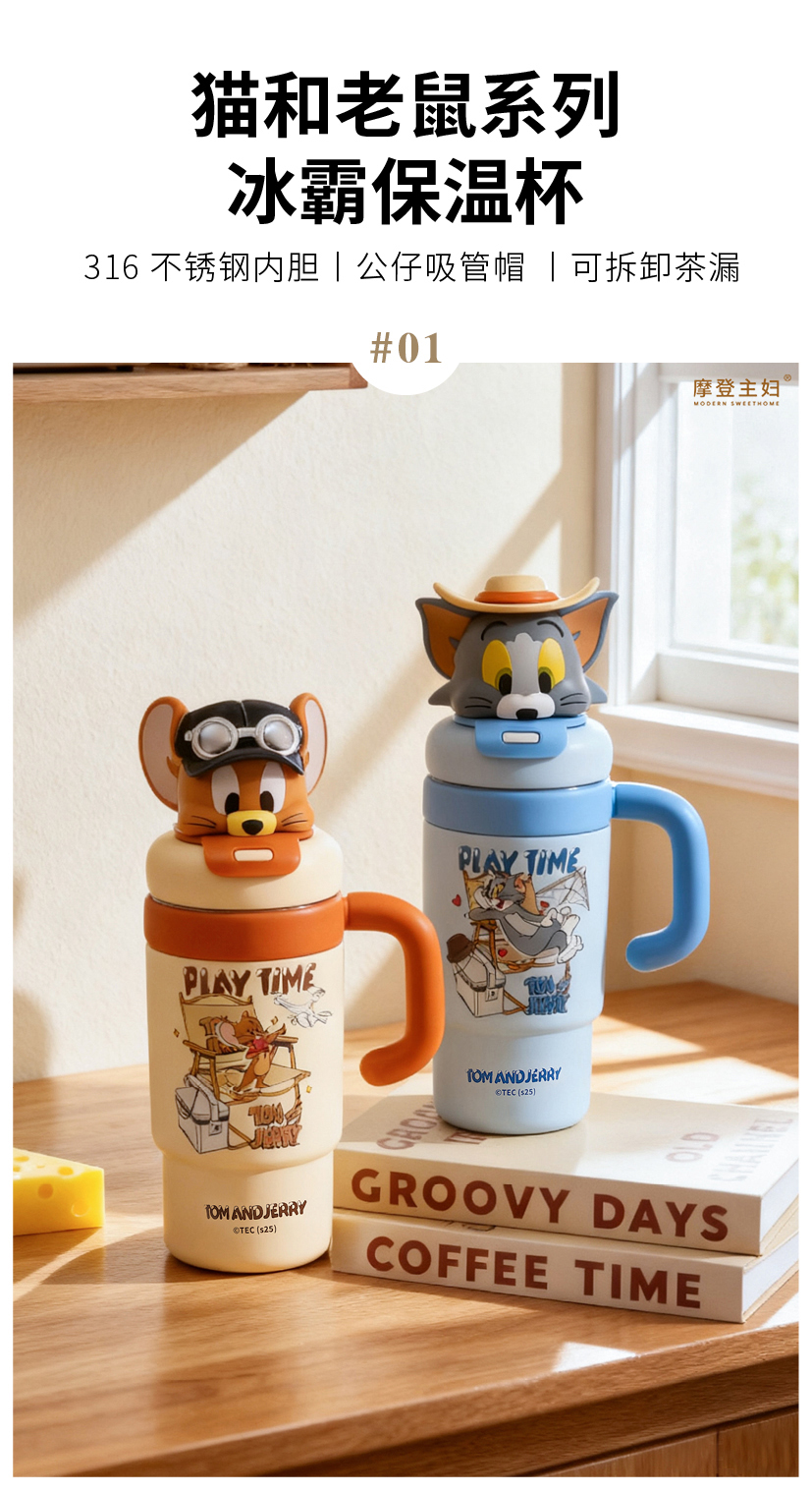 摩登主妇猫和老鼠保温杯大容量冰霸杯2025新款不锈钢杯子吸管水杯