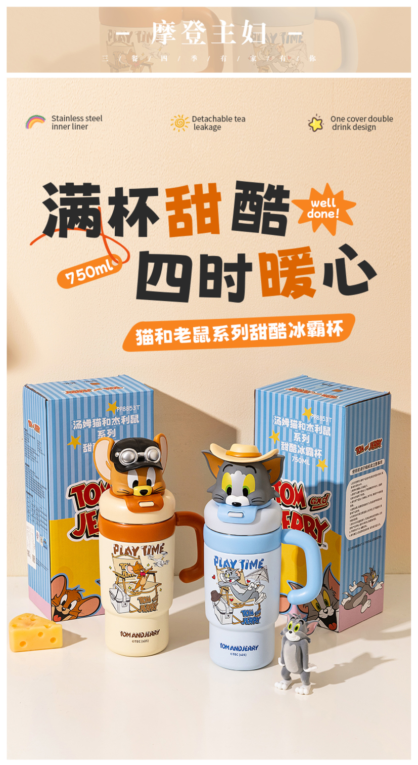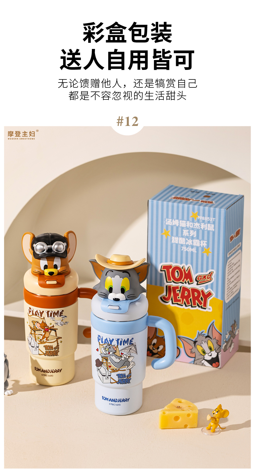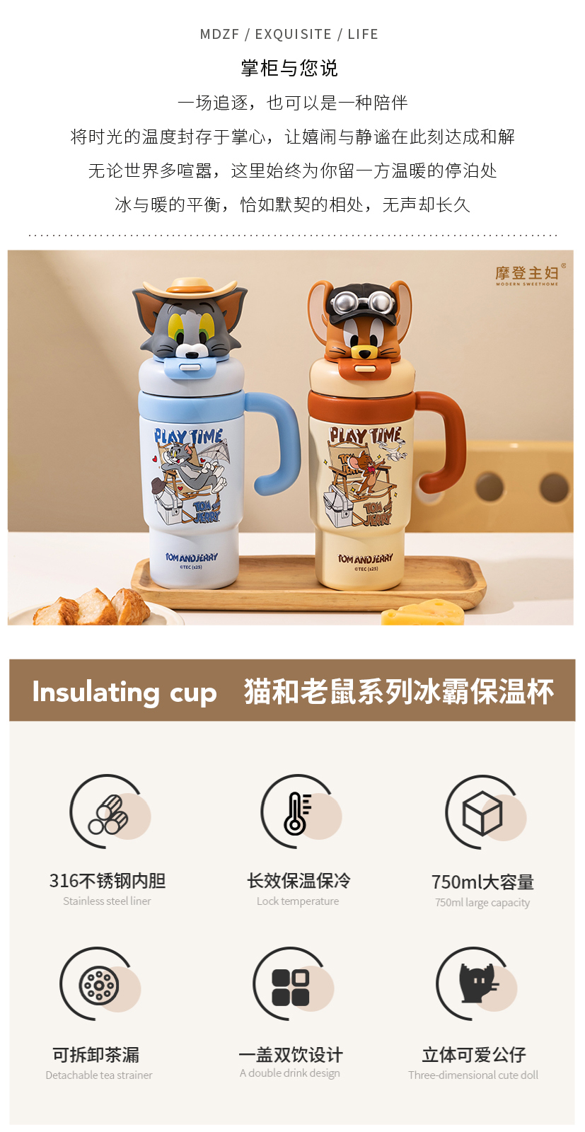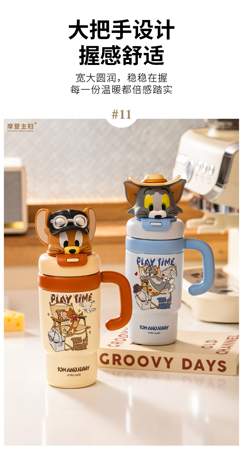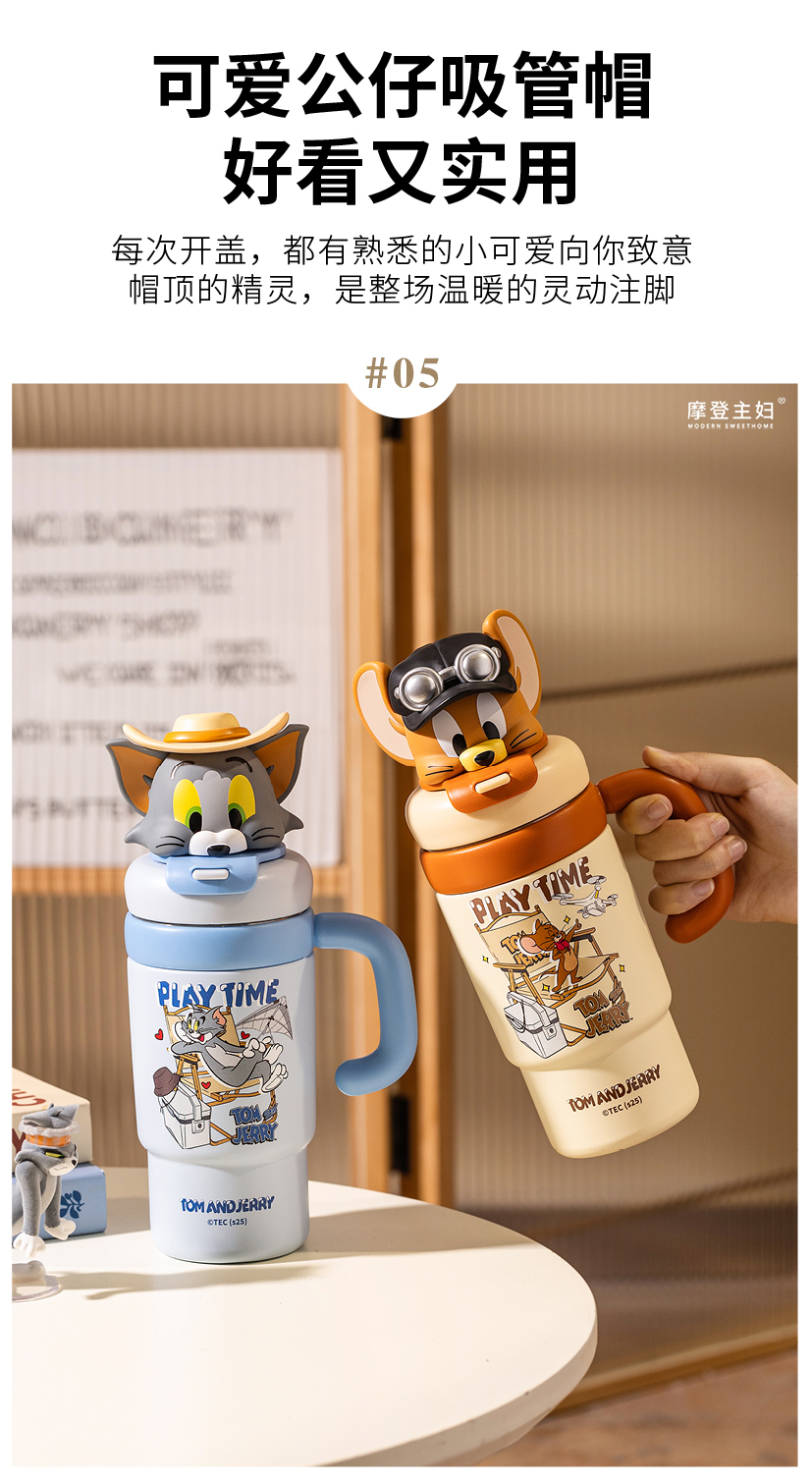 摩登主妇猫和老鼠保温杯大容量冰霸杯2025新款不锈钢杯子吸管水杯