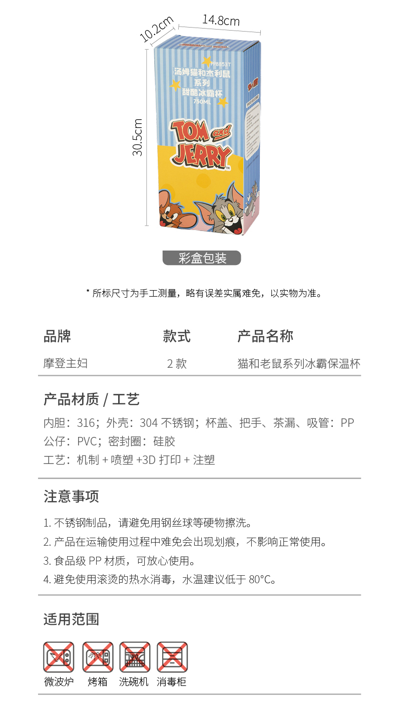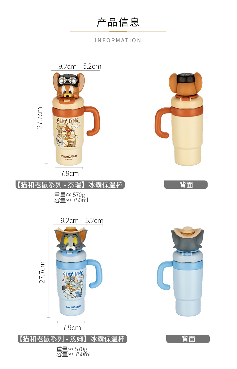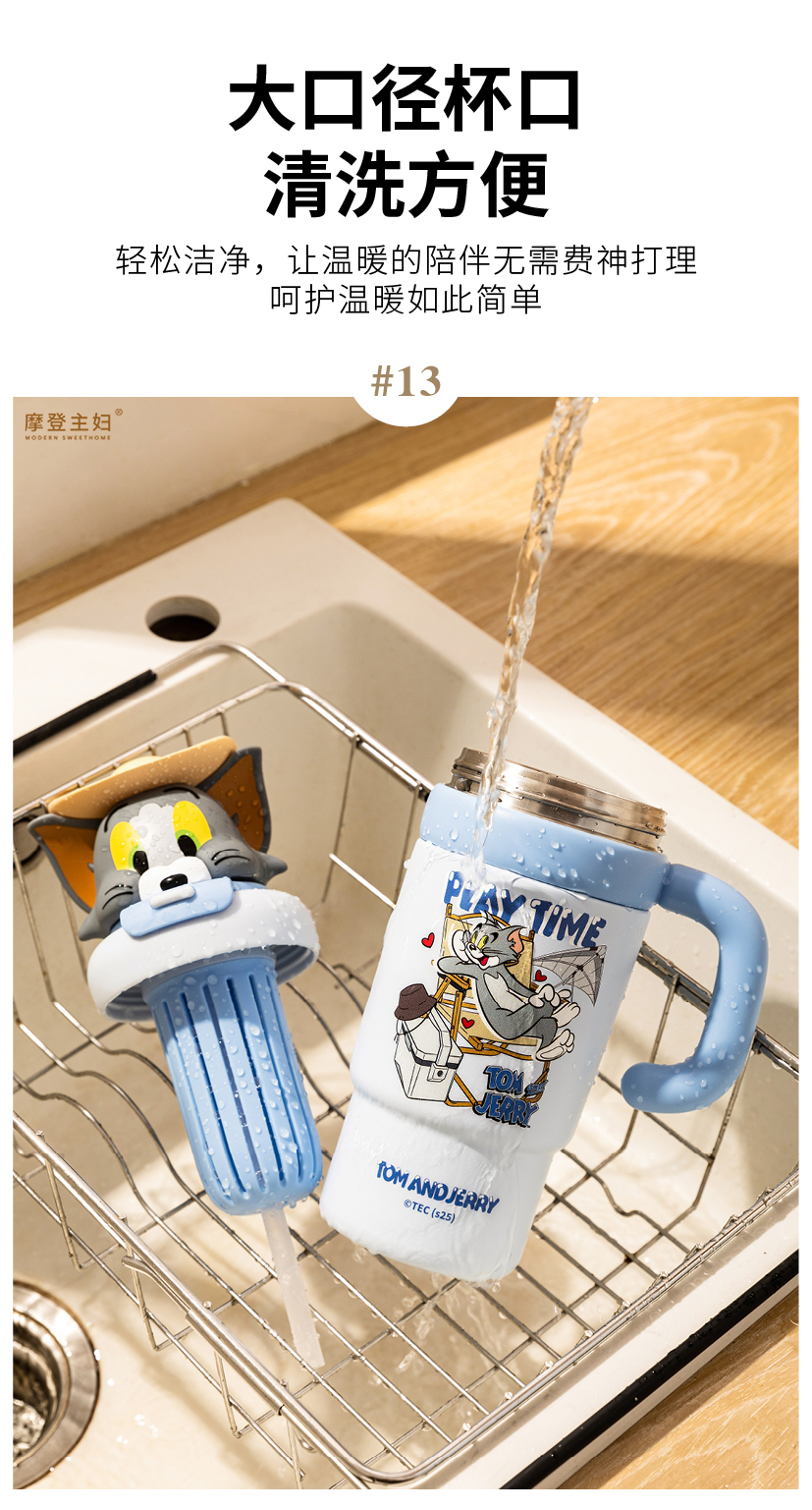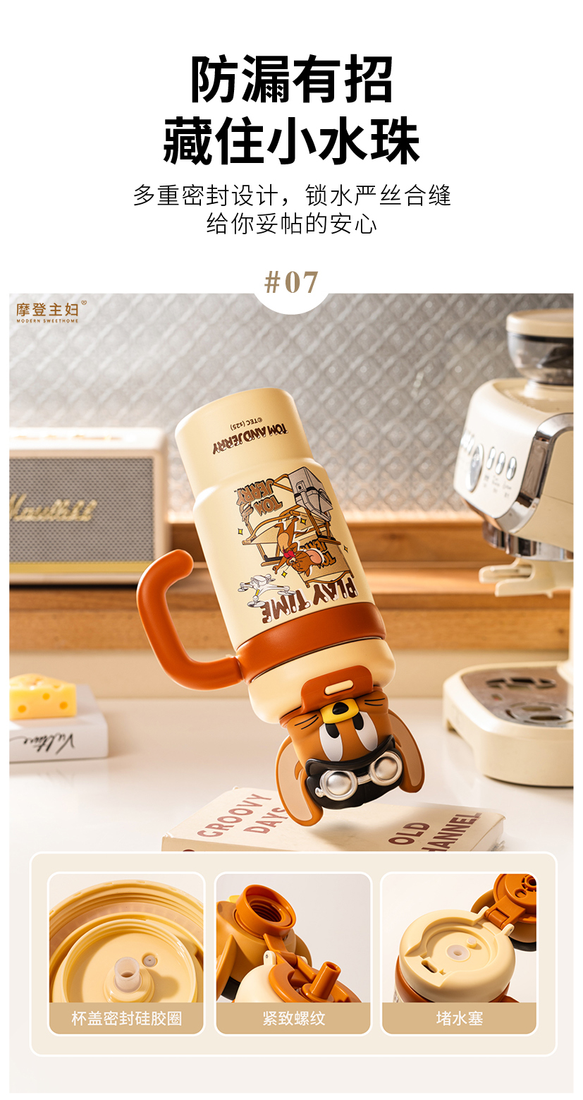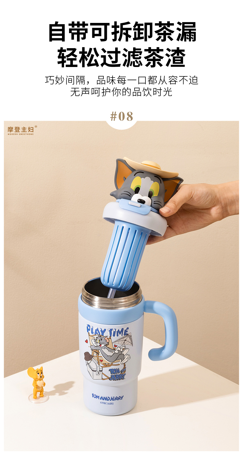 摩登主妇猫和老鼠保温杯大容量冰霸杯2025新款不锈钢杯子吸管水杯