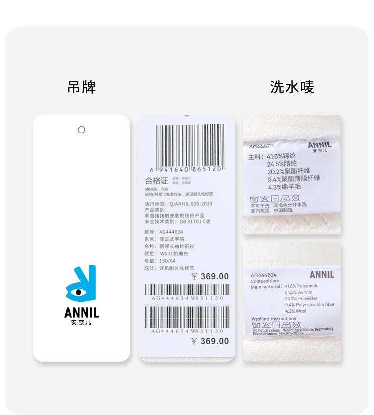 女童抗起球保暖毛衣冬季新款安奈儿童装实体店同款AG444634