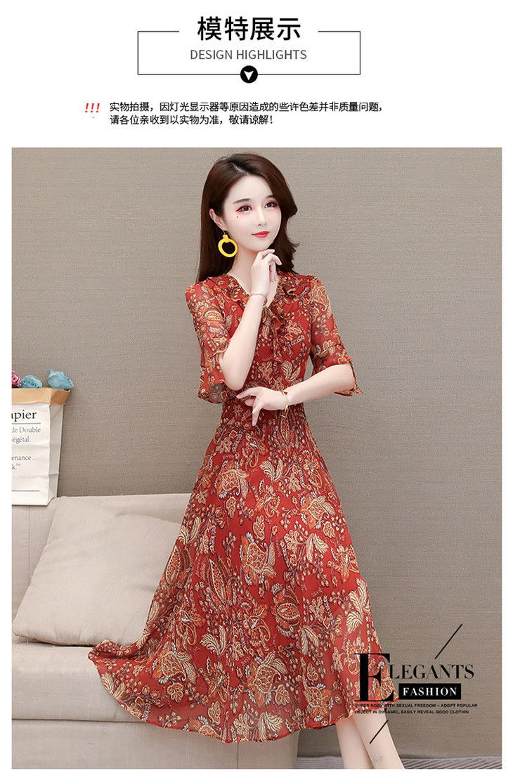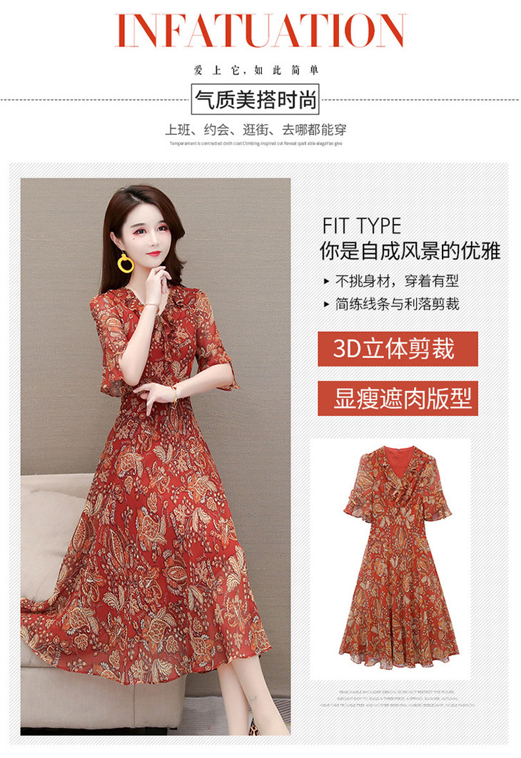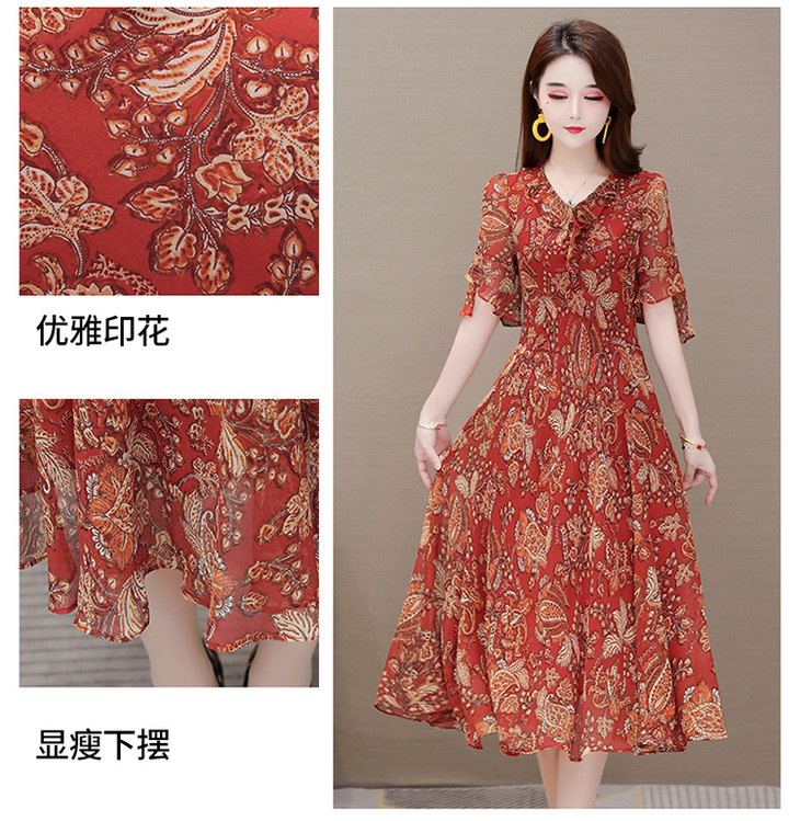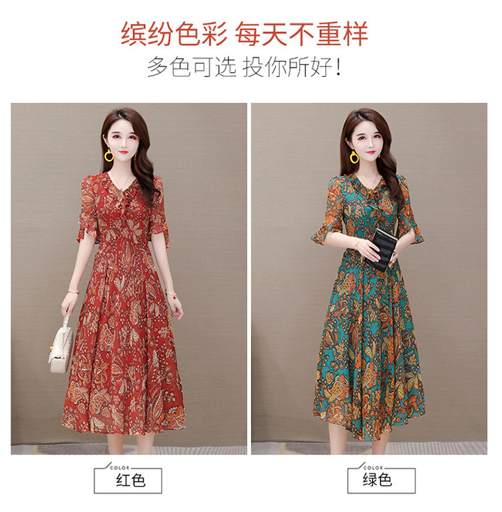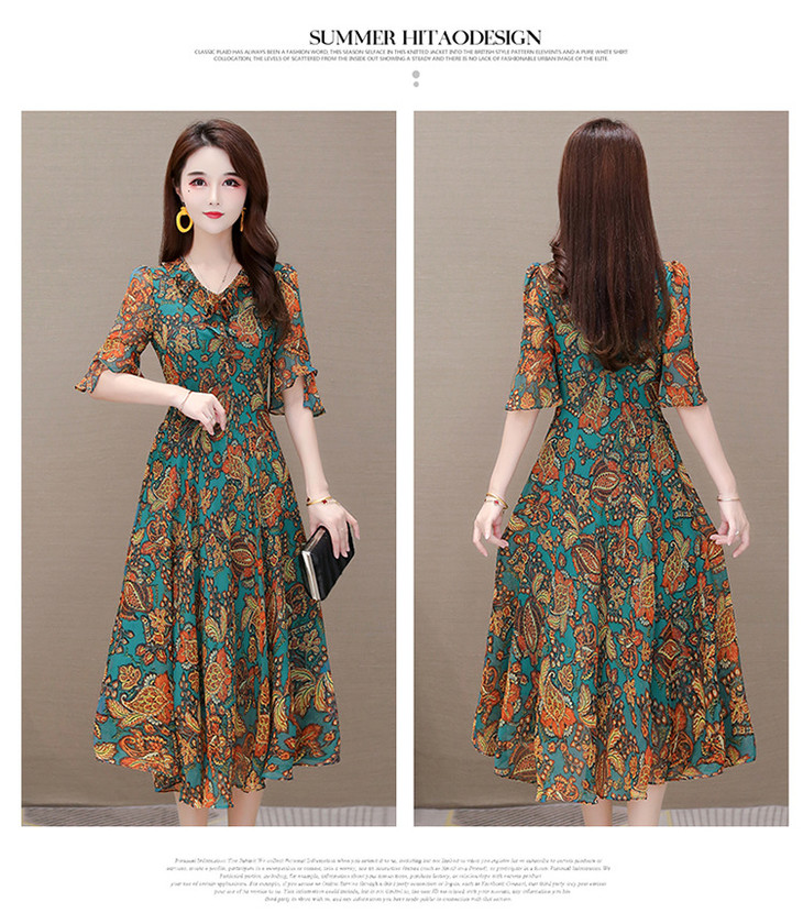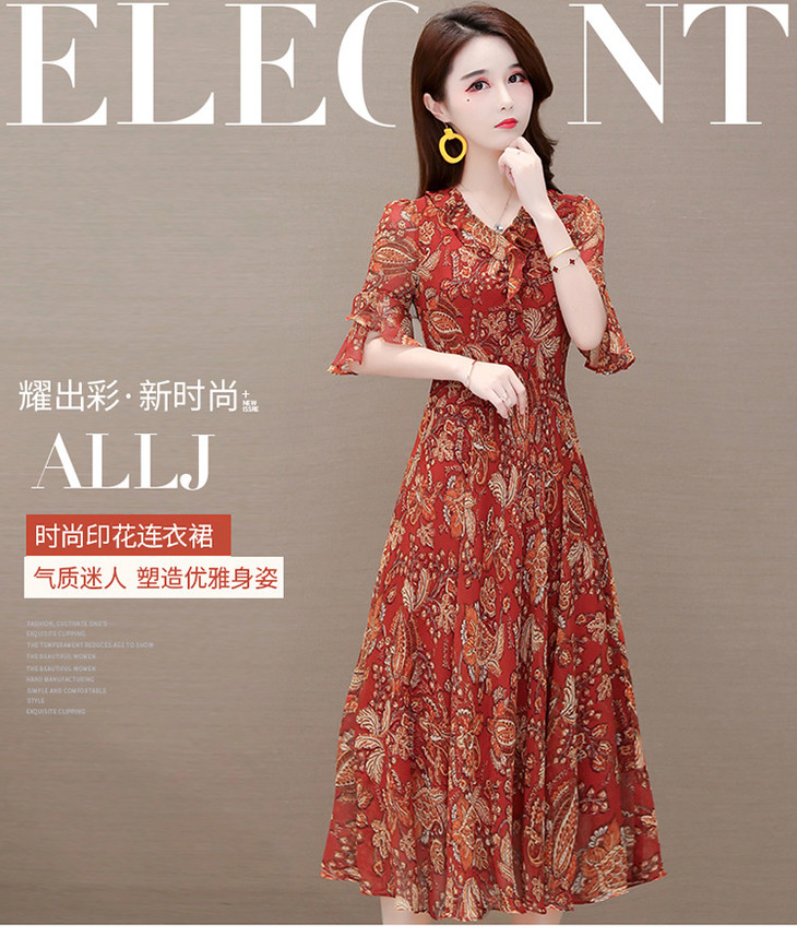 YW-ALLJ20A63X新款时尚气质印花雪纺连衣裙