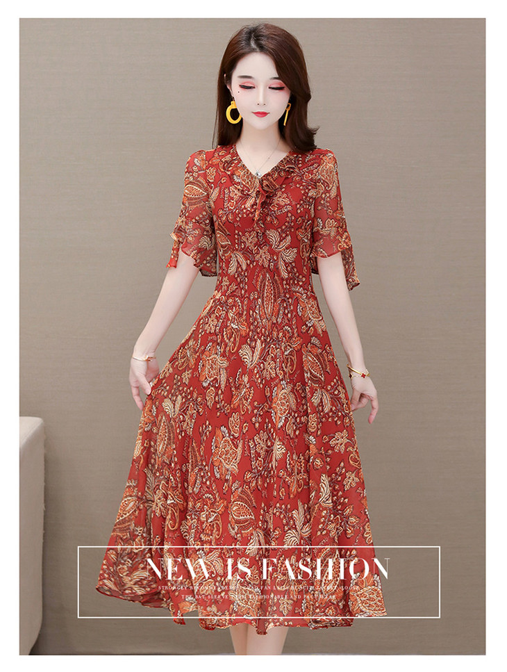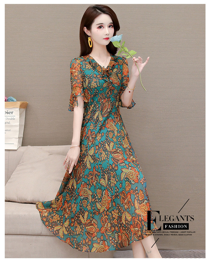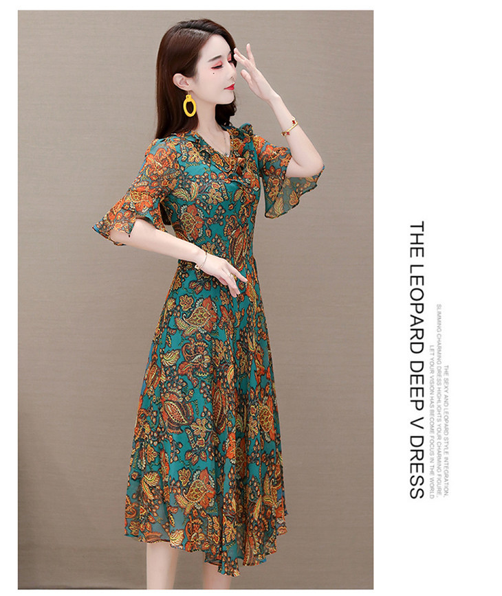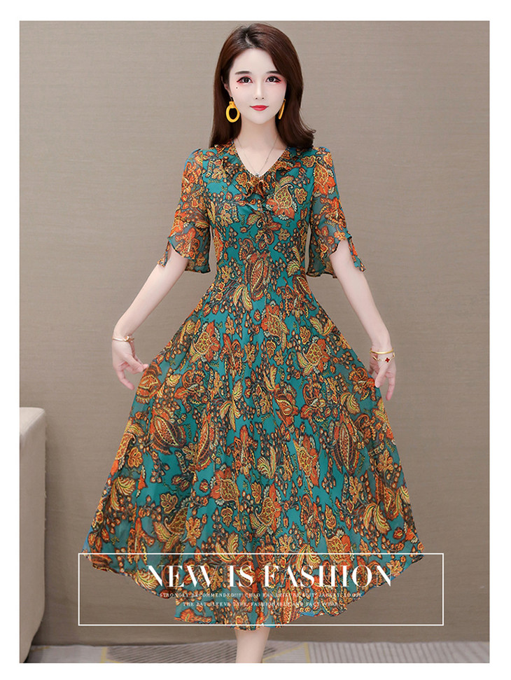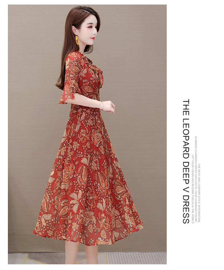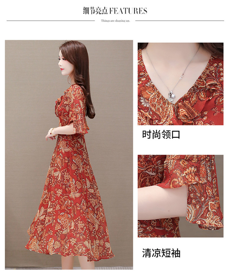 YW-ALLJ20A63X新款时尚气质印花雪纺连衣裙