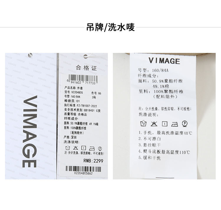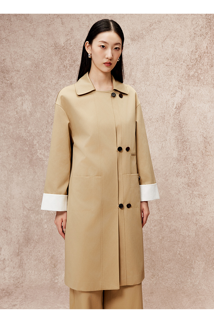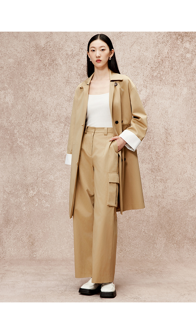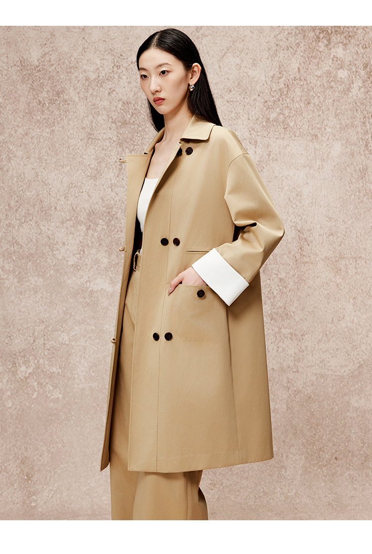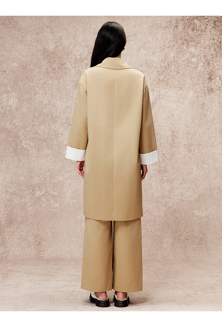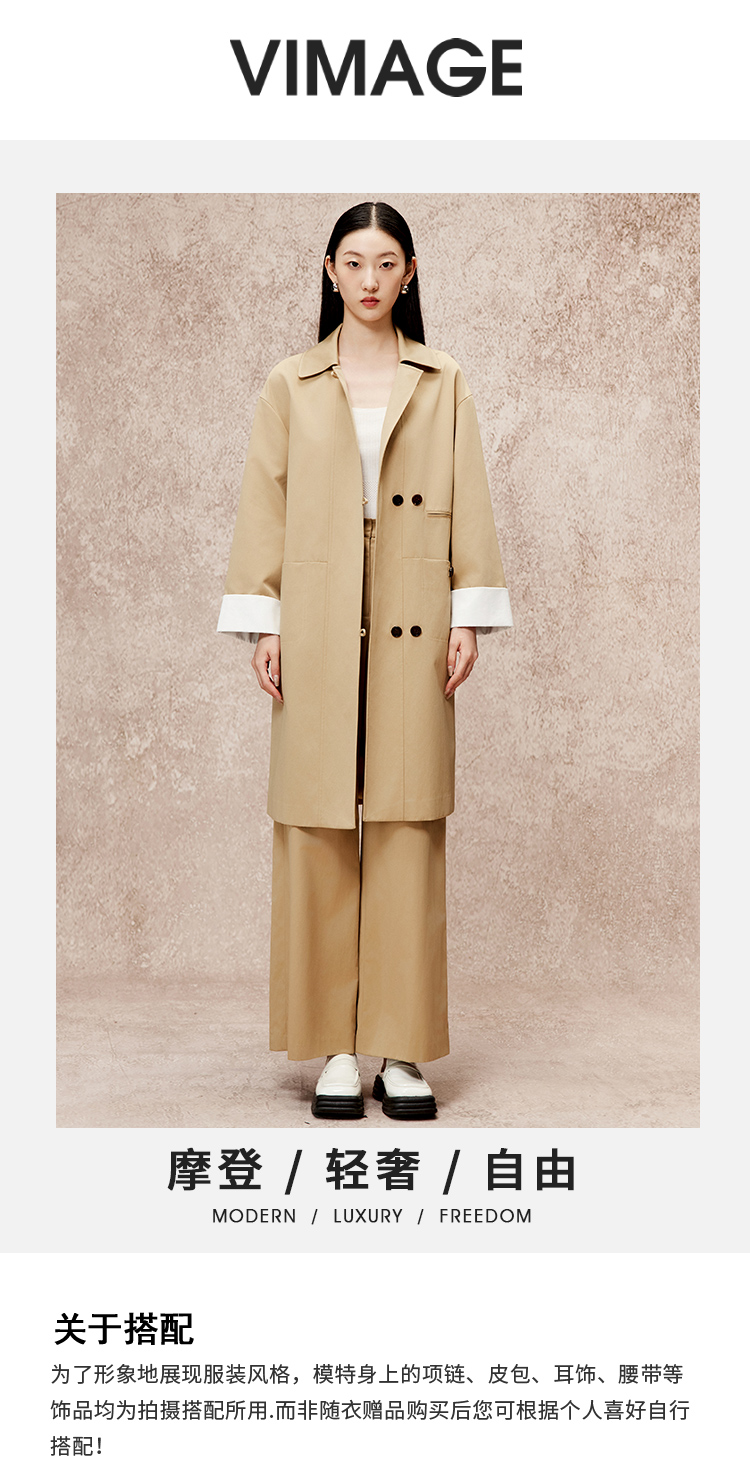 VIMAGE纬漫纪冬季新款直筒宽松翻领中长款风衣外套V2204805