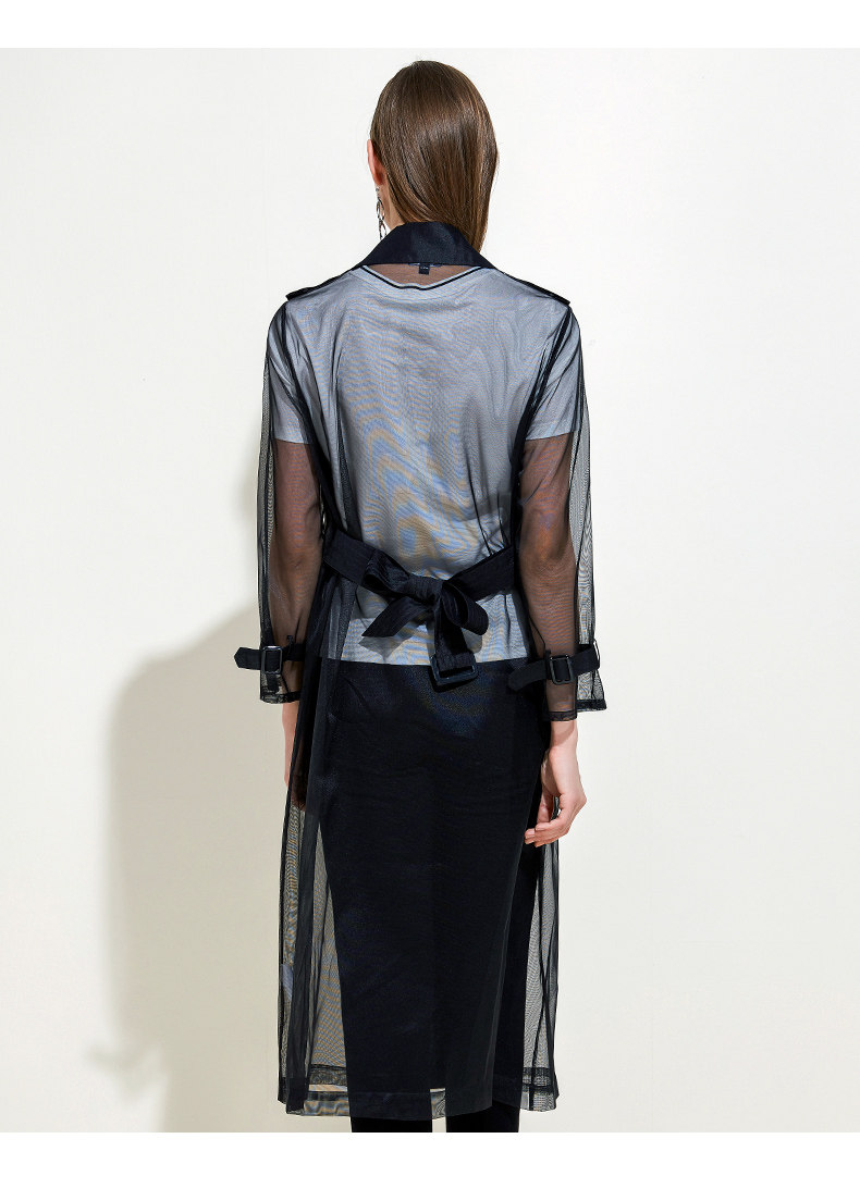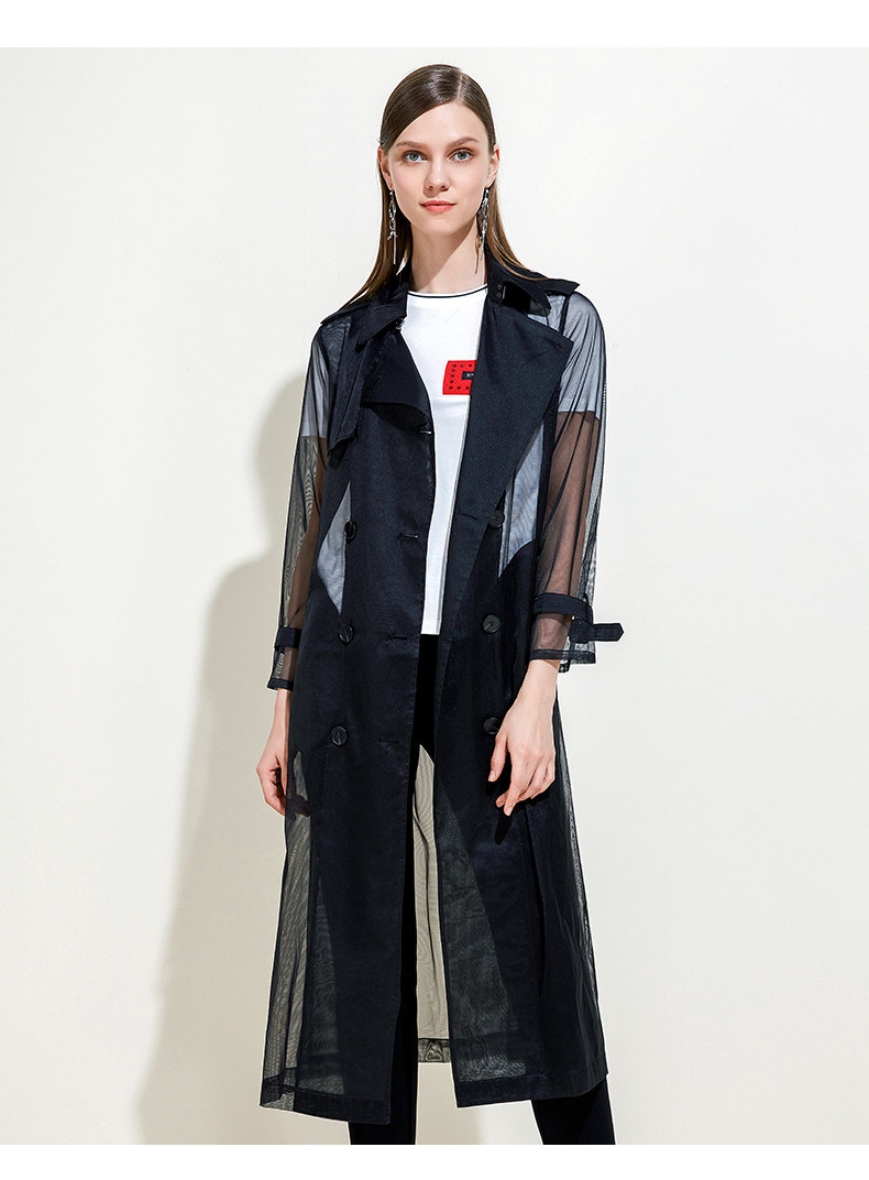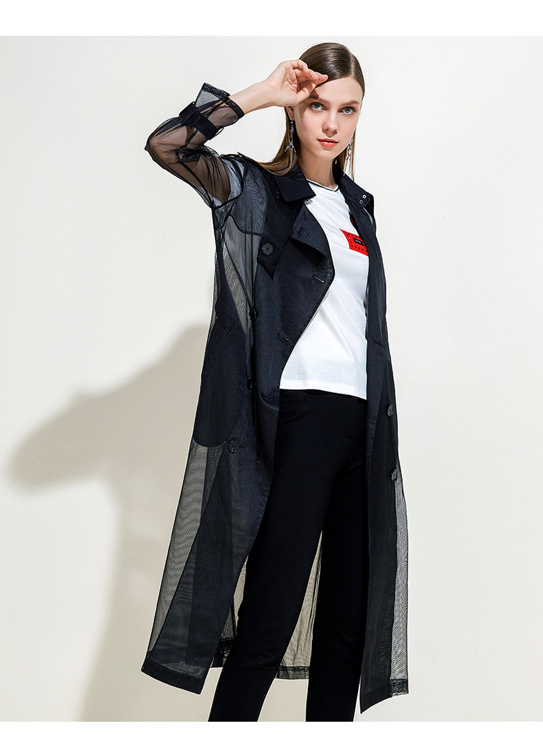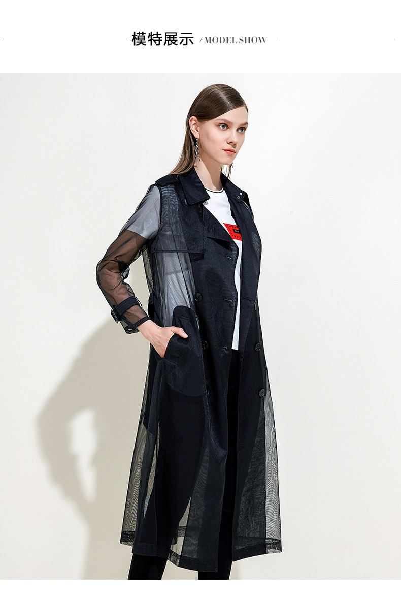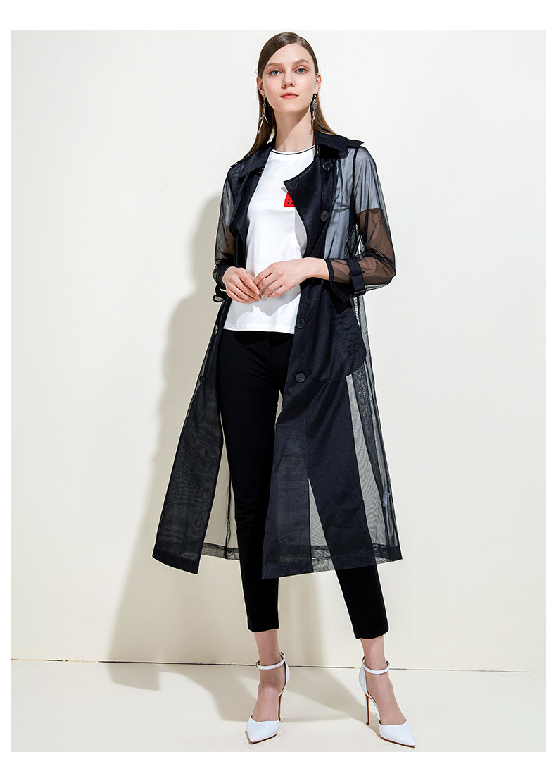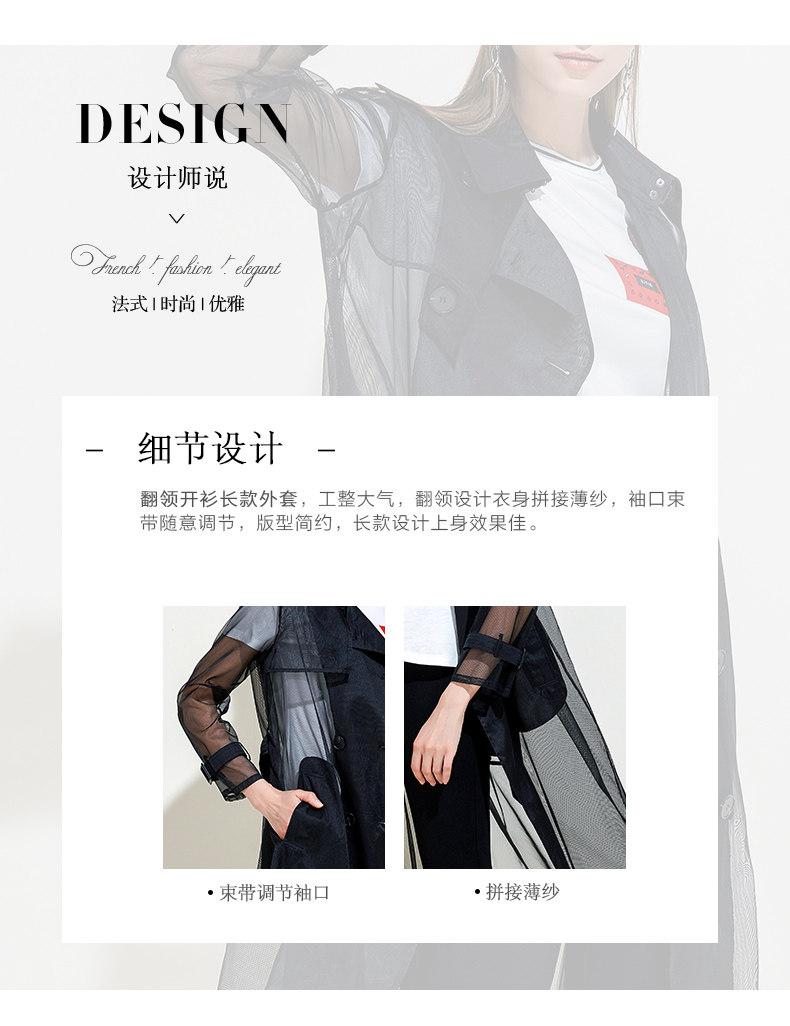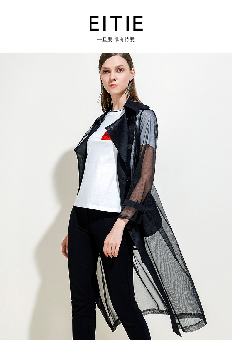 EITIE爱特爱女装夏季翻领轻薄透气防晒薄纱拼接开衫长款外套5904614
