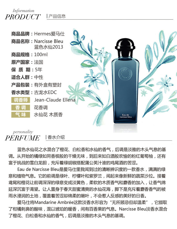 Hermes爱马仕古龙水 (沁蓝水仙香型)