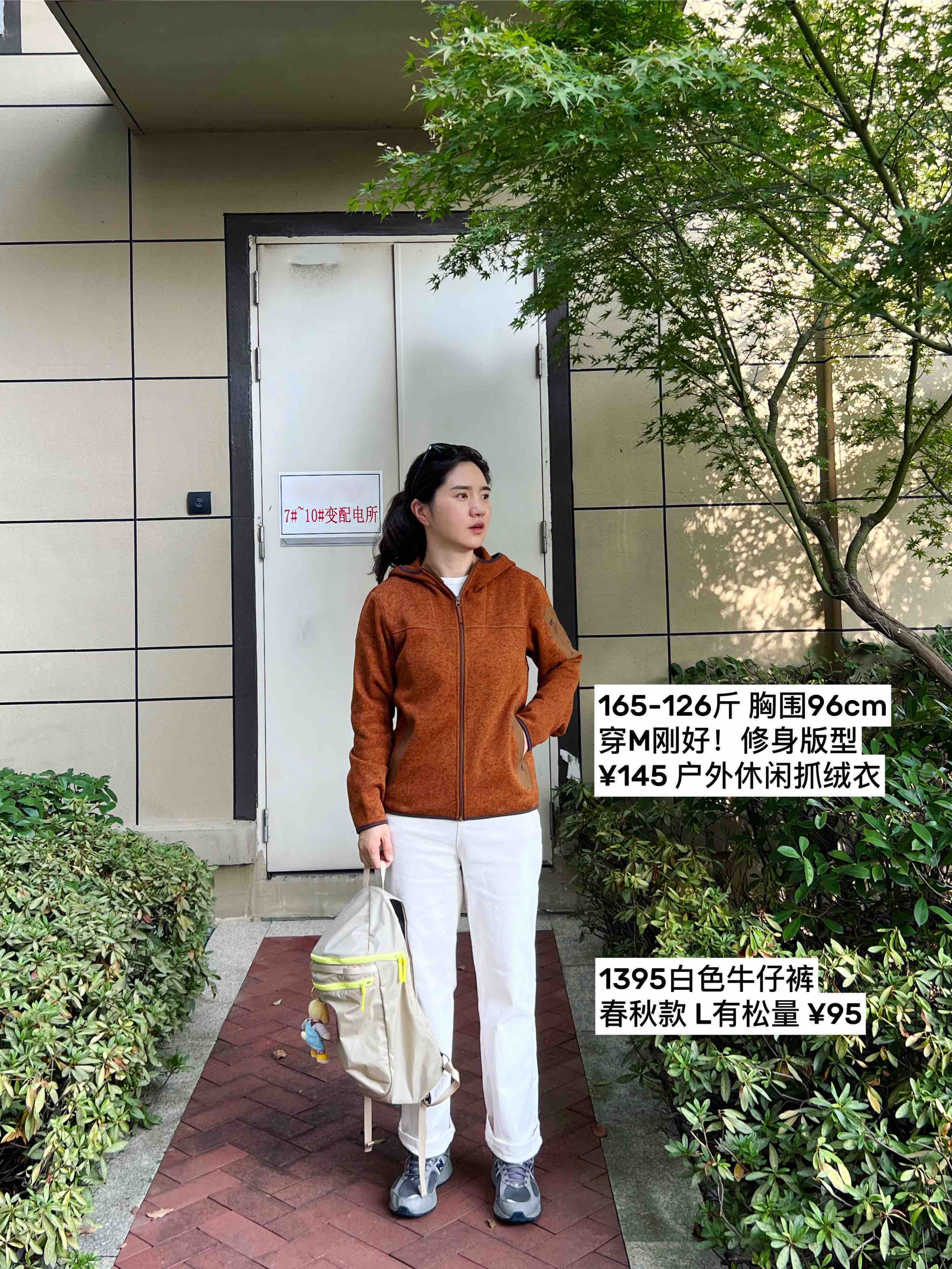 女:会会 165-126斤 胸围96cm 内搭一件长袖T 穿M正好