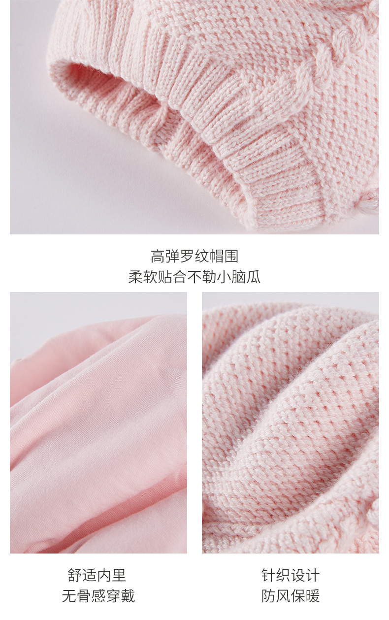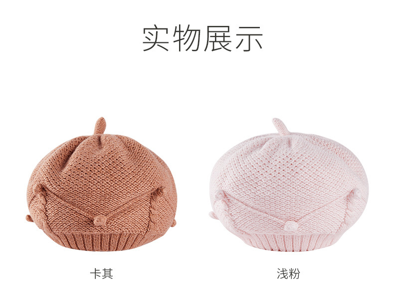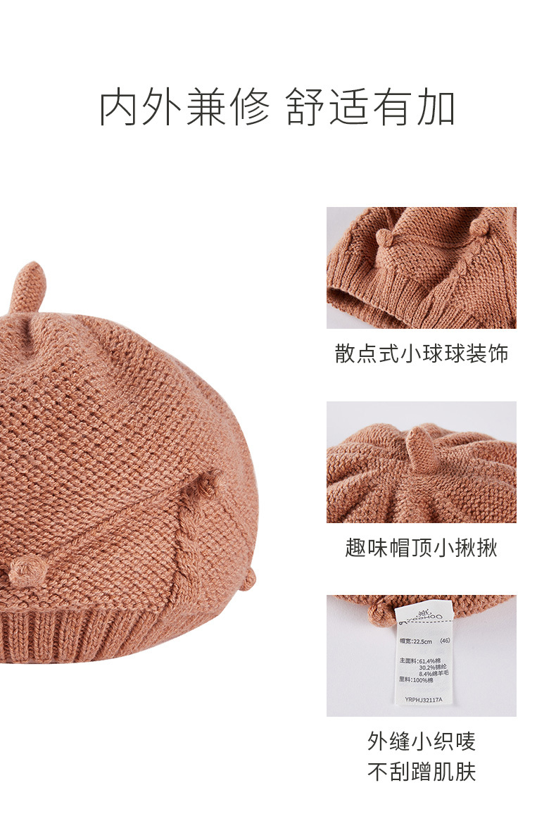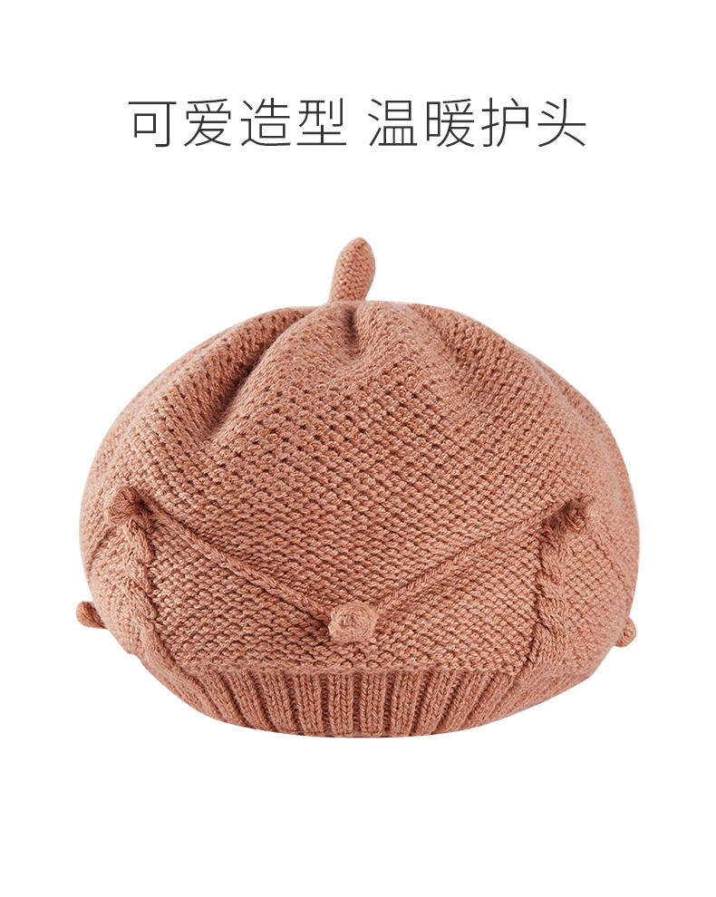 英氏儿童帽子女童针织帽秋冬款防寒保暖文艺风贝雷帽