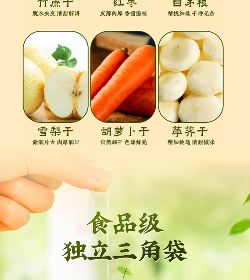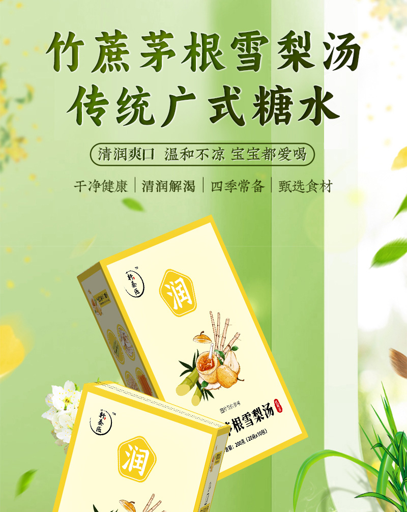 【竹蔗茅根雪梨汤】 舒润甘甜生津解渴 免煮三角包茶袋 开水冲泡即可 200g(20g*10包)