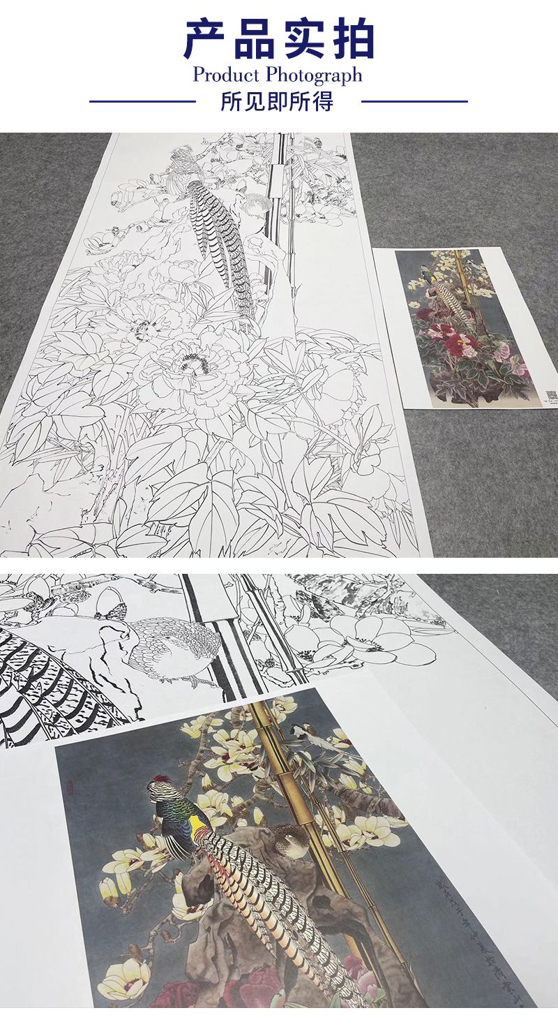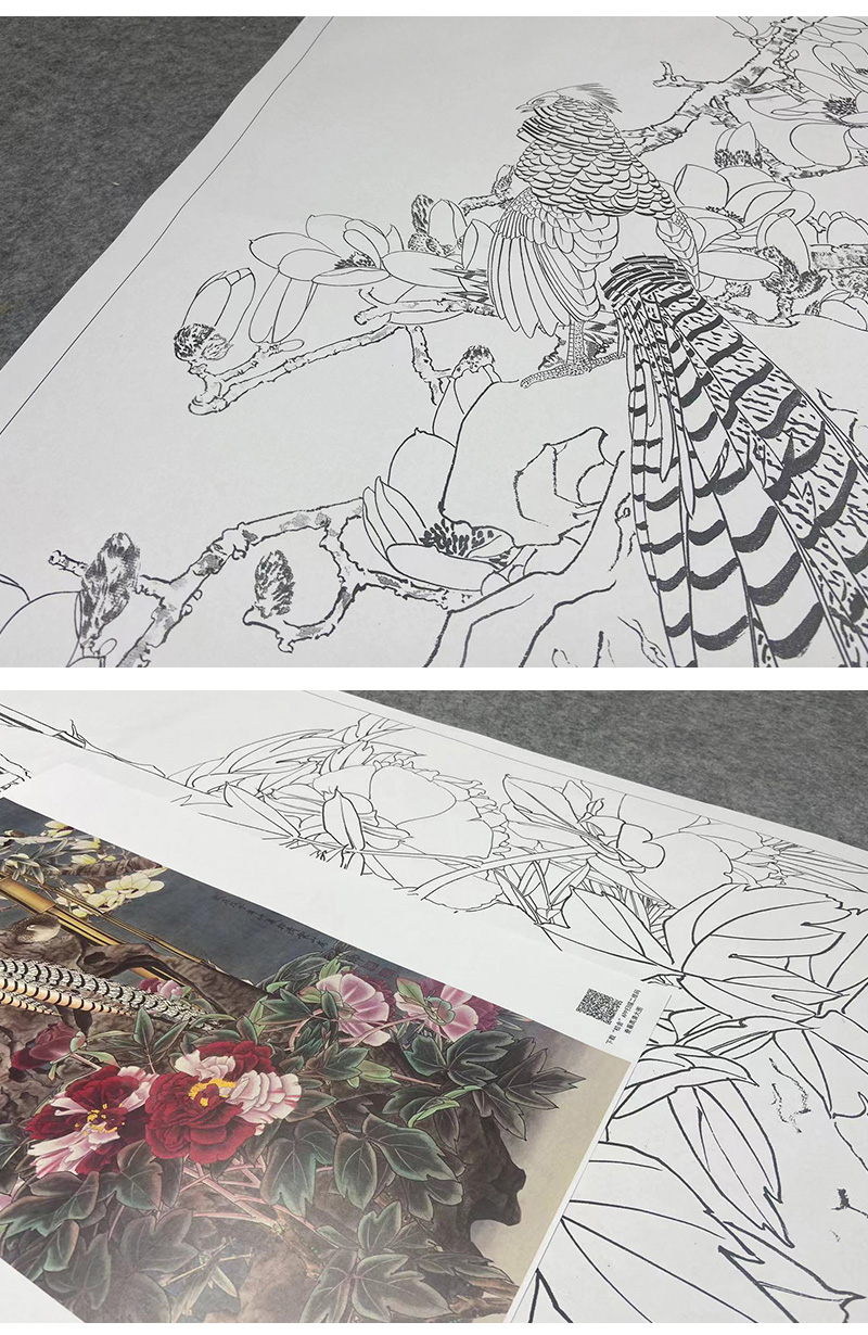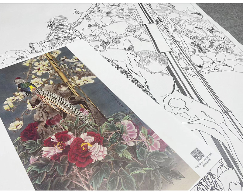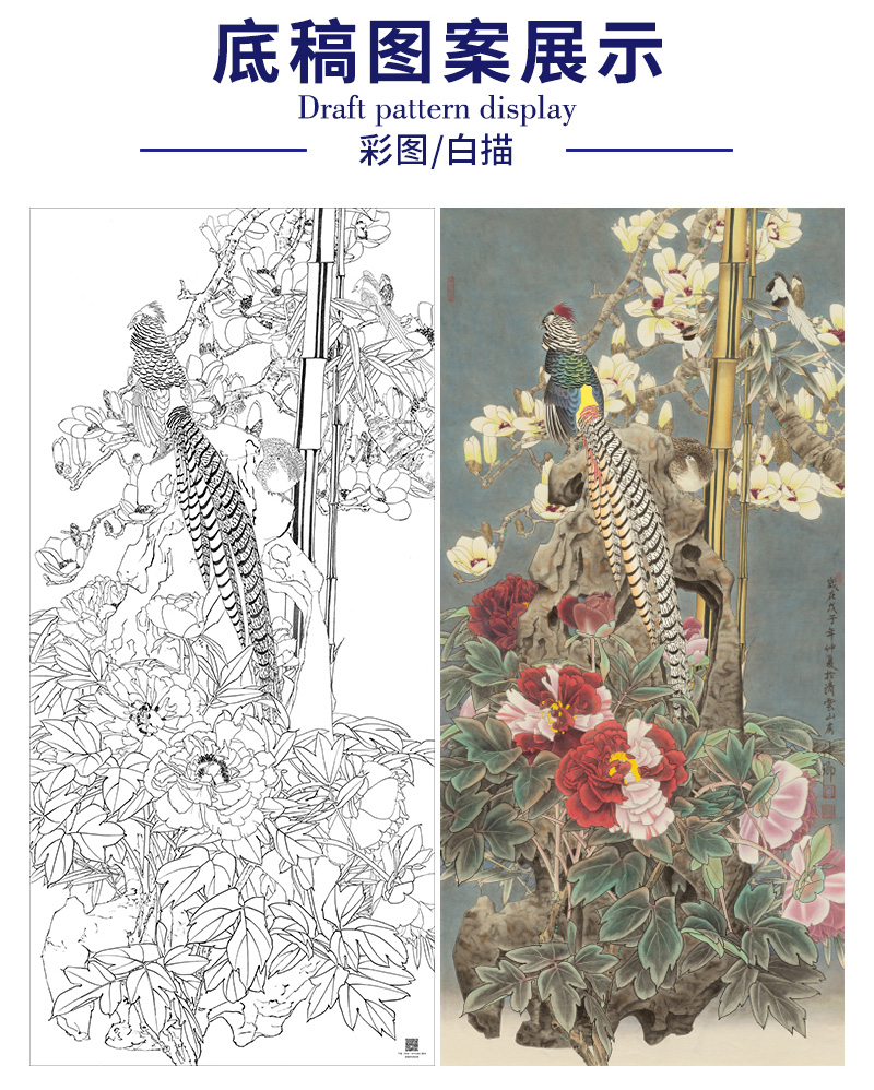 【大彩图】窦绅卿工笔画白描底稿《华堂益多图》锦鸡临摹勾线花鸟线稿HN07