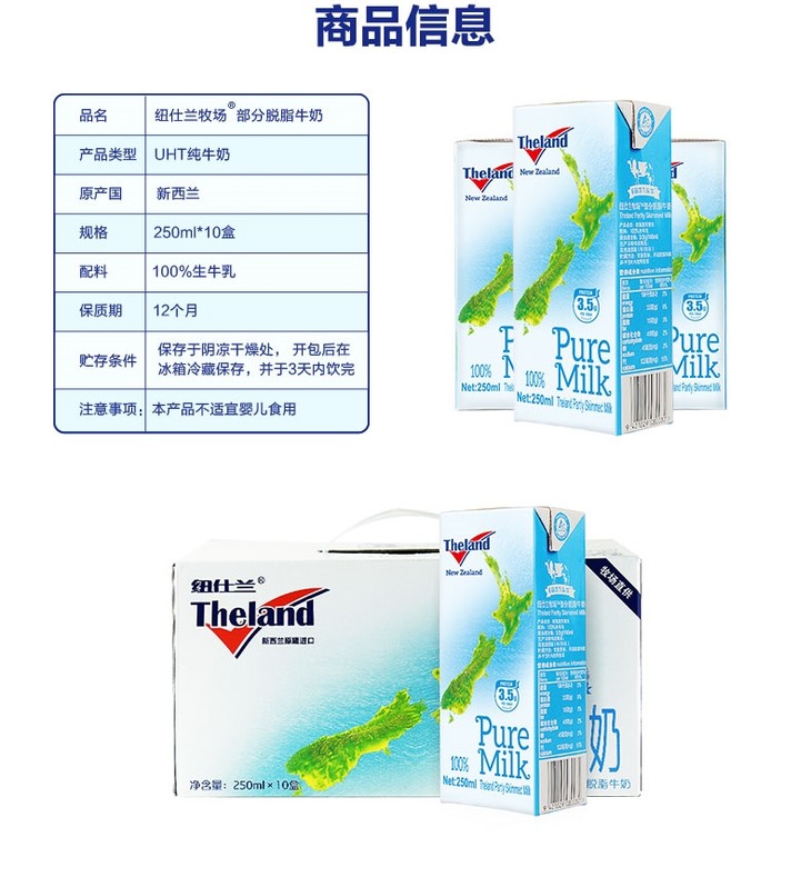 【要你嗨】250ml*10纽仕兰部分脱脂牛奶礼盒 健康奶源 原奶质量Up Up