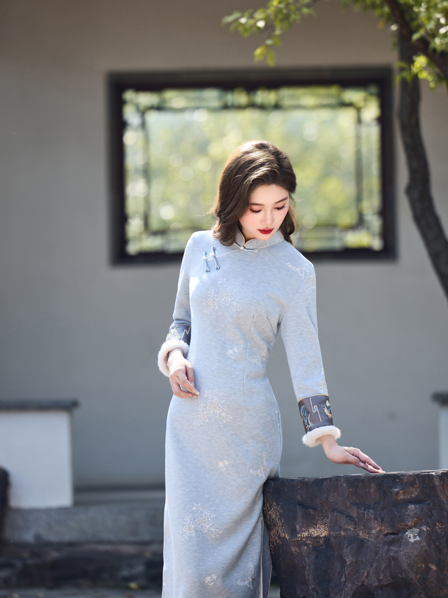 MYJ 气质加绒改良中式连衣裙旗袍日常 商品图3