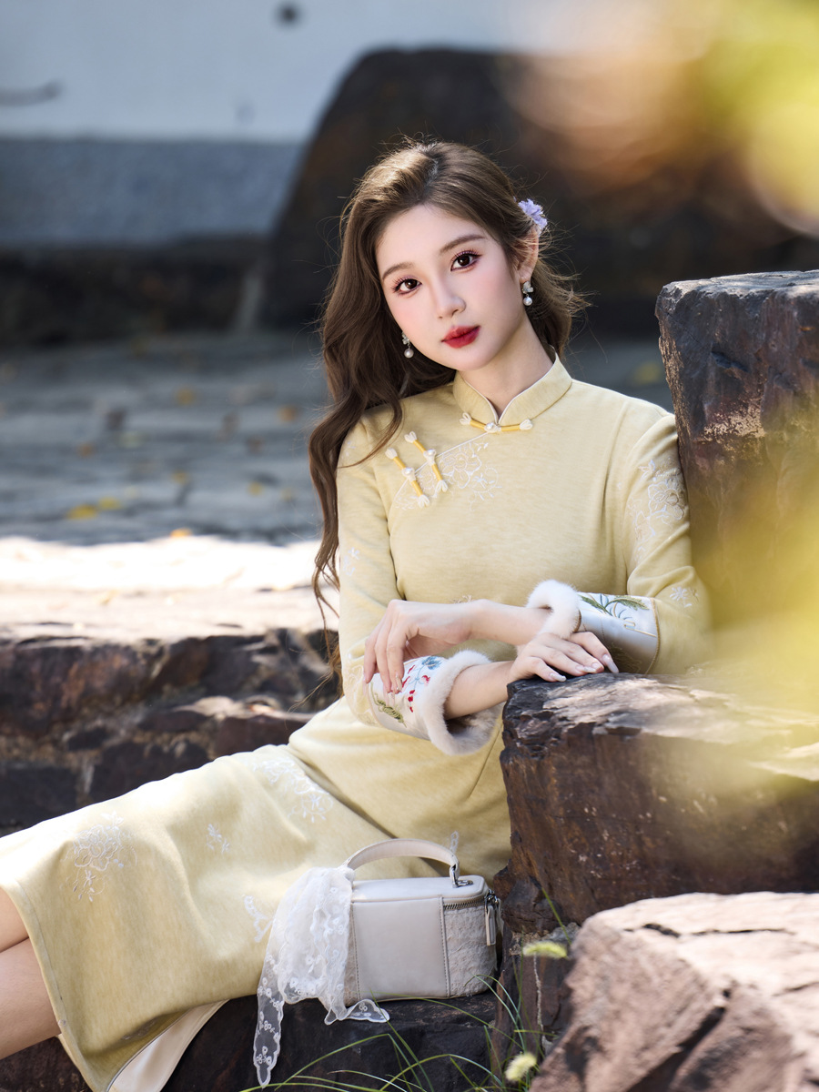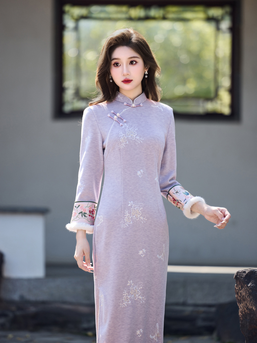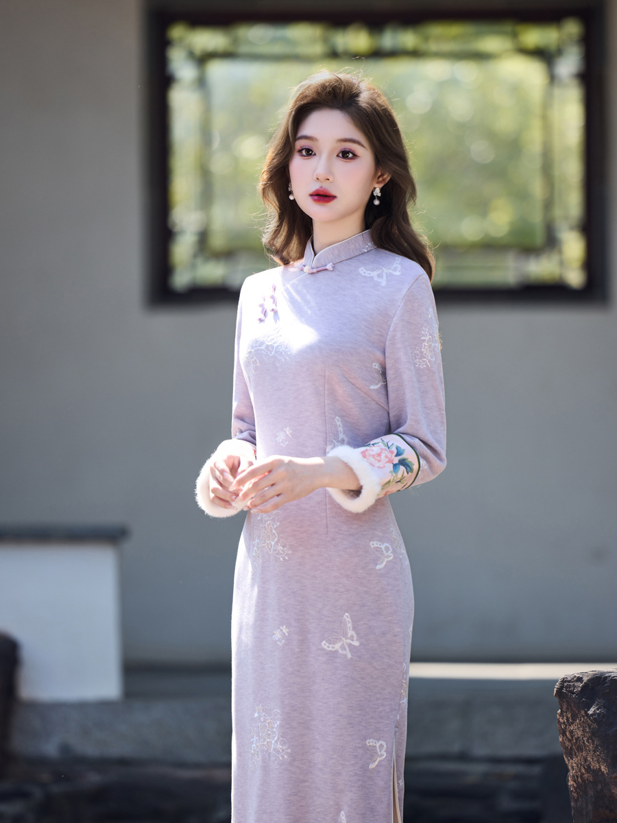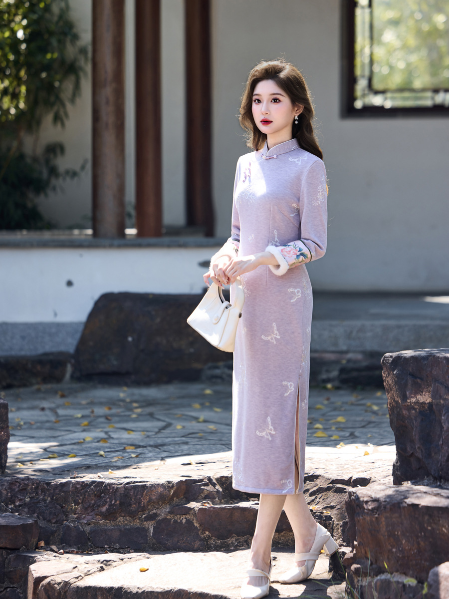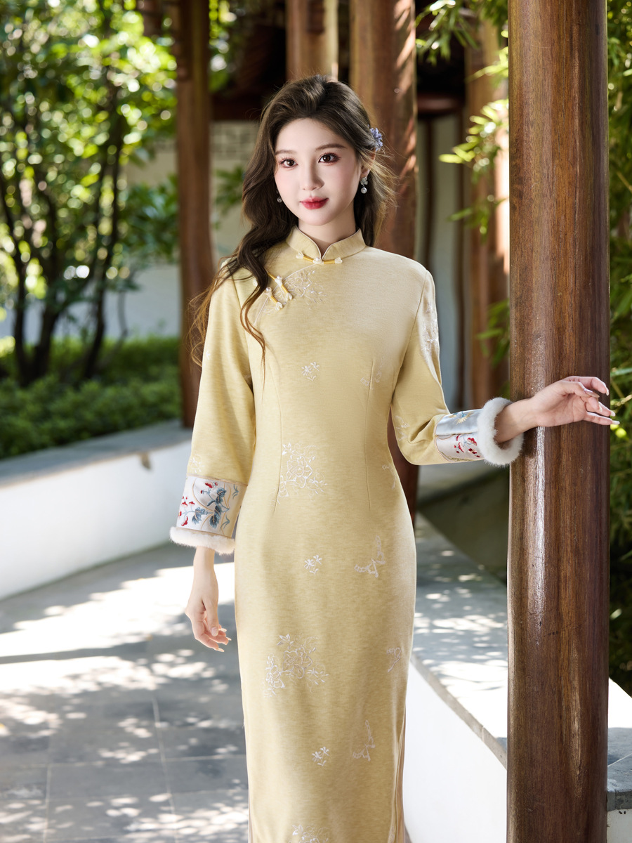 MYJ 气质加绒改良中式连衣裙旗袍日常 商品图0