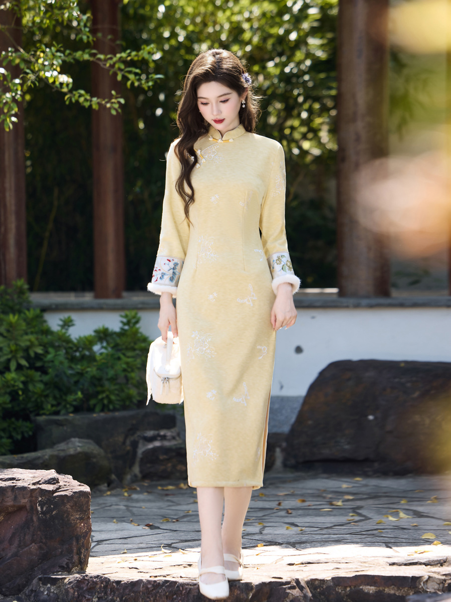 MYJ 气质加绒改良中式连衣裙旗袍日常