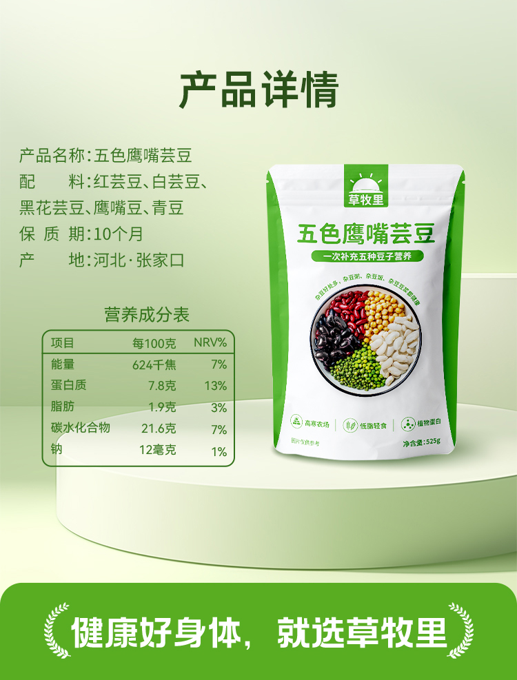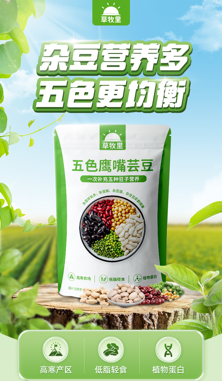 【供货】草牧里 五色鹰嘴芸豆 525g/袋 杂豆营养多五色更均衡