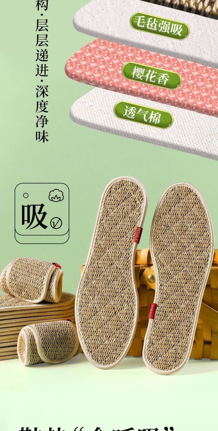 艾草防臭鞋垫 棉麻男女软底吸汗透气除臭留香汗脚鞋垫