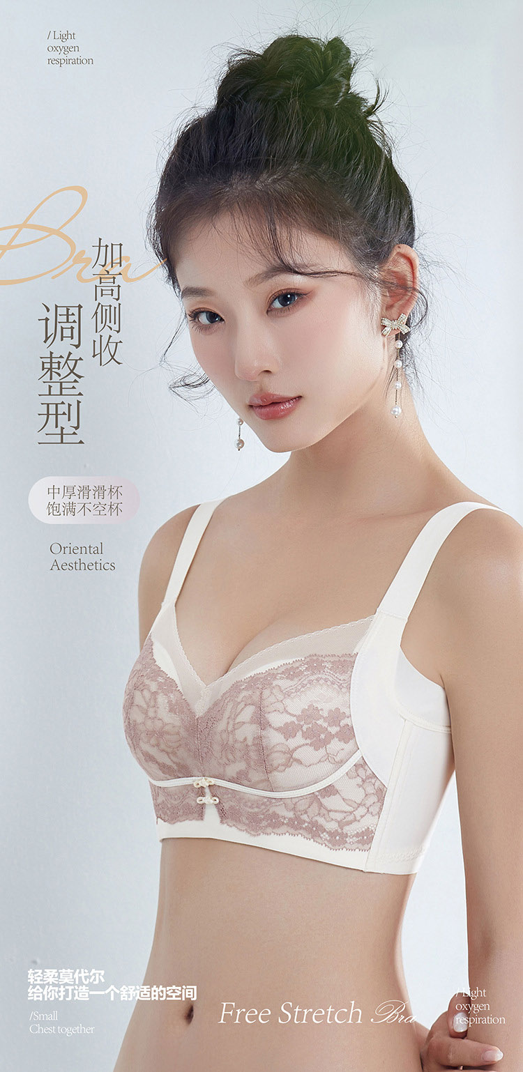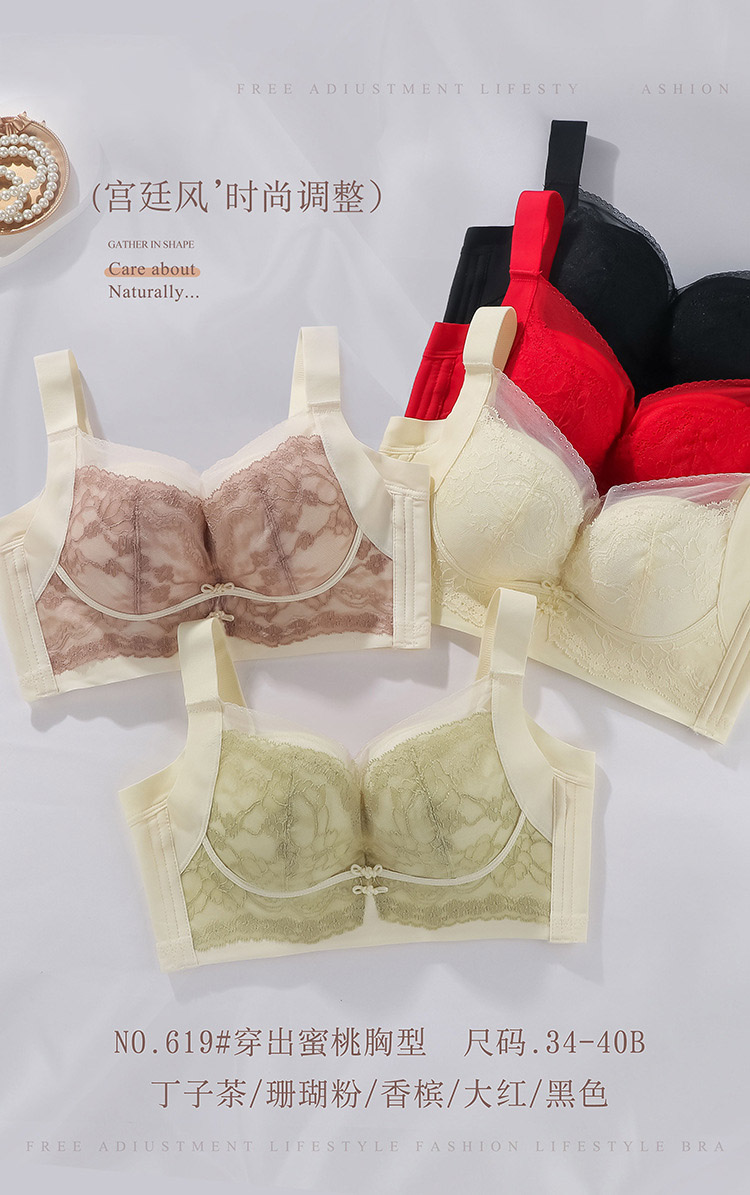 ZYQ-619 内衣小胸聚拢显大滑滑杯舒适性感蕾丝宫廷风大调整本命年文胸(单件)