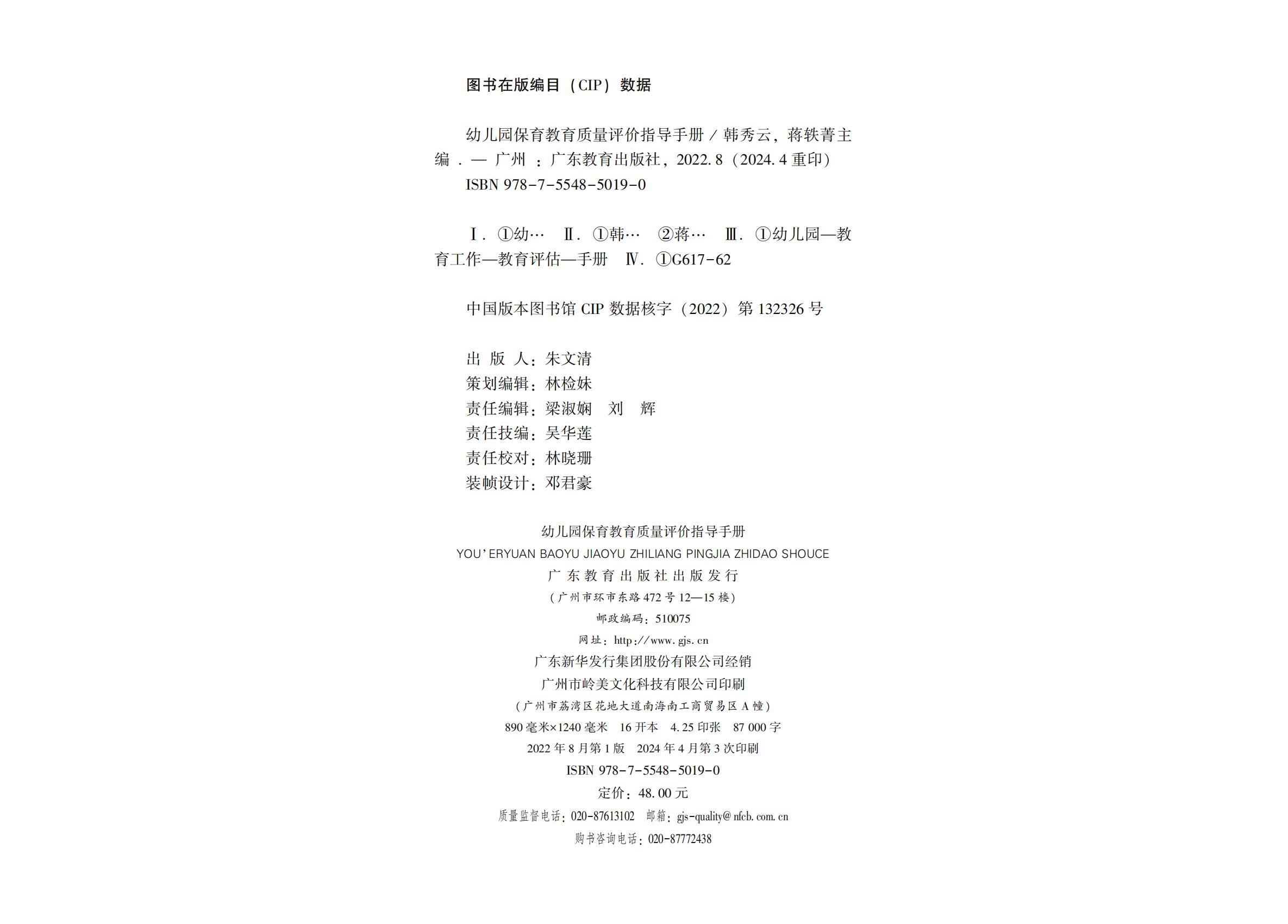 幼儿园保育教育质量评价指导手册9787554850190