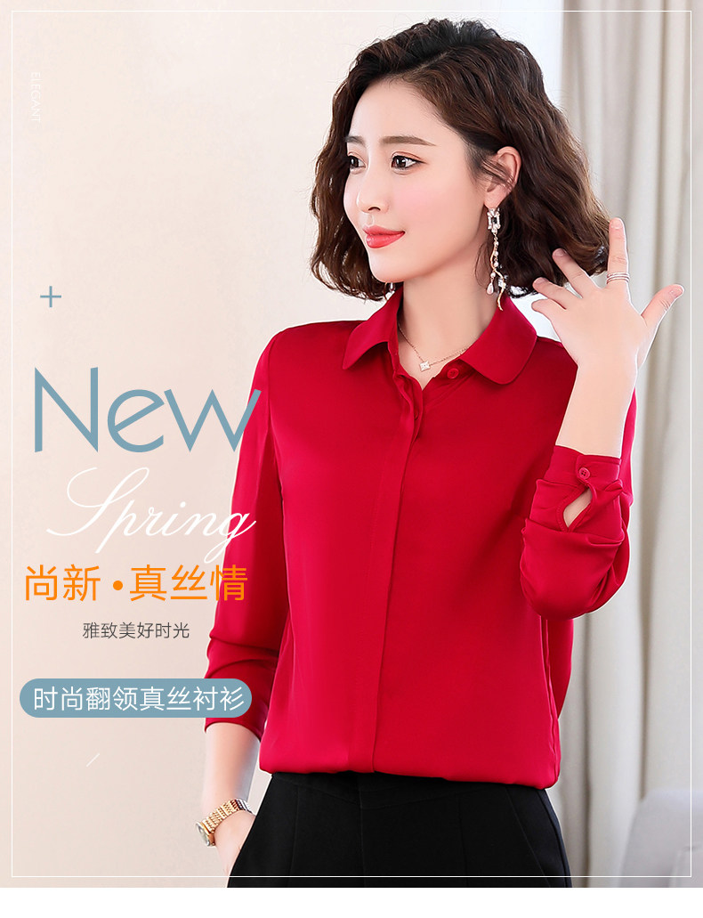 上海旗袍厂ASE-1908重磅真丝衬衫女长袖新款气质显瘦桑蚕丝上衣纯色春装衬衣