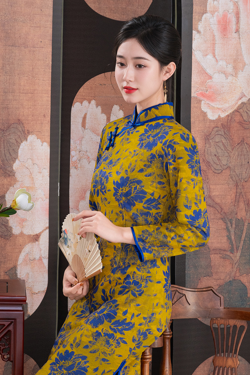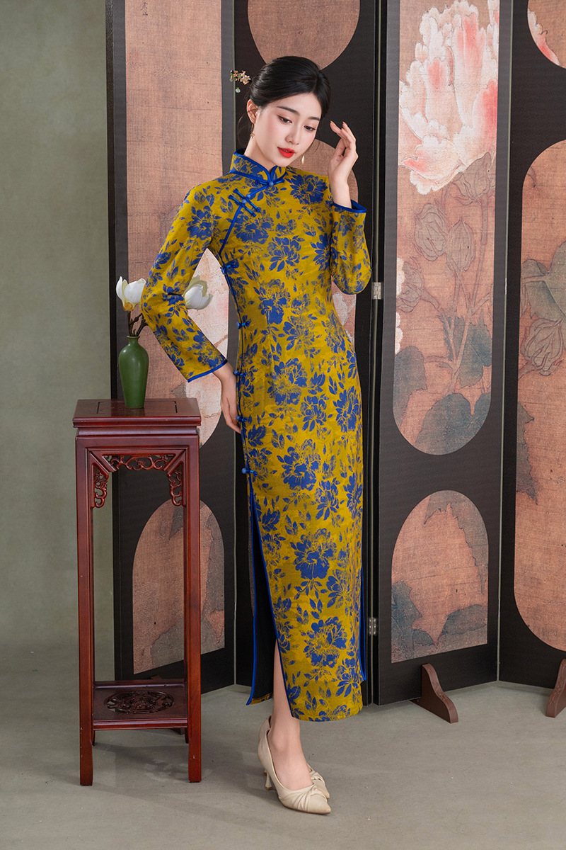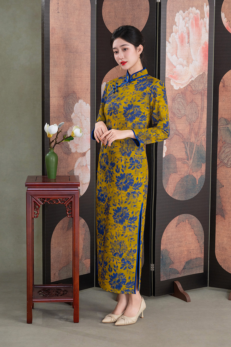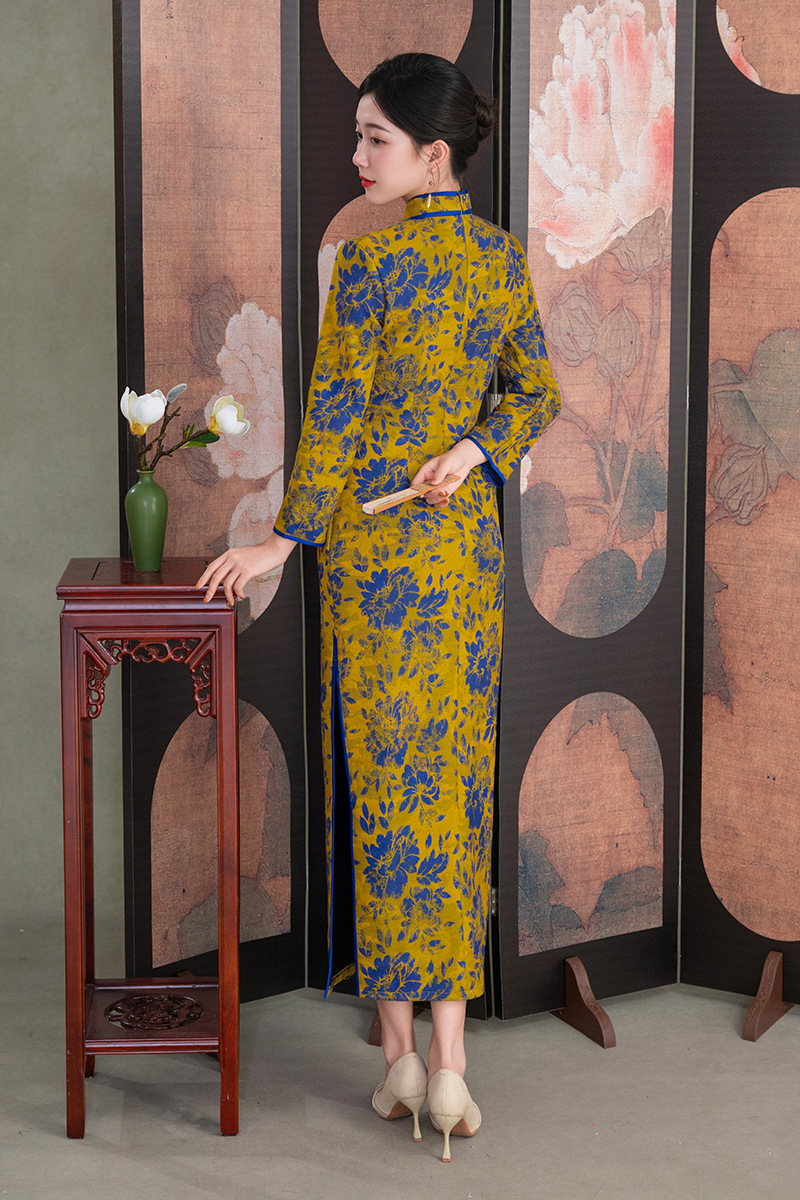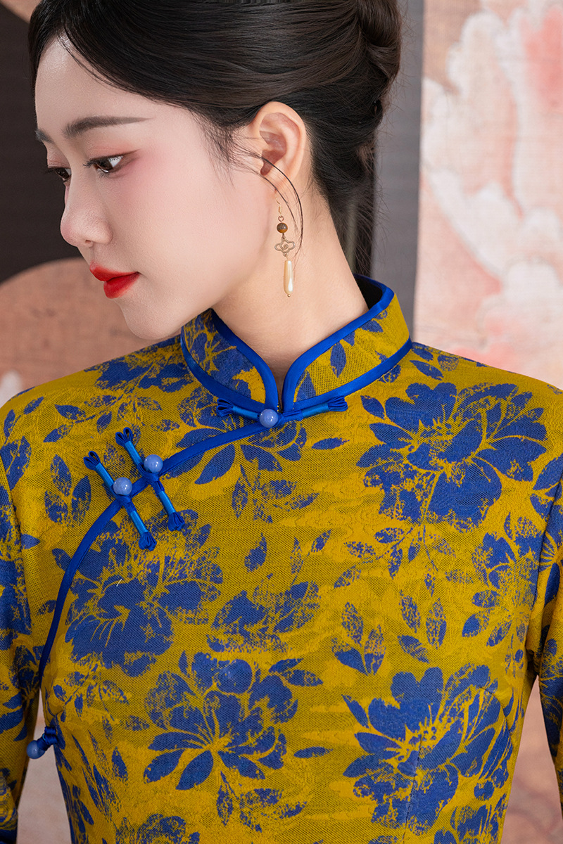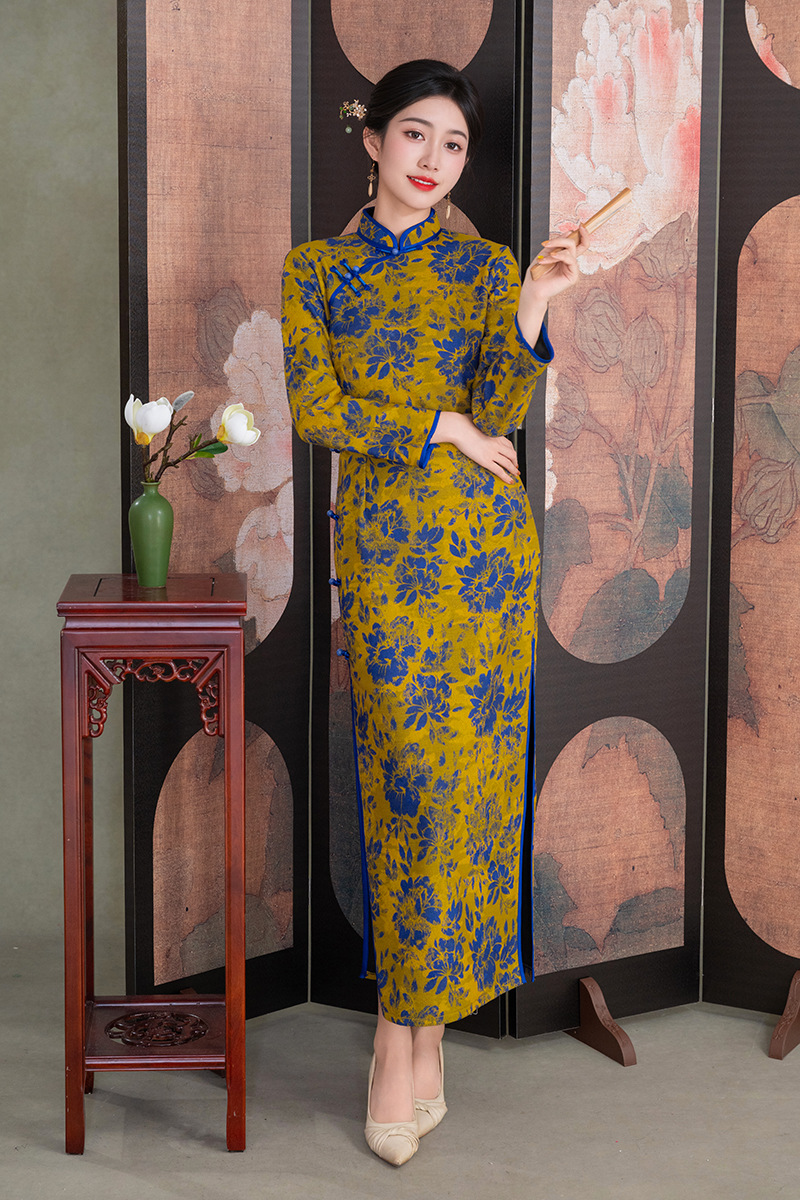 FR25341 冬季新款针织加绒旗袍新中式日常改良长款长袖国风旗袍日常连衣裙