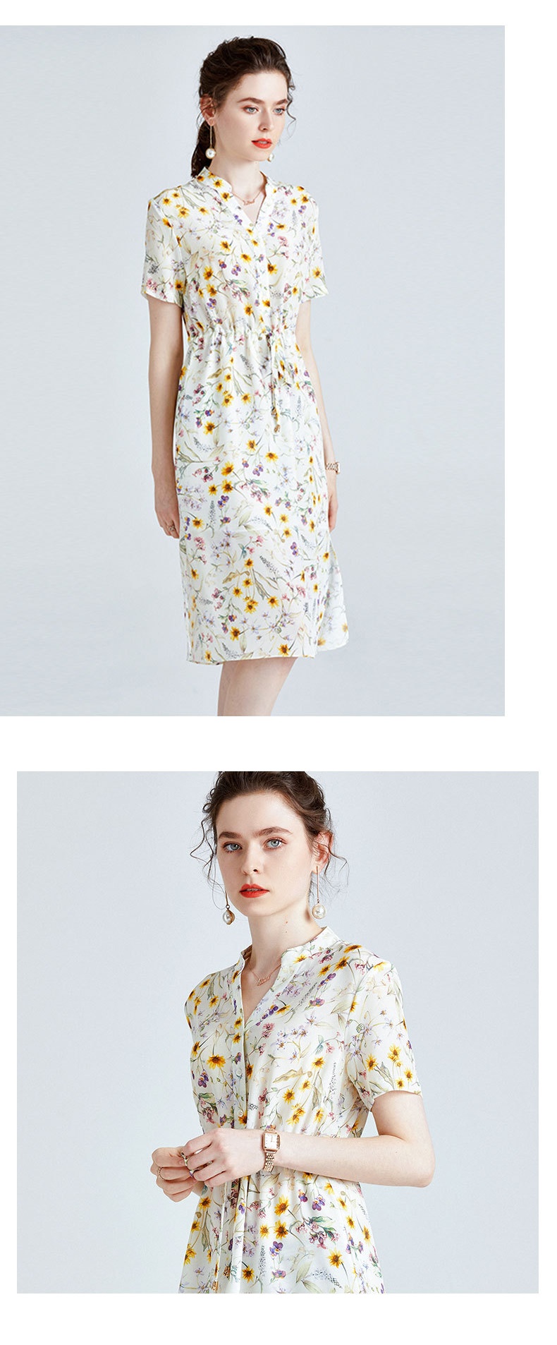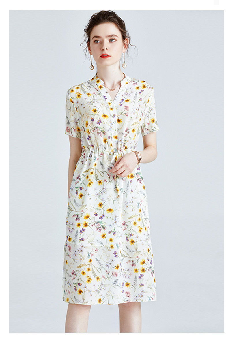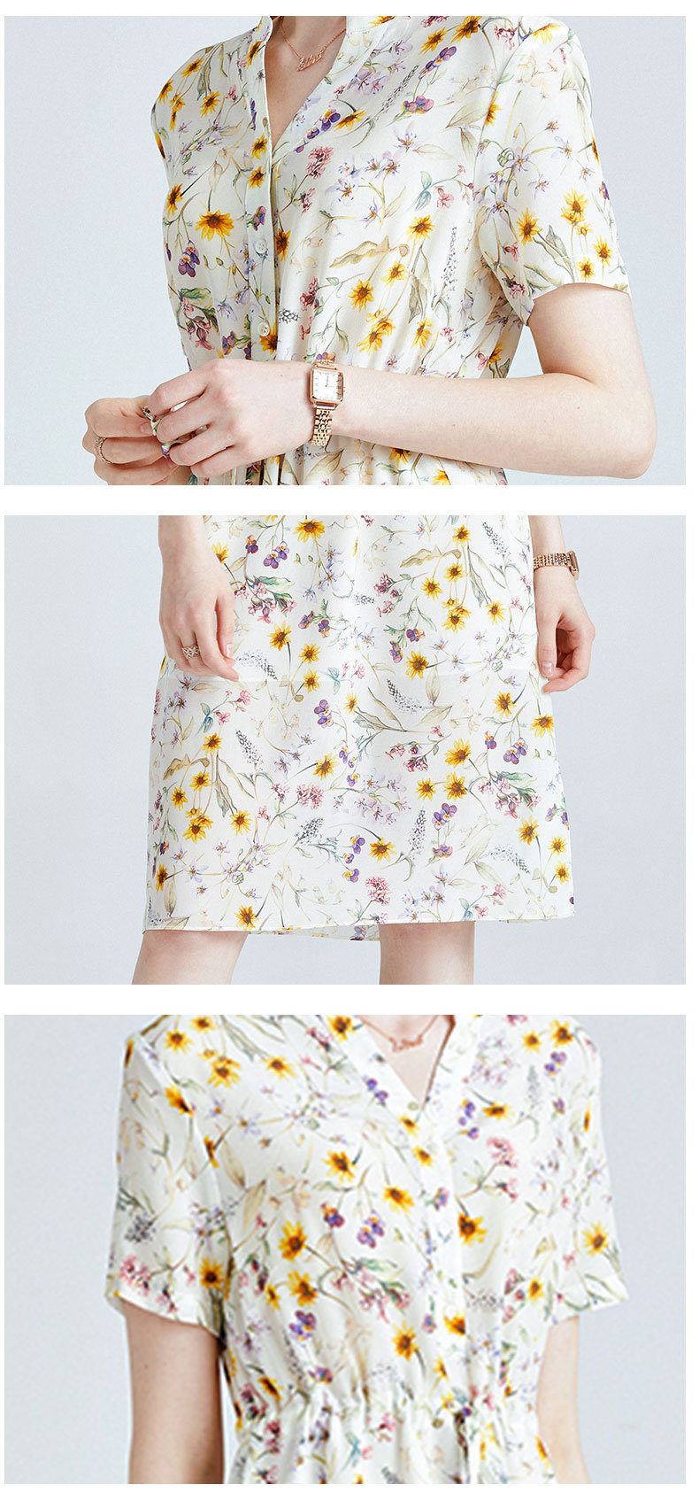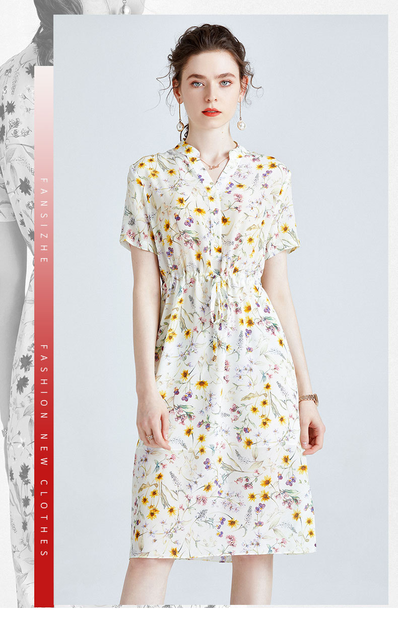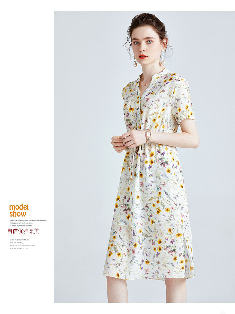 「高货kbnq」全新升级【铂金会员413/天猫559/差价146】(01844)洛诗琳真丝印花连衣裙2025夏季气质收腰开叉碎花A字裙