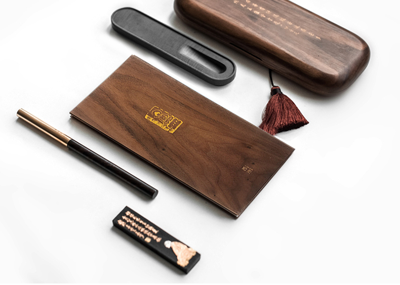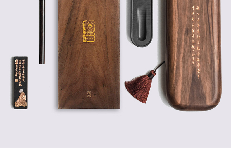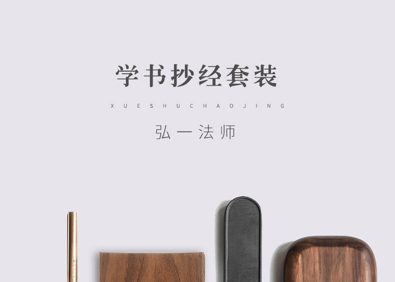 茶密甄选·弘一法师胡桃木手抄心经笔墨纸砚套装