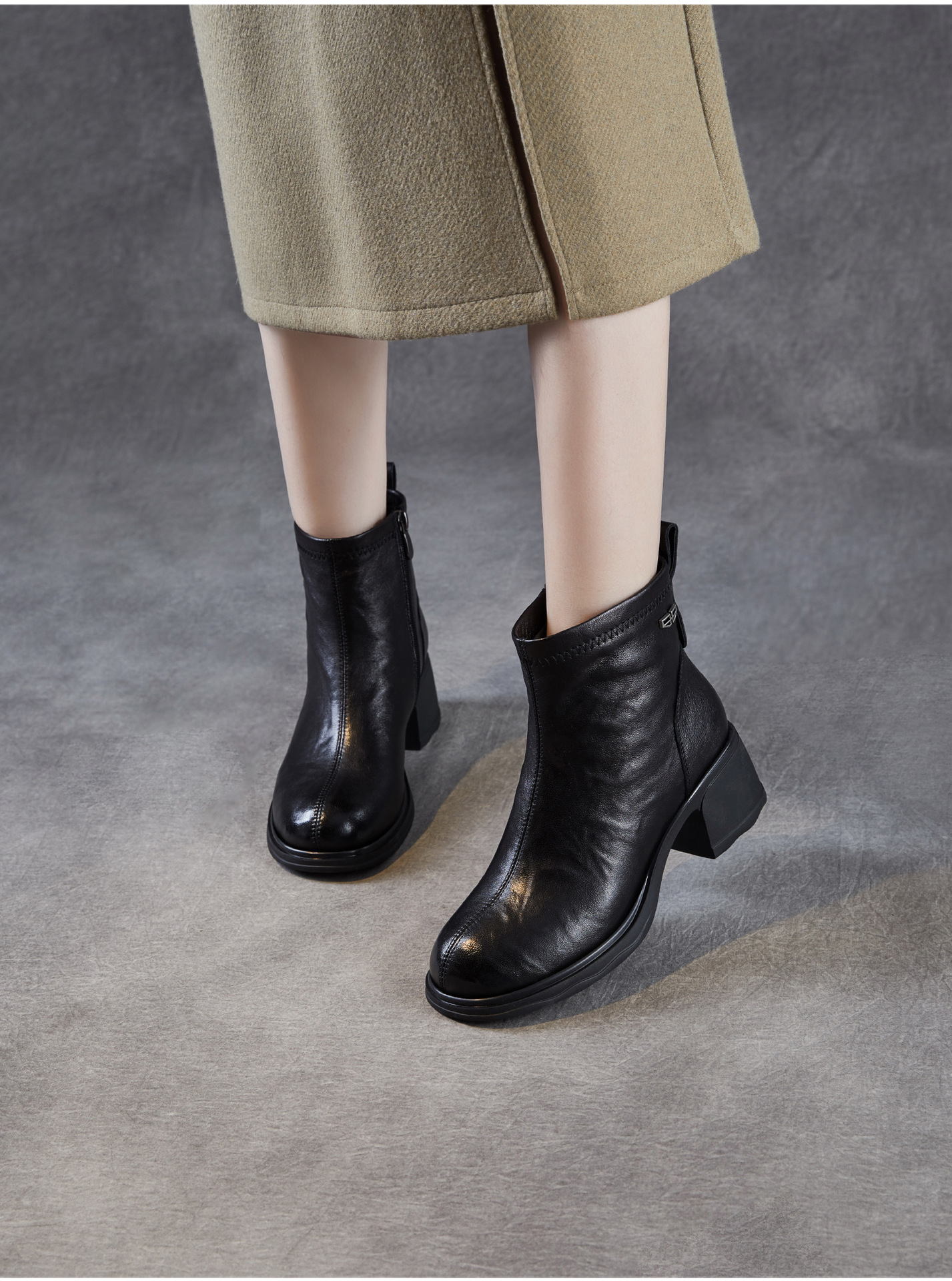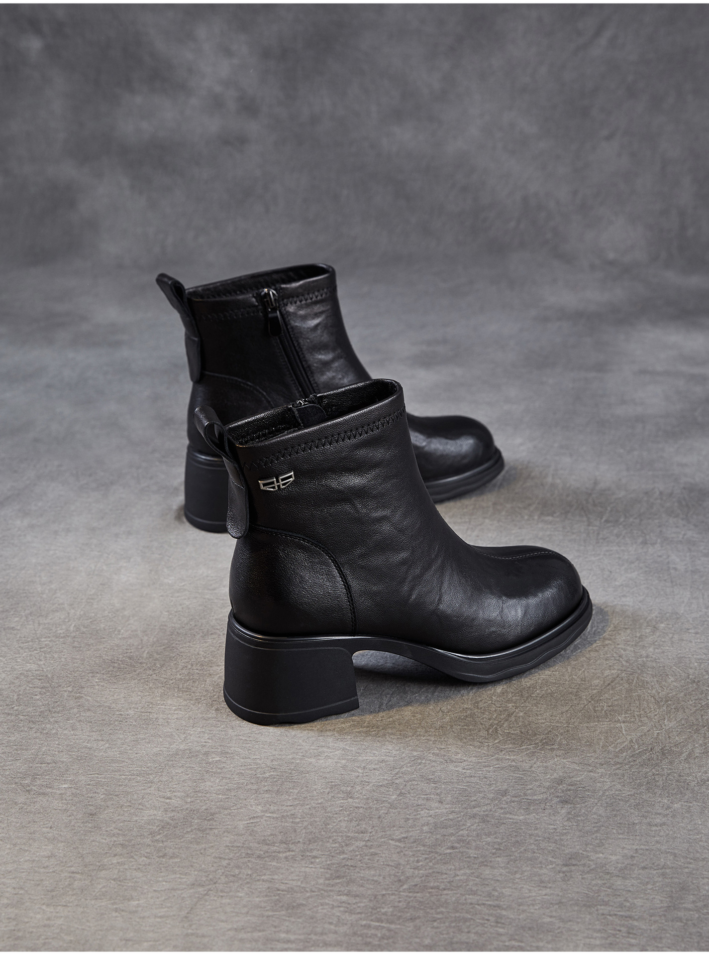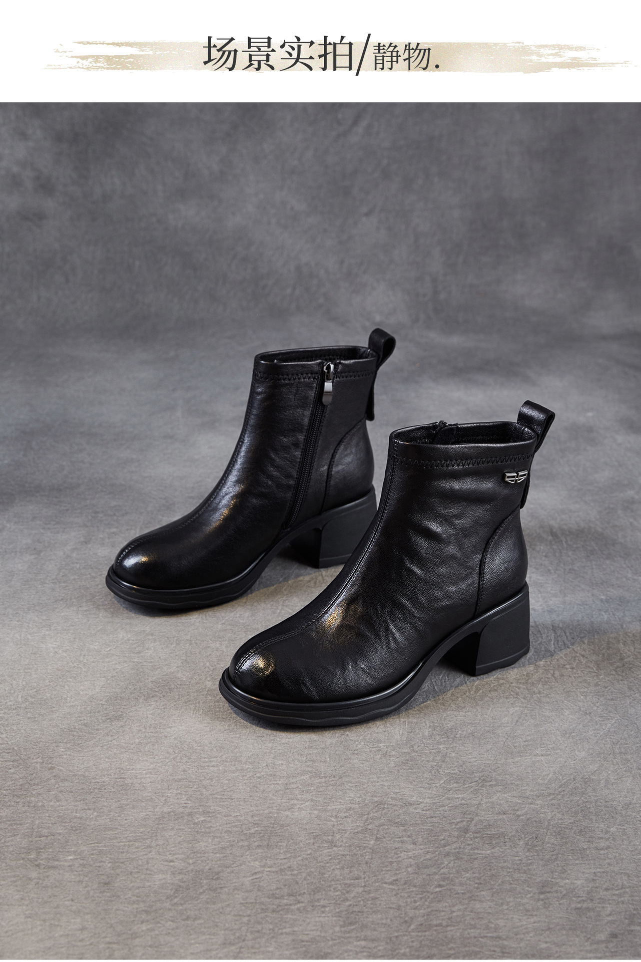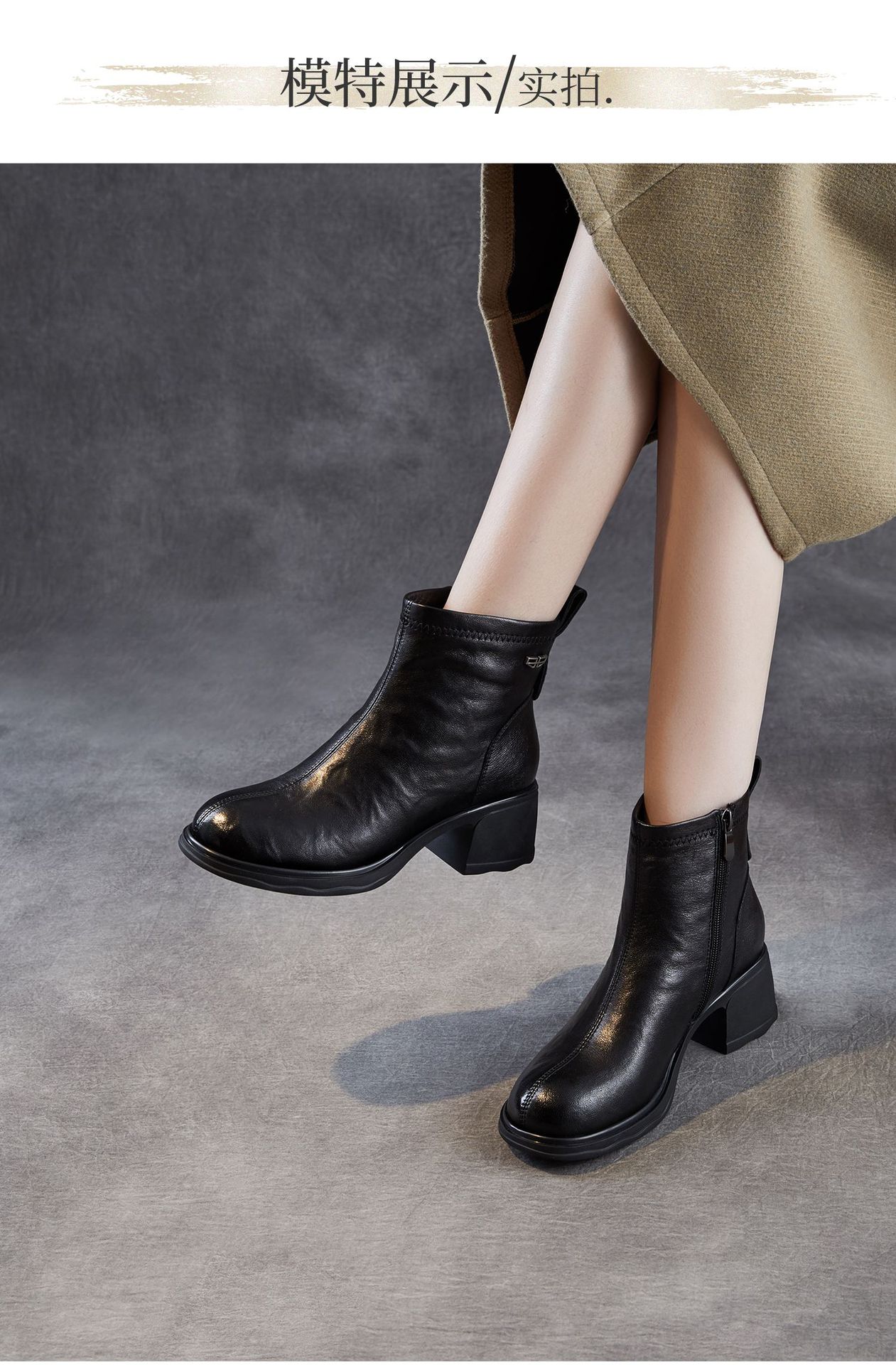 ZM 258683马丁靴复古厚底粗跟法式短靴 商品图4