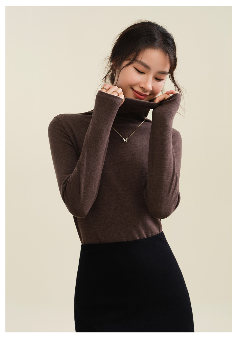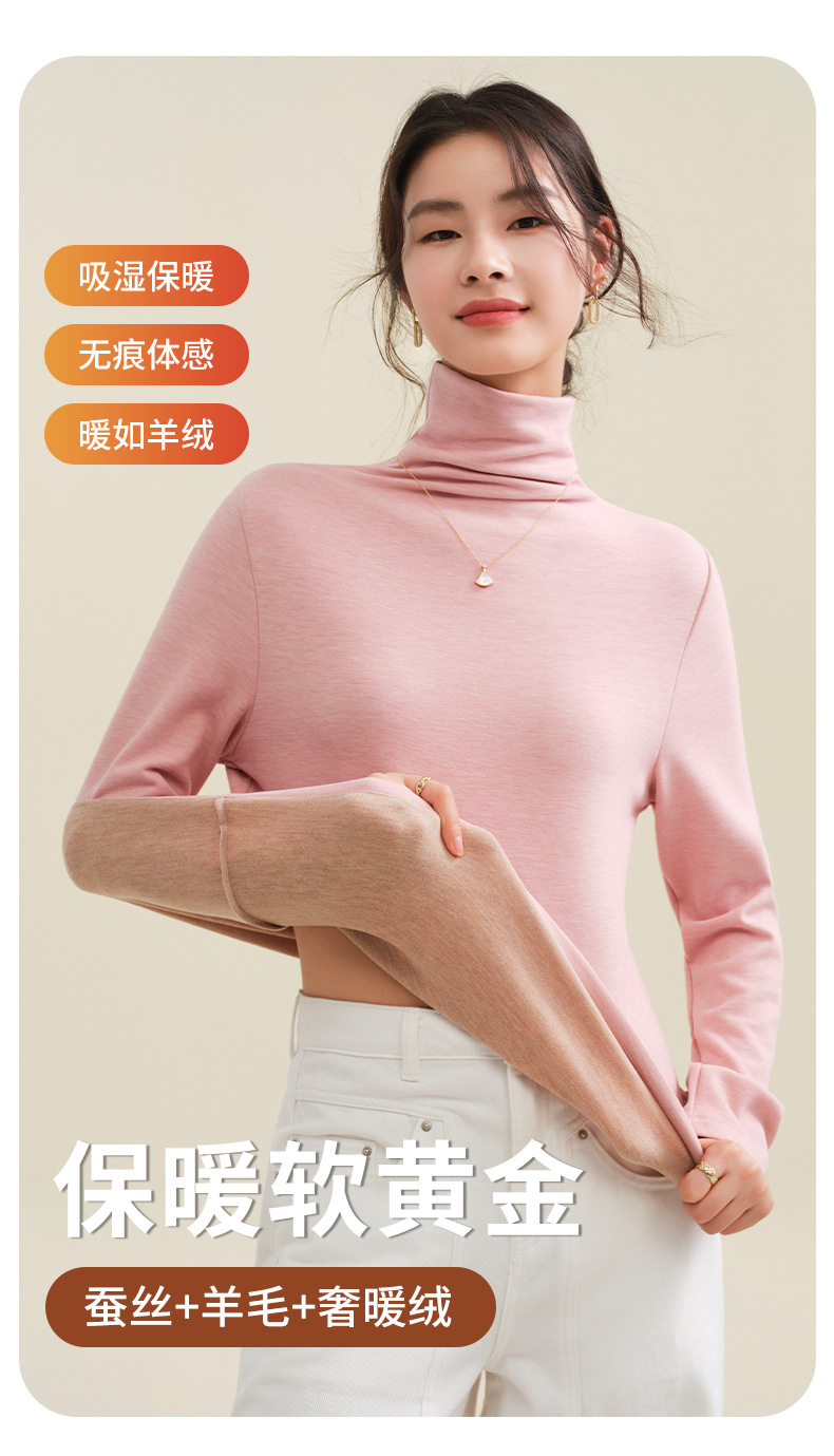 雀说 蚕丝羊毛高领打底衫内搭保暖加厚长袖T恤DRS4114 商品图4