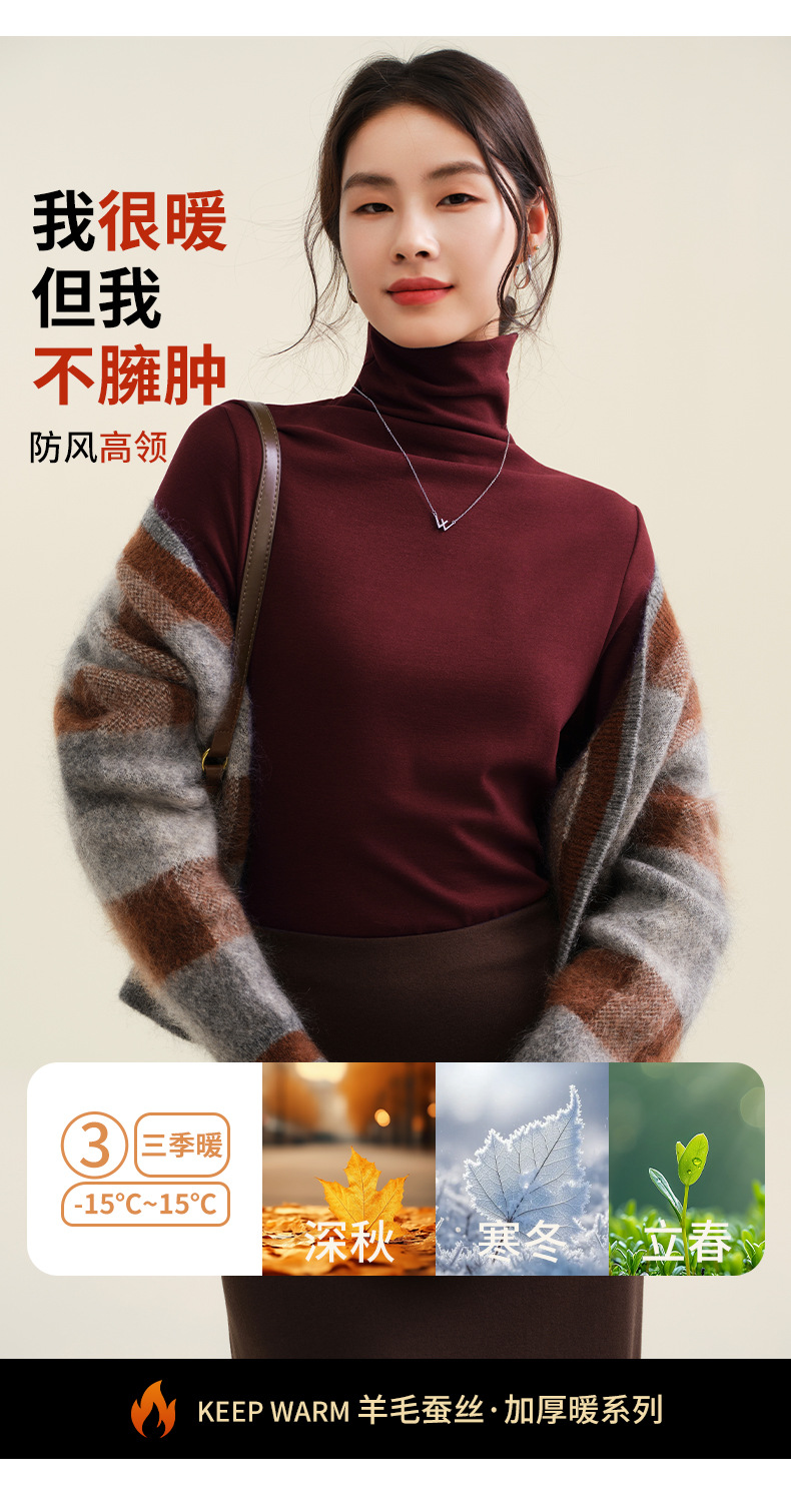 雀说 蚕丝羊毛高领打底衫内搭保暖加厚长袖T恤DRS4114 商品图3
