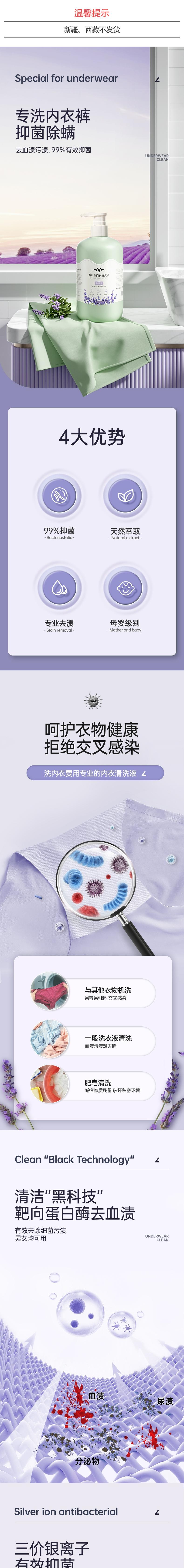 海肌兰 内衣清洗液520ml薰衣草泵头款*1+80ml*1 6975415470202