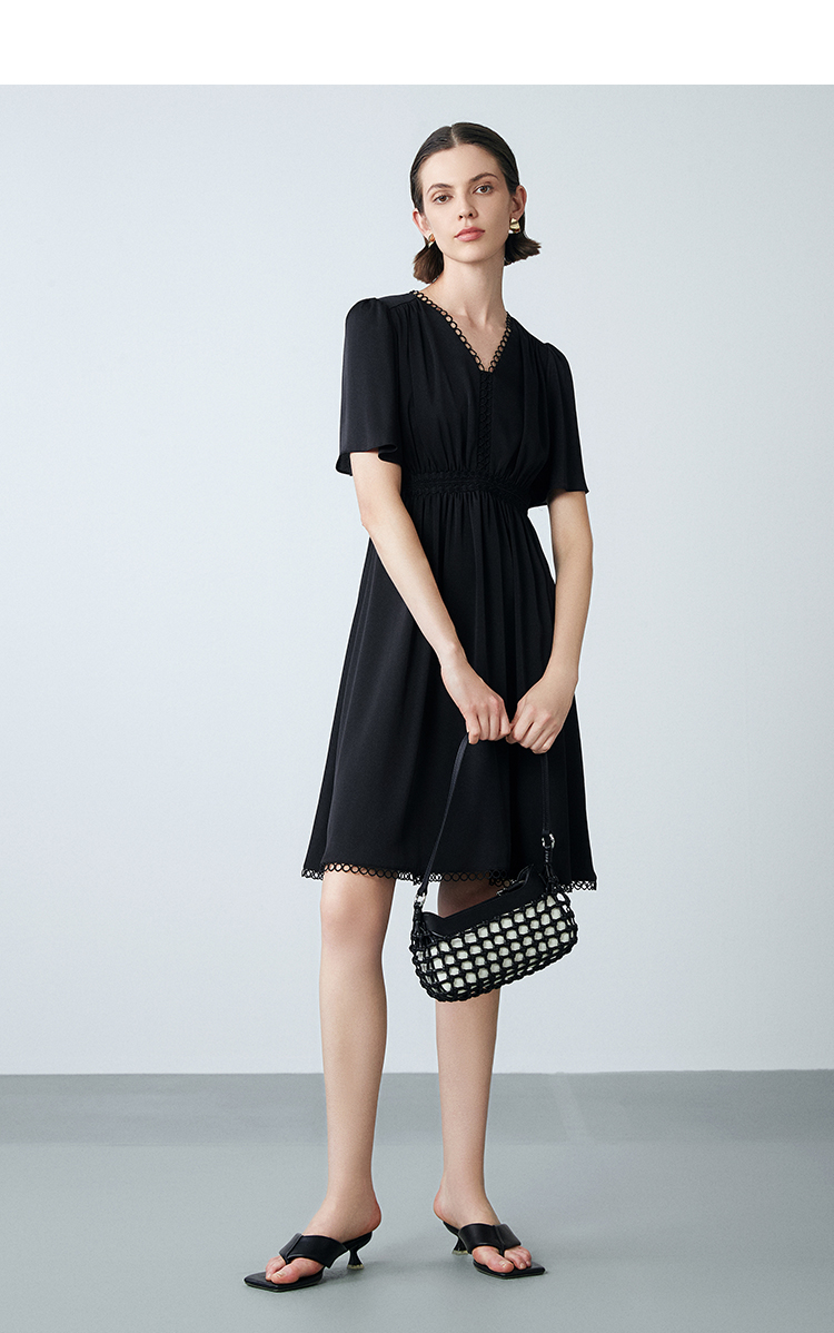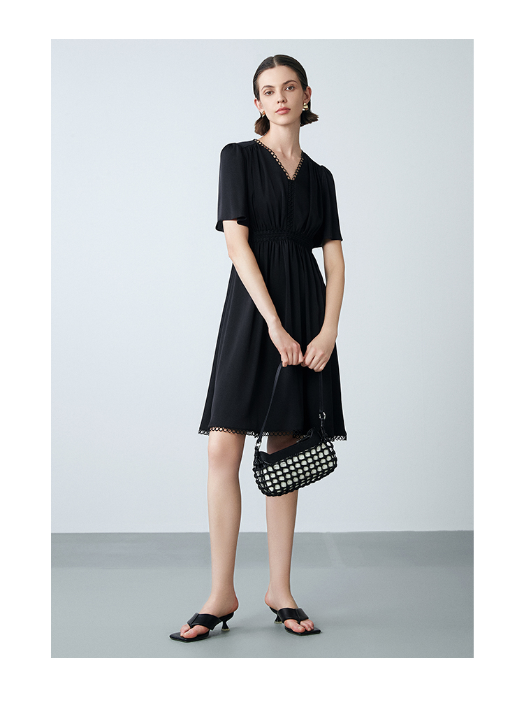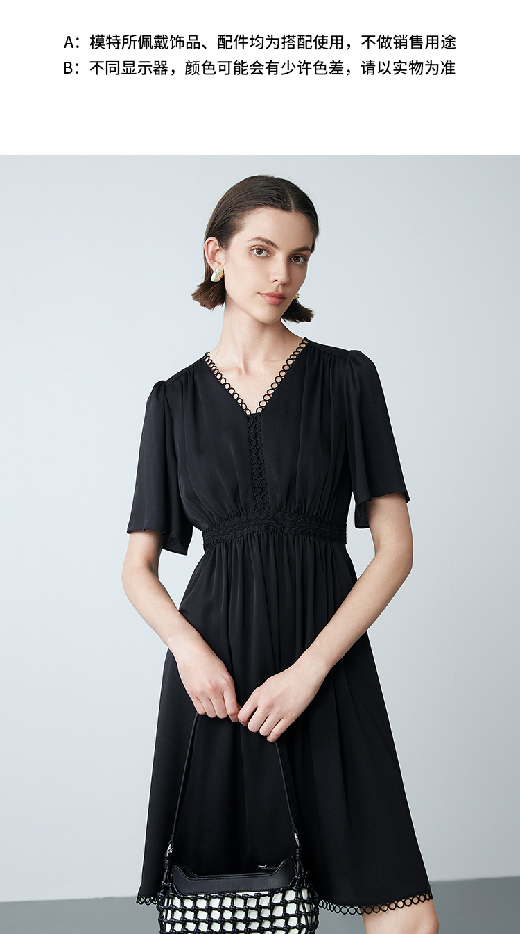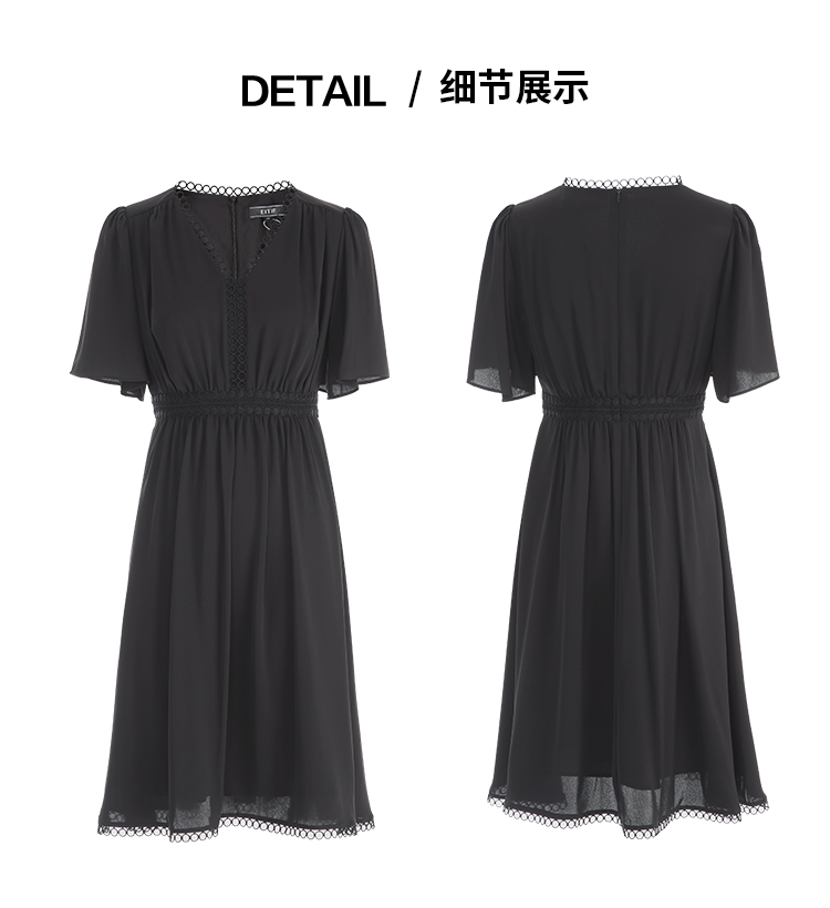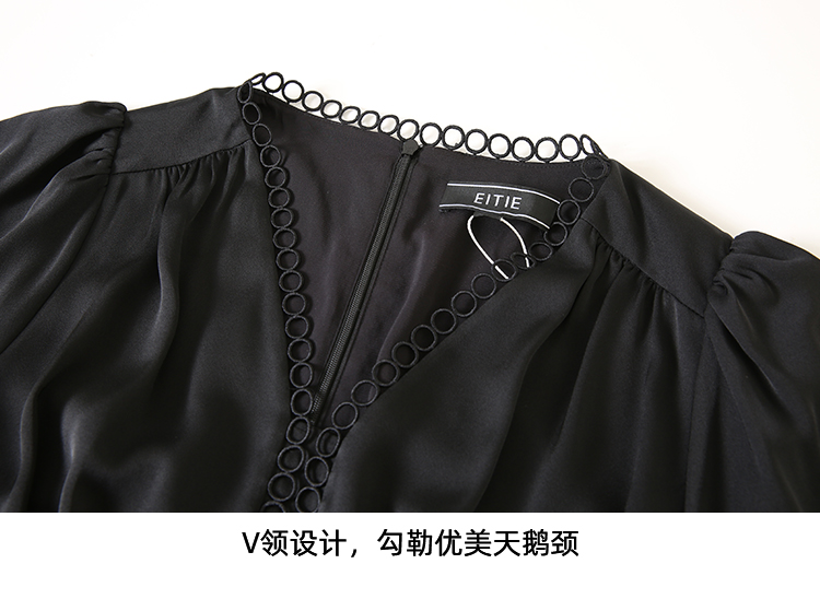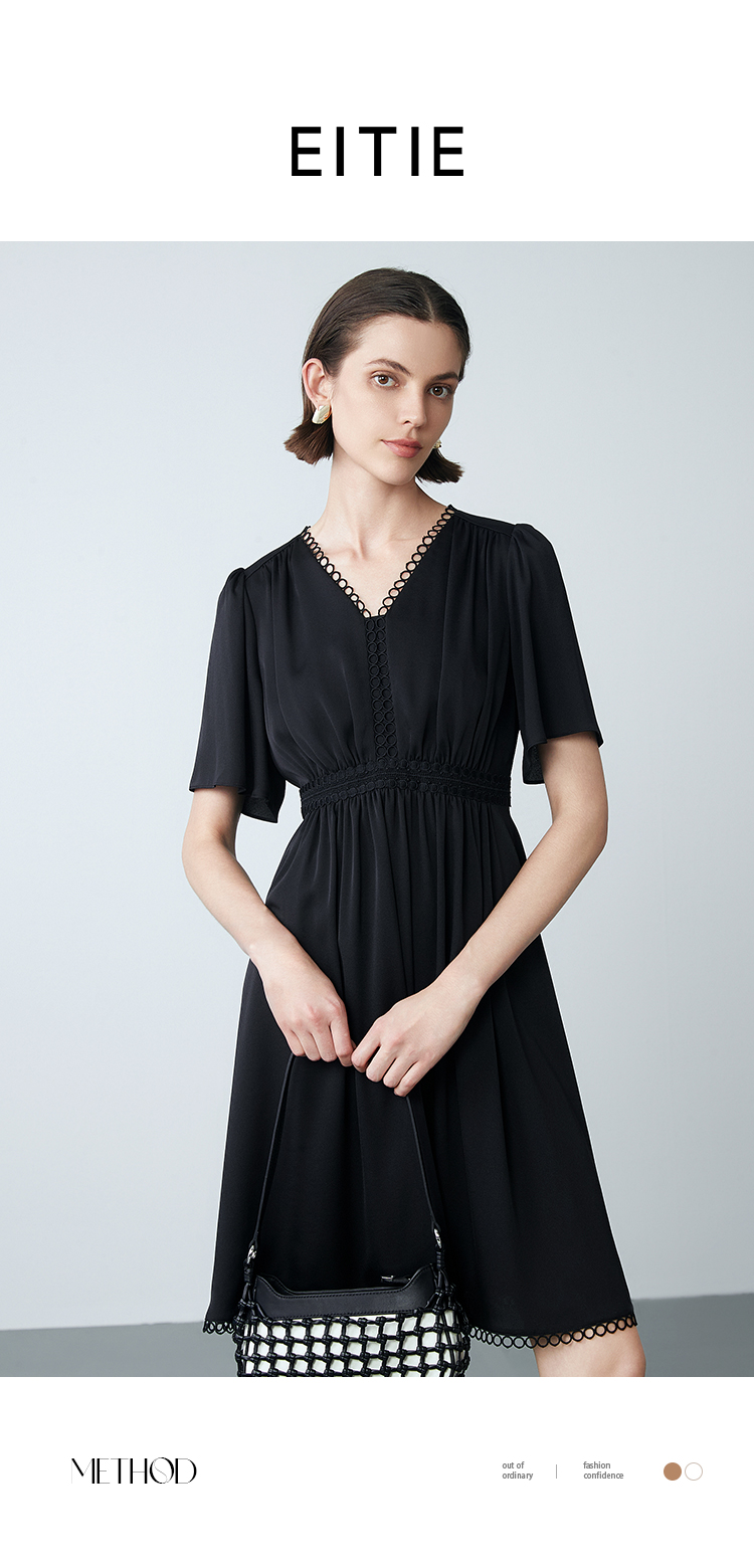 EITIE爱特爱夏季新款法式V领优雅气质收腰显瘦连衣裙7807553