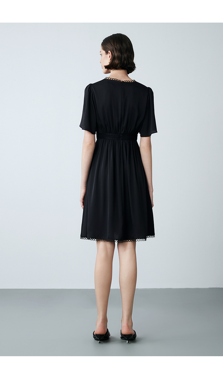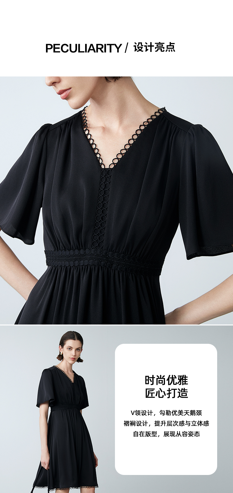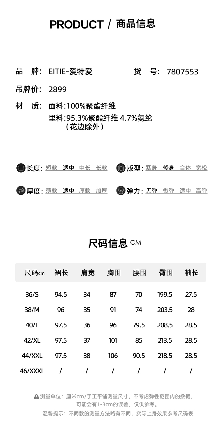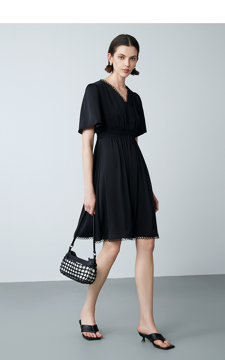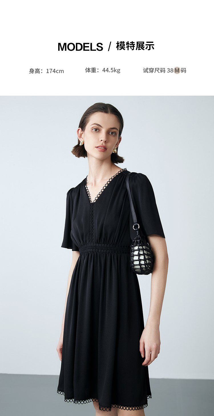 EITIE爱特爱夏季新款法式V领优雅气质收腰显瘦连衣裙7807553