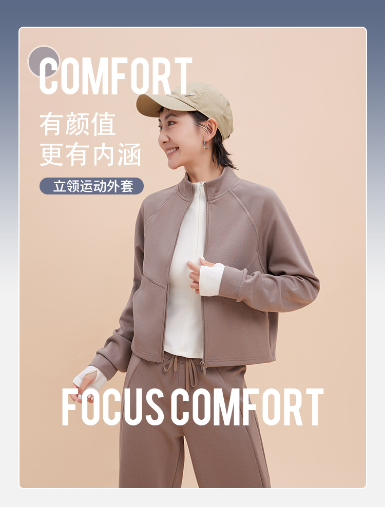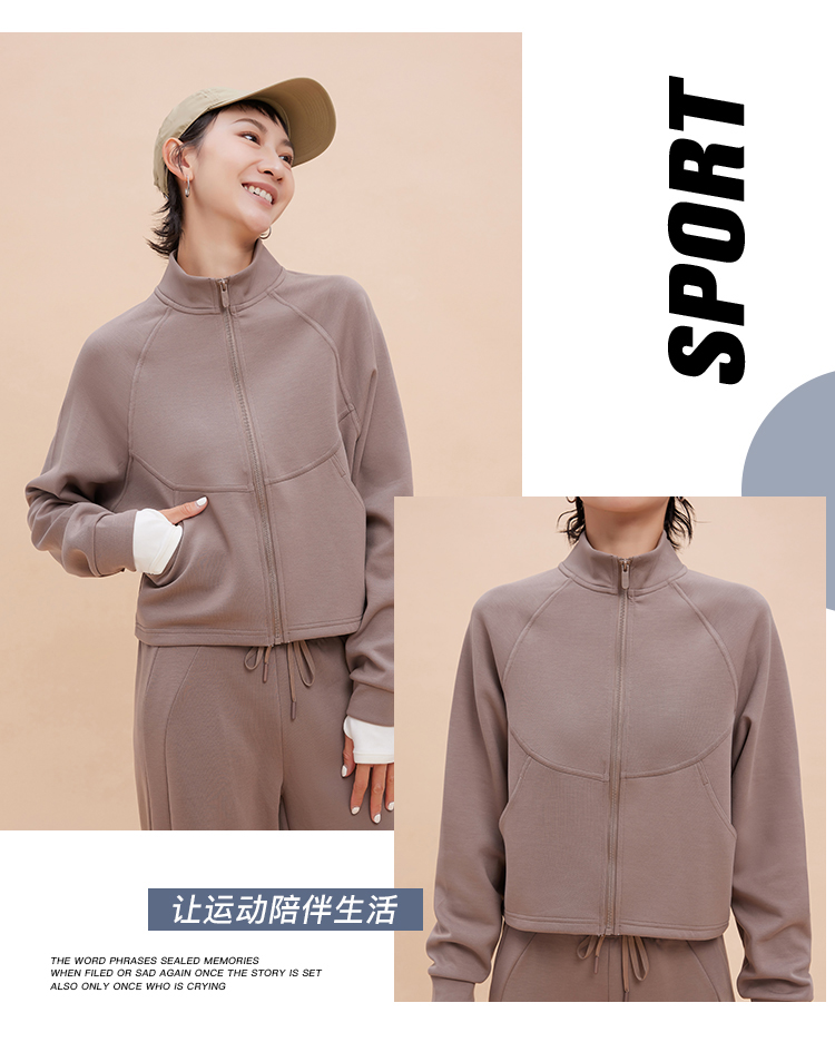跃牌【轻匀系列】2025秋冬立领运动外套长袖修身百搭显瘦健身服大口袋宽松休闲上衣WT42014