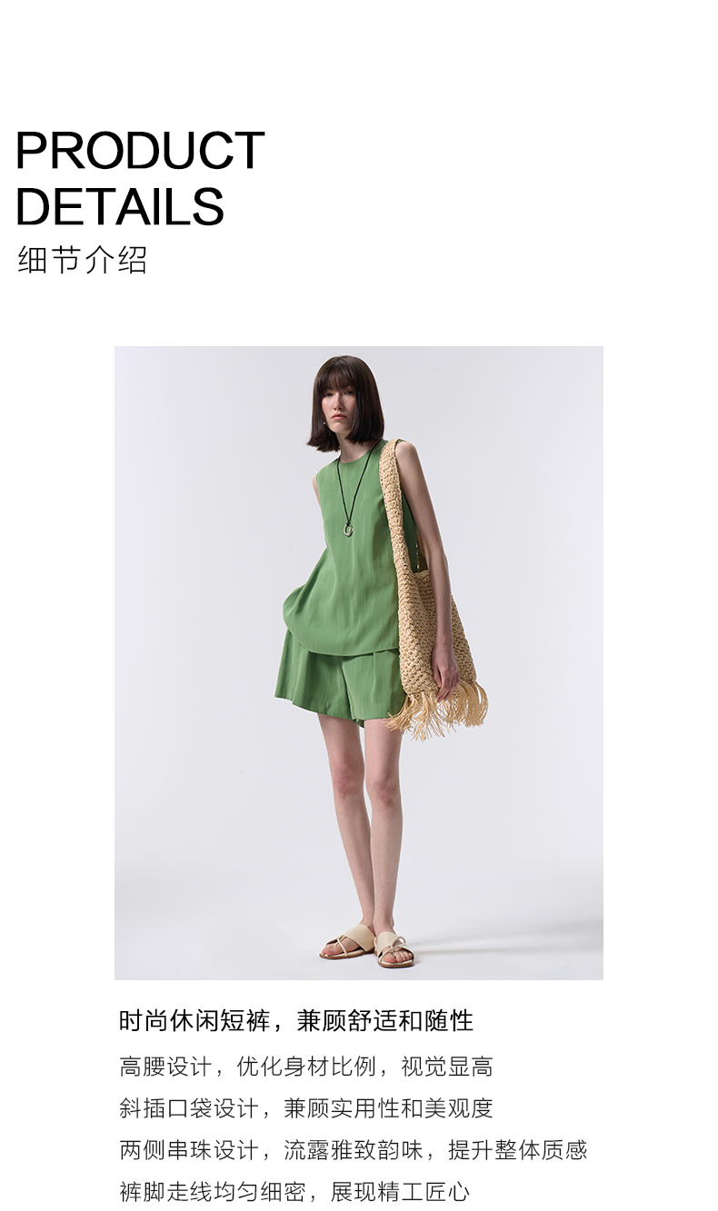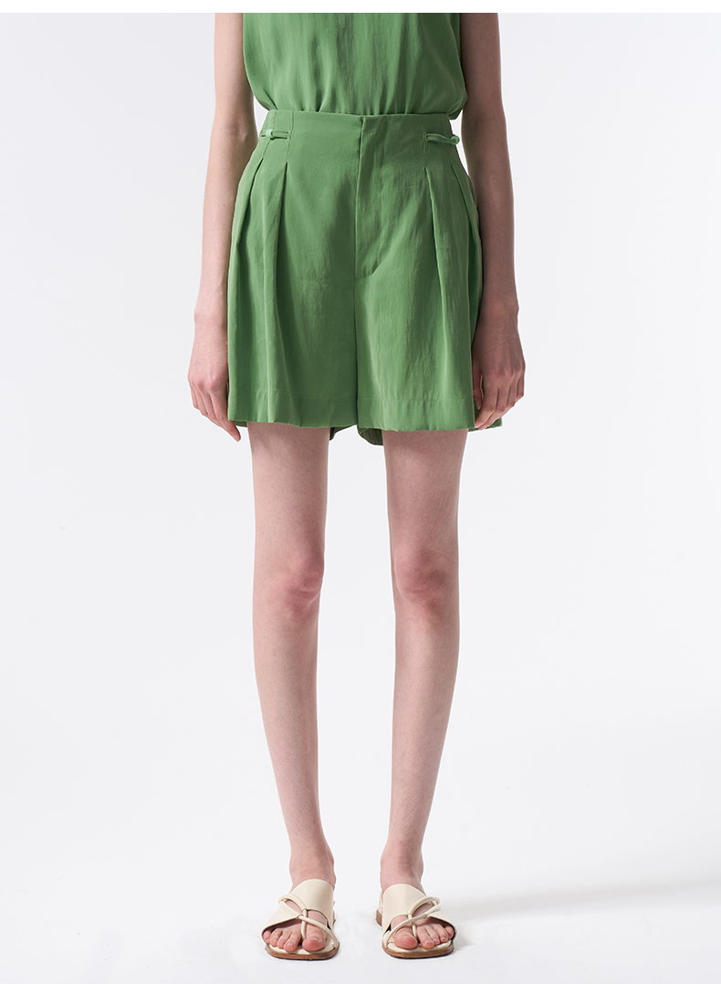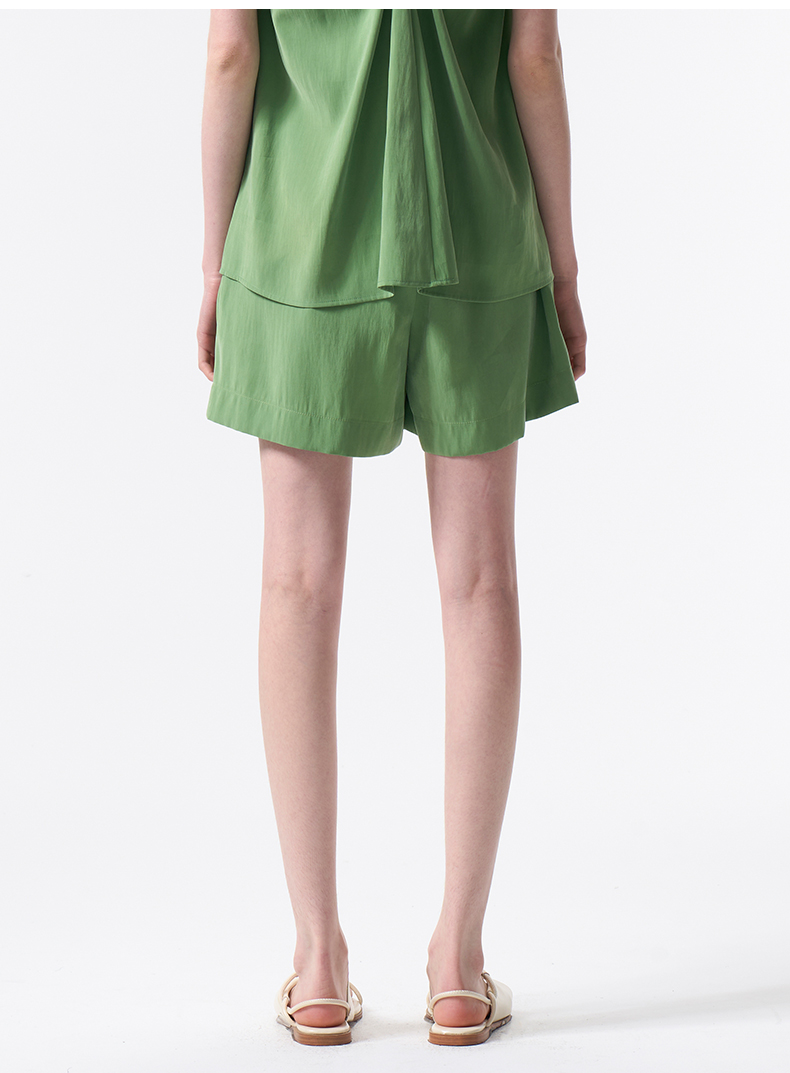 VIMAGE纬漫纪莫代尔舒适休闲百搭显瘦直筒简约森林绿短裤2026夏季新款V2505220