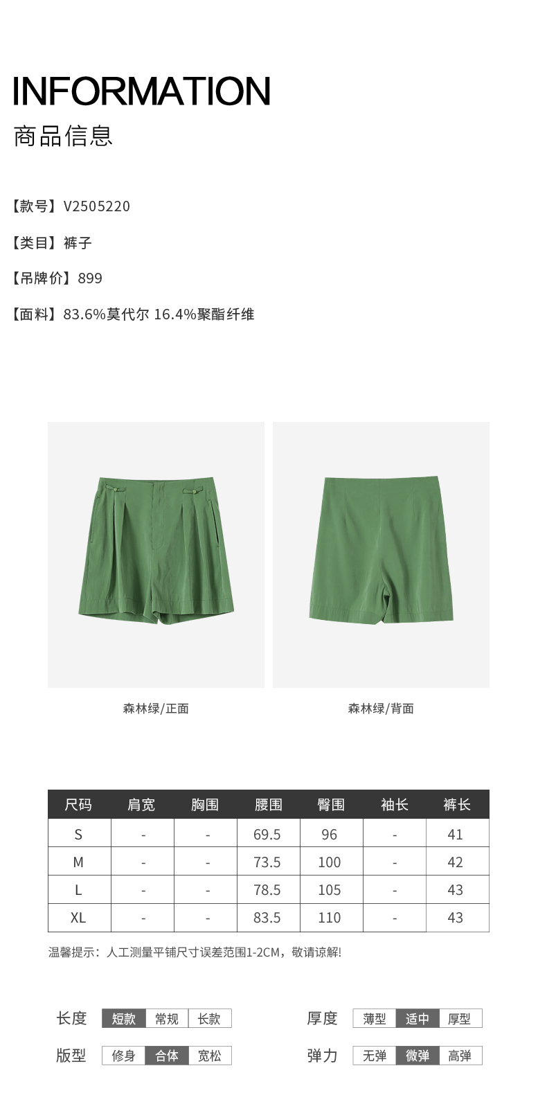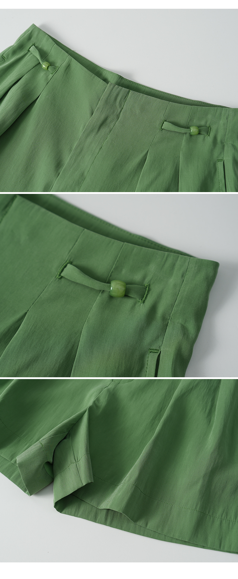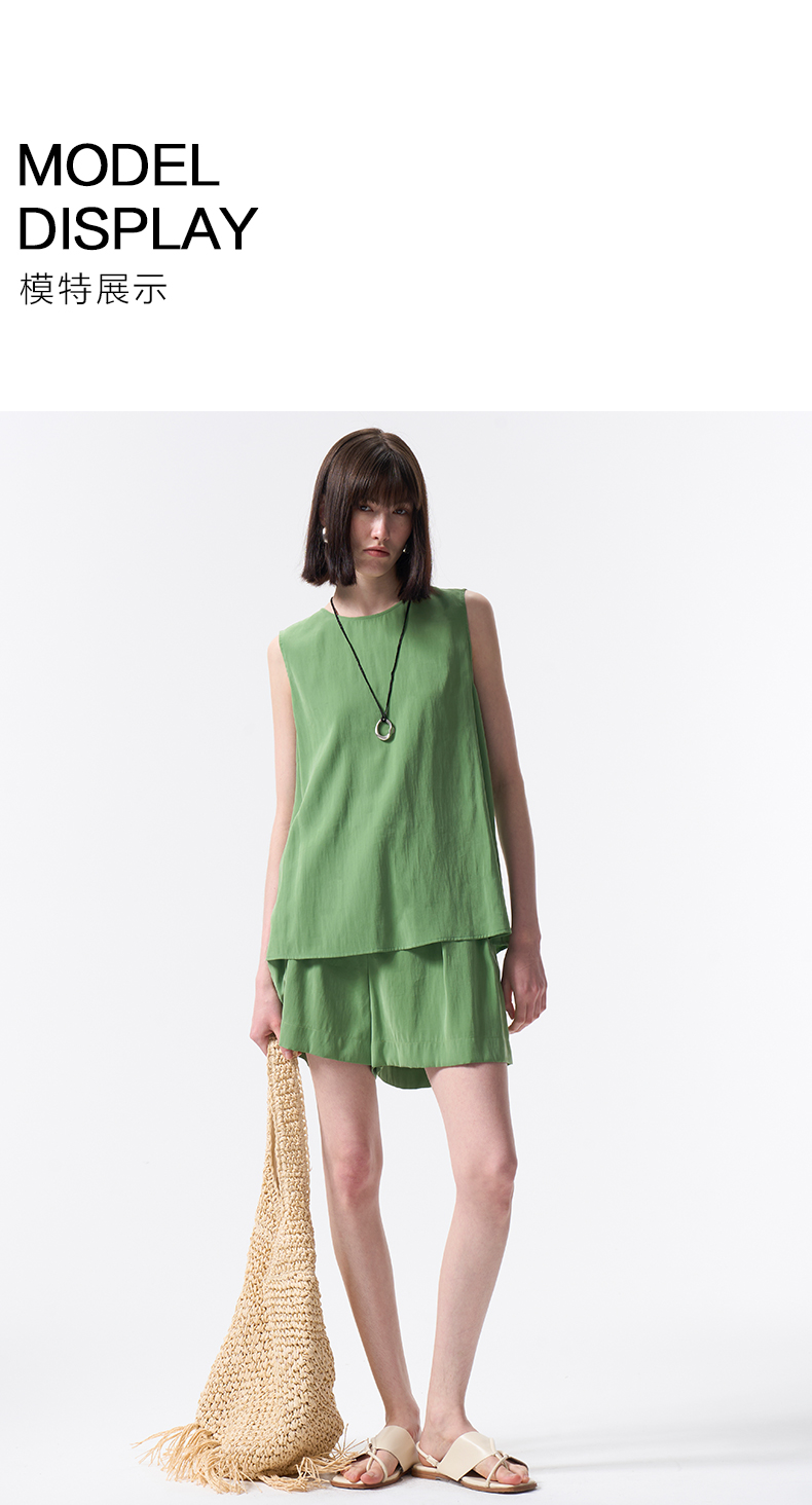 VIMAGE纬漫纪莫代尔舒适休闲百搭显瘦直筒简约森林绿短裤2026夏季新款V2505220