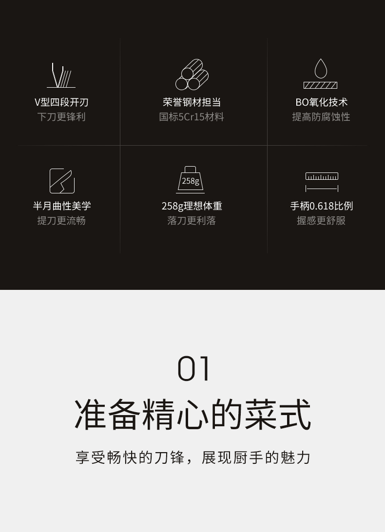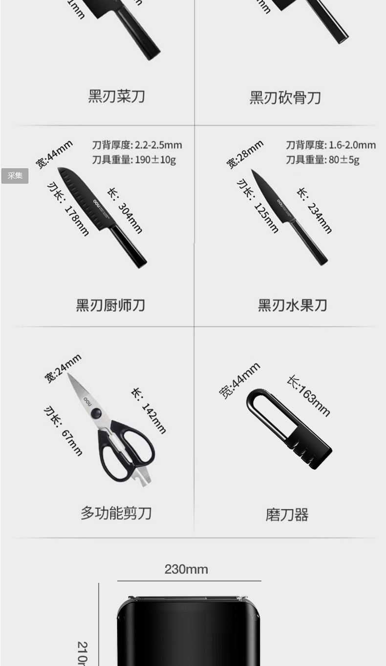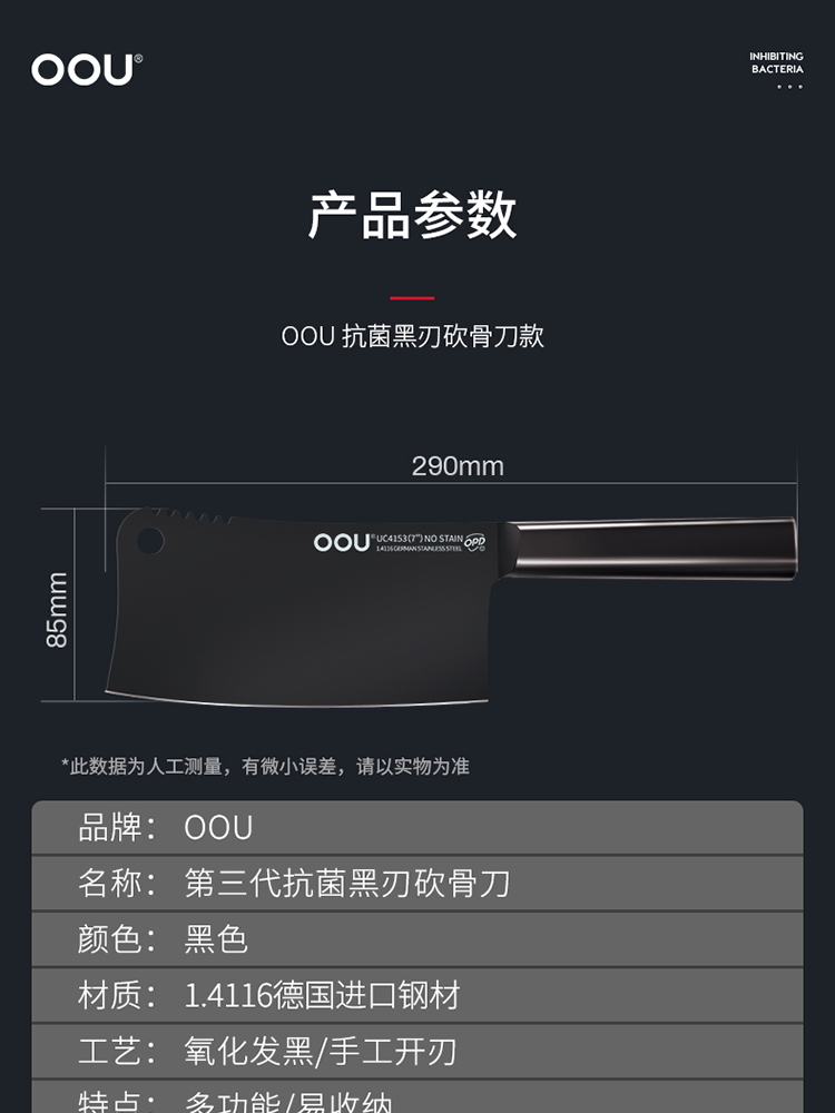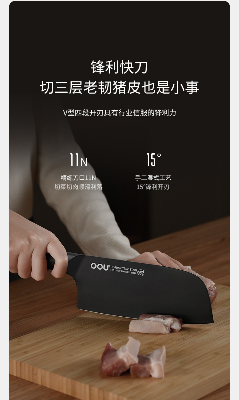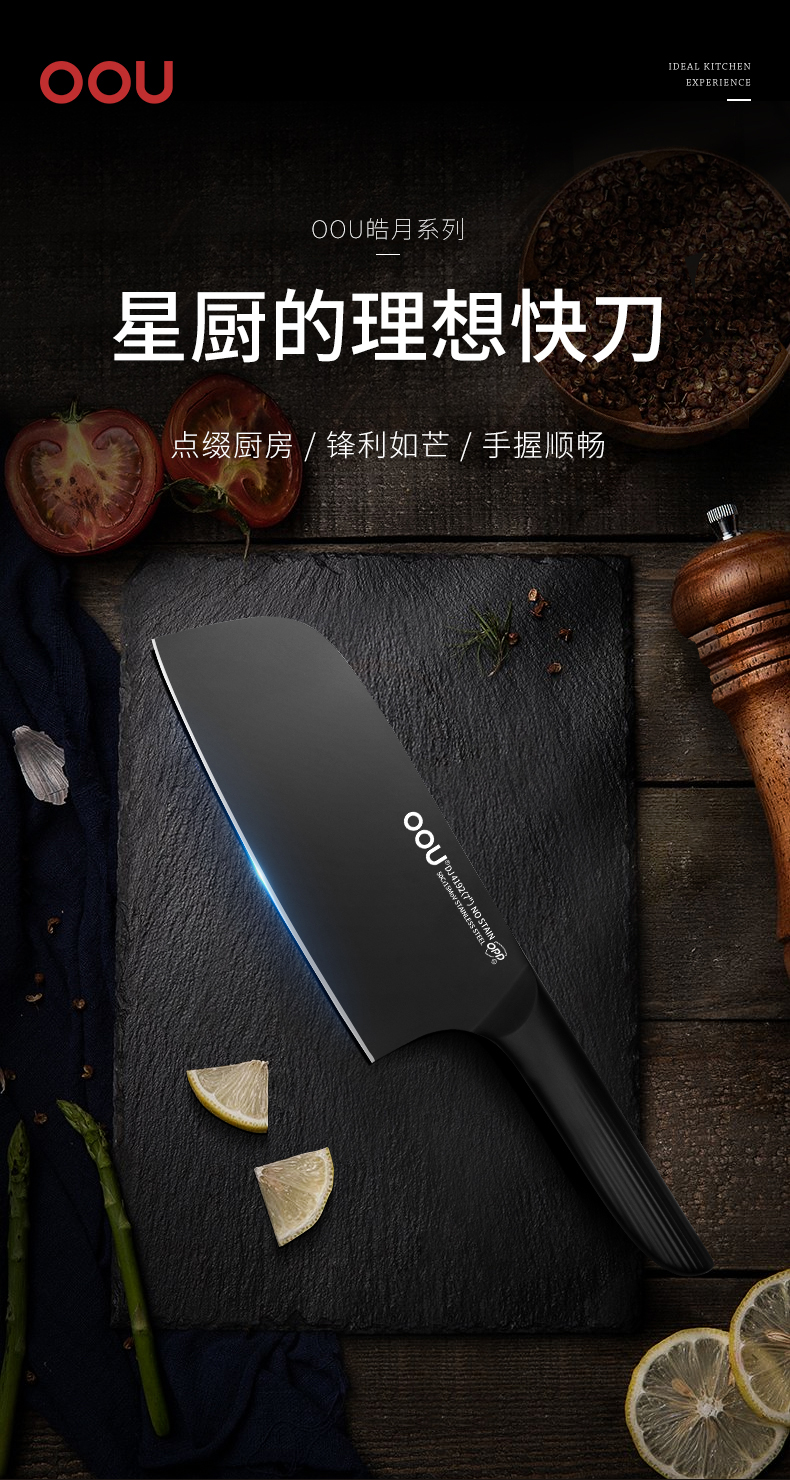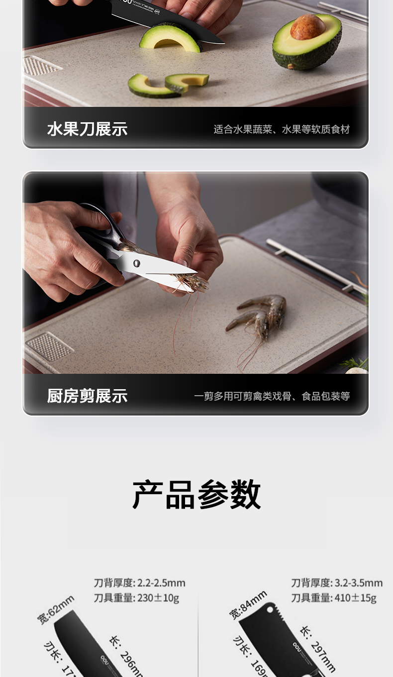 抗菌黑刃菜刀组合 | 独创BO氧化防锈专利 致密防锈膜 抗腐蚀性强 经久耐用 独创OPD抗菌专利【拾爸精选】