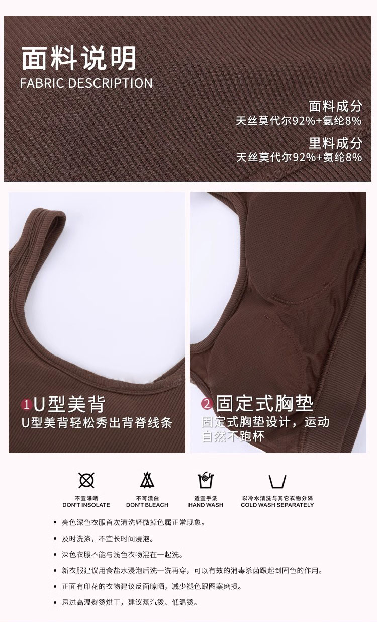 跃牌【周游世界系列】2025春夏新品天丝莫代尔运动内衣 宽肩带固定杯运动背心BR1611