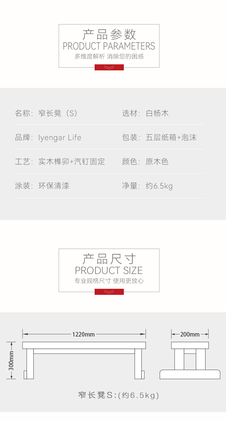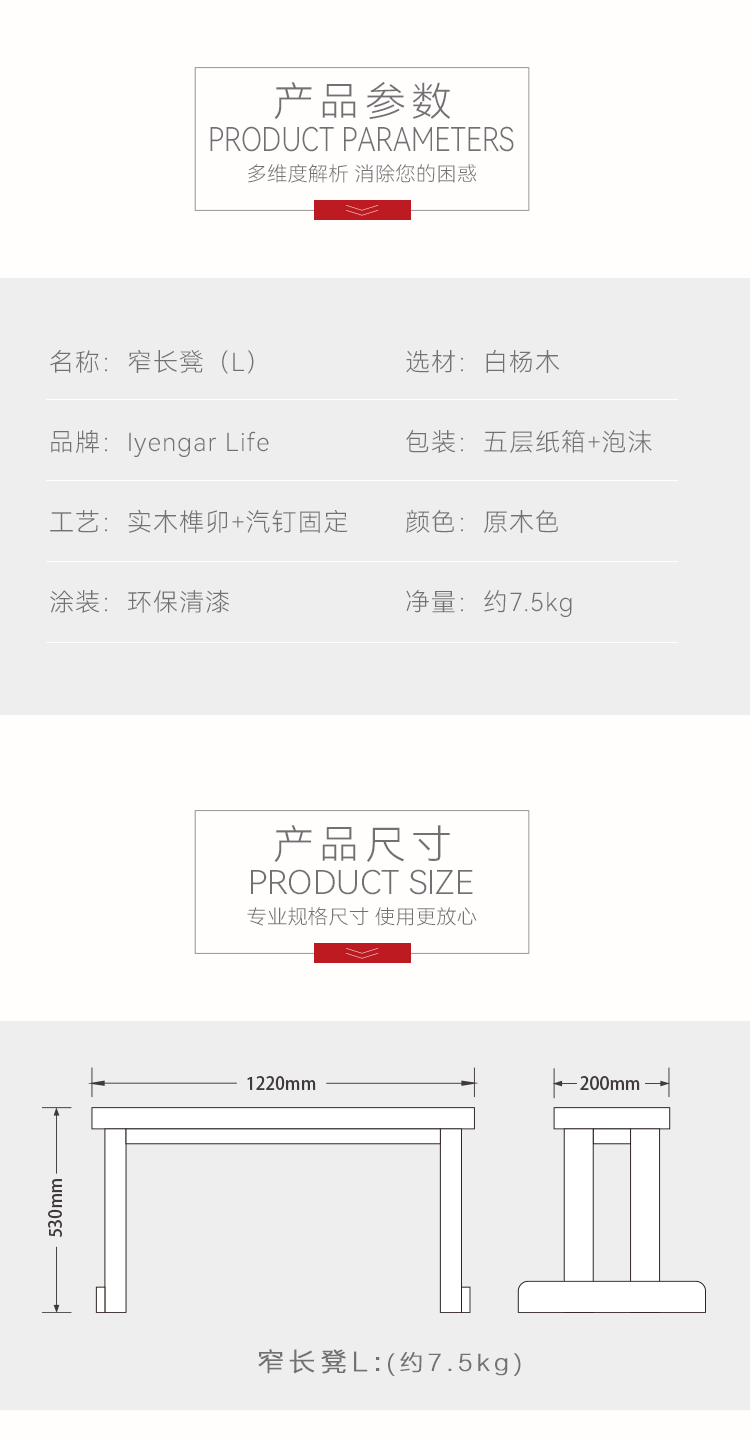 艾扬格 Life 窄长凳/瑜伽辅具
