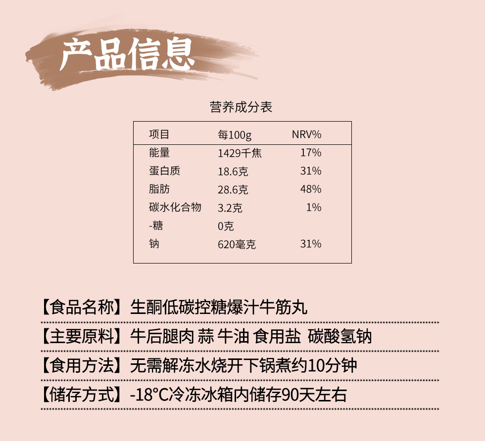【净酮说】爆汁牛筋丸250g 无淀粉纯肉丸牛肉火锅麻辣烫