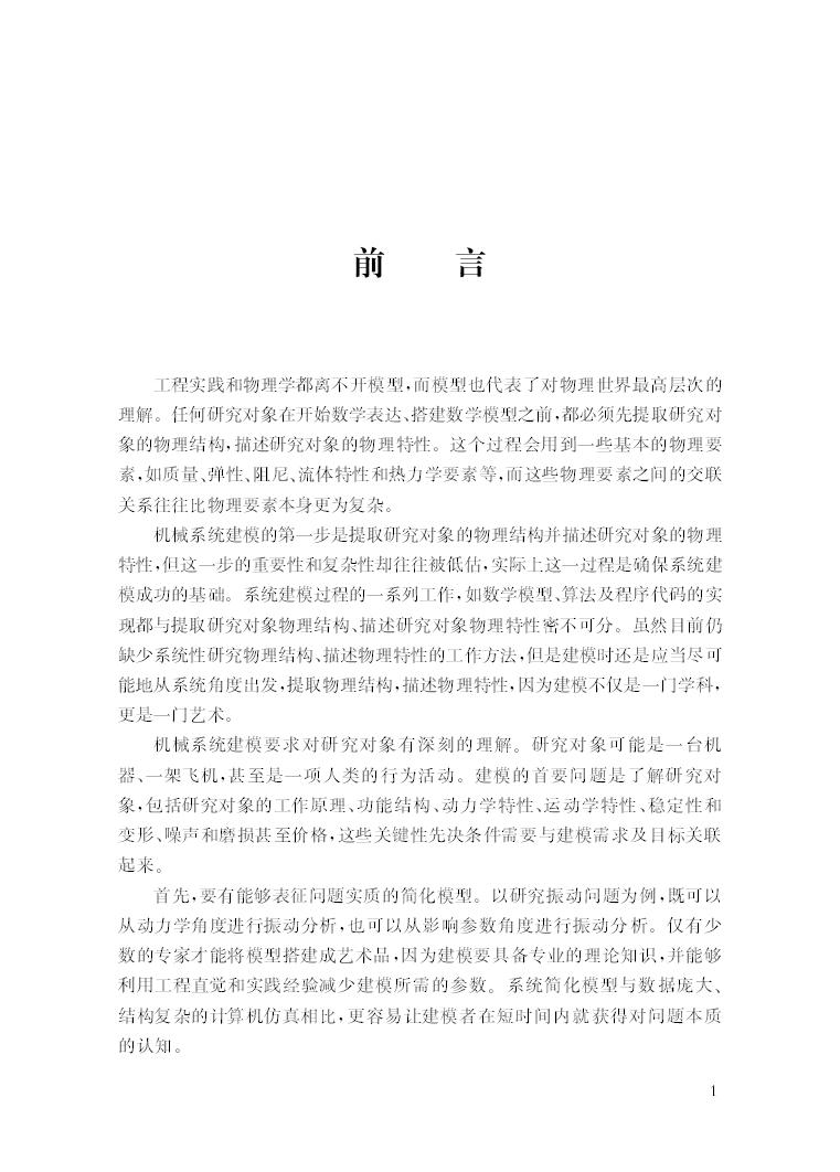 本书以机械工程为背景,结合工程实例介绍了机械系统建模的理论体系和实现方法。全书共分为6章,第1章和第2章介绍了机械系统建模的目标及实现途径,第3章介绍了柔性体建模,第4章介绍了接触力学建模,第5章介绍了机械系统非线性振动响应建模,第6章介绍了固体力学建模。全书涵盖现代控制理论和机械动力学研究领域的*新研究成果,并重点关注机械系统建模的工程应用。本书可作为机械、力学、土木工程和航空等专业硕士研究生、工程技术人员开展机械系统动静态性能分析和建模的指导用书,也适用于不同程度的读者自学;对希望掌握机械系统建模思想、原理和方法的读者,都有很好的参考价值。